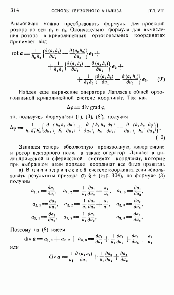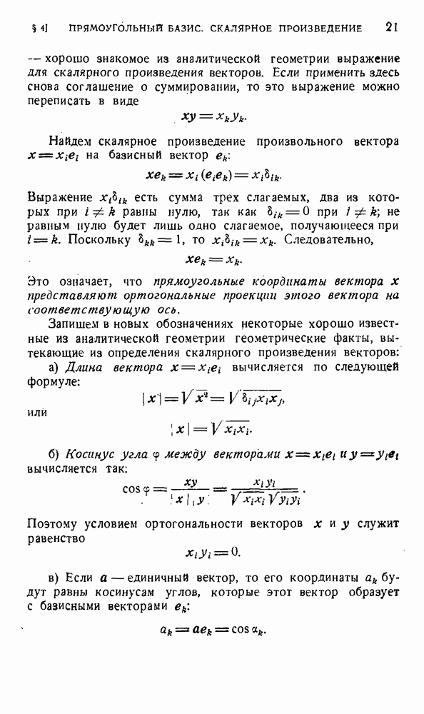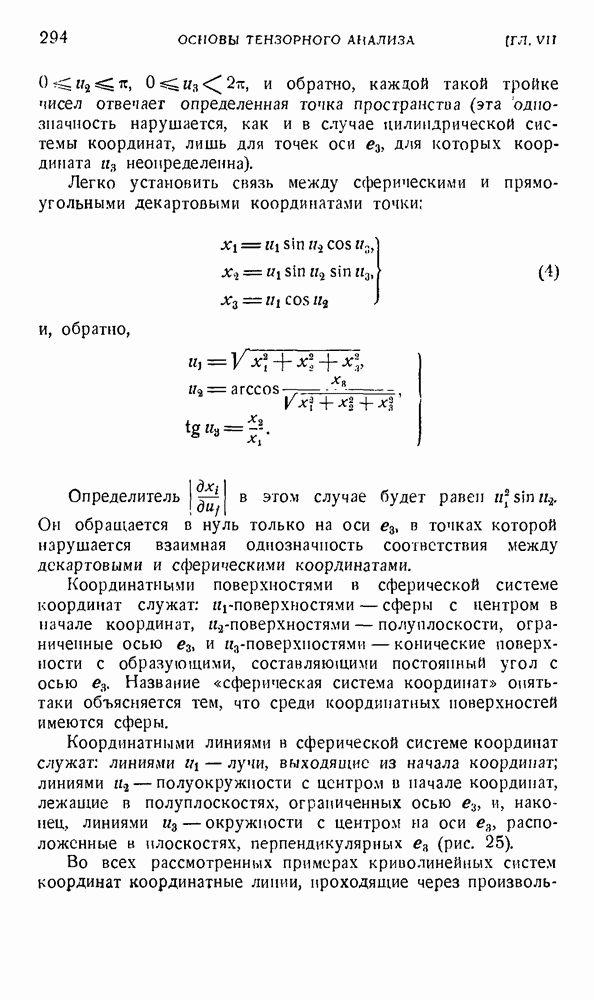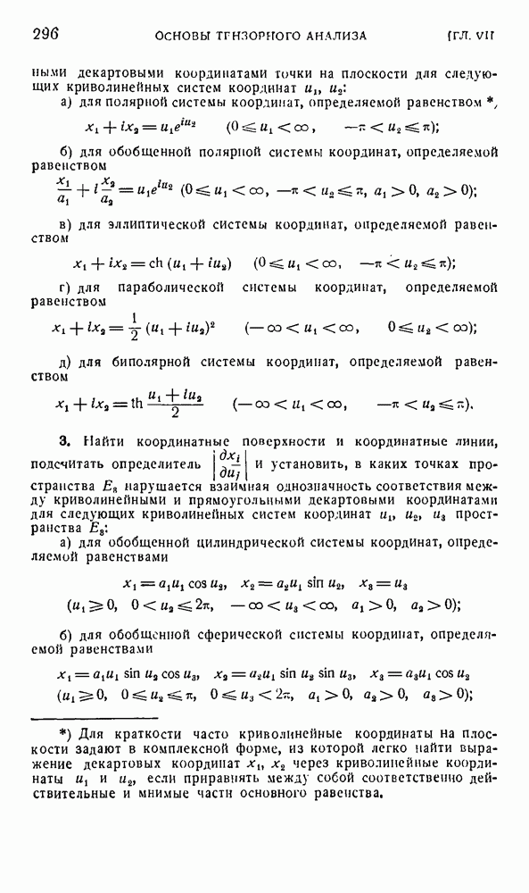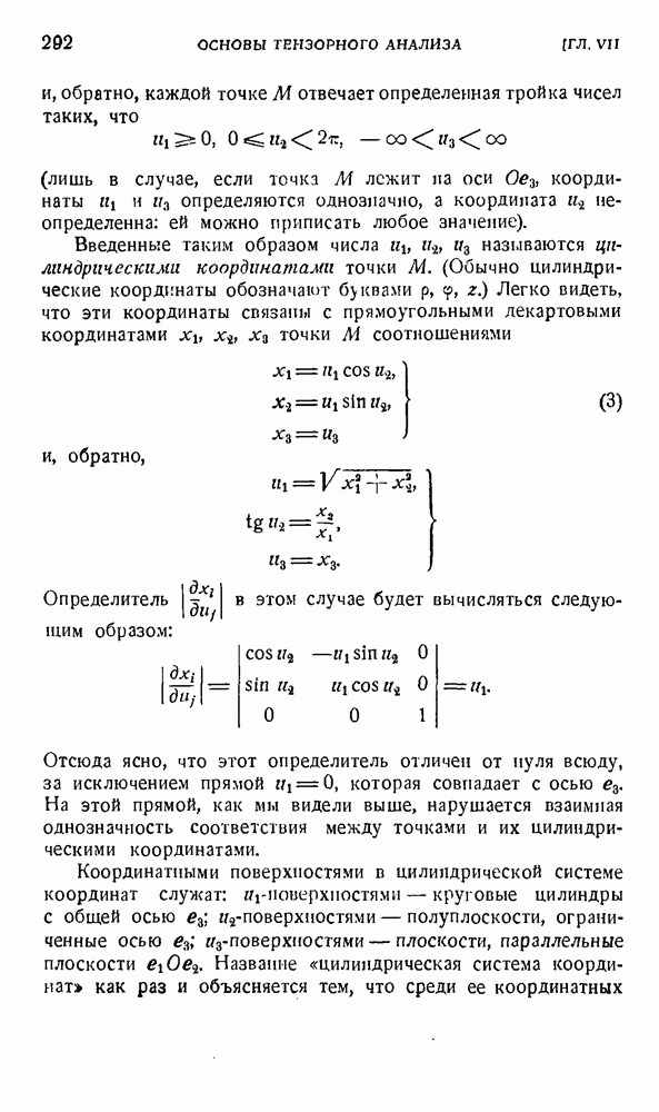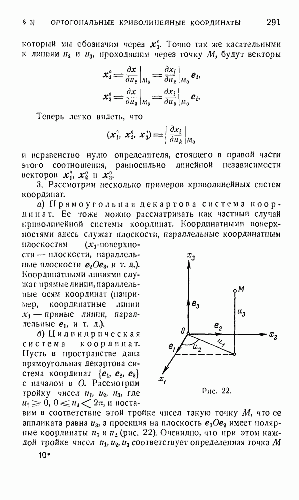 и неравенство нулю определителя, стоящего в правой части этого соотношения, равносильно линейной независимости векторов 3. Рассмотрим несколько примеров криволинейных систем координат. а) Прямоугольная декартова система координат. Ее тоже можно рассматривать как частный случай криволинейной системы координат. Координатными поверхностями здесь служат плоскости, параллельные координатным плоскостям (