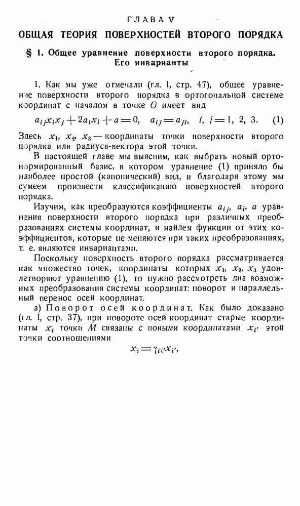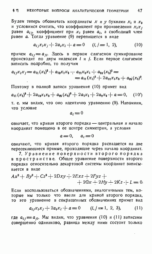 В дальнейшем будем всюду предполагать неравенство нулю этих определителей и считать функции (1) и (2), определяющие связь между декартовыми и криволинейными координатами точки М, по крайней мере дважды непрерывно дифференцируемыми. 2. Перейдем теперь к выяснению геометрического смысла криволинейных координат. Рассмотрим уравнение