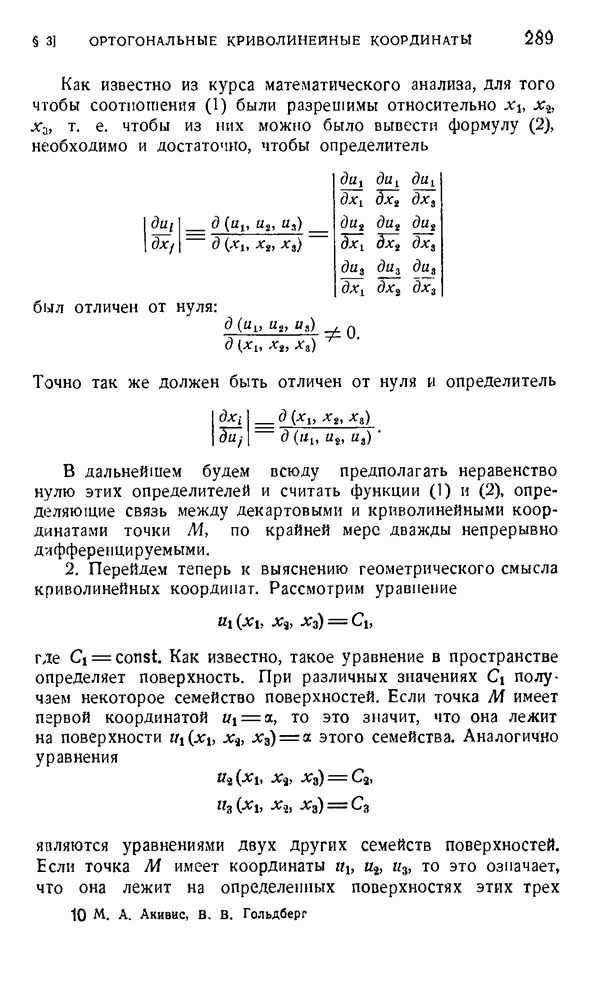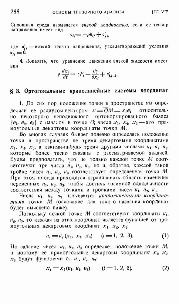 § 3. Ортогоналыше криволинейные системы координат1. До сих пор положение точки в пространстве Во многих случаях бывает полезно определять положение точки в пространстве не тремя декартовыми координатами Числа Поскольку всякой точке М соответствуют координаты