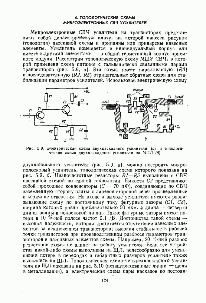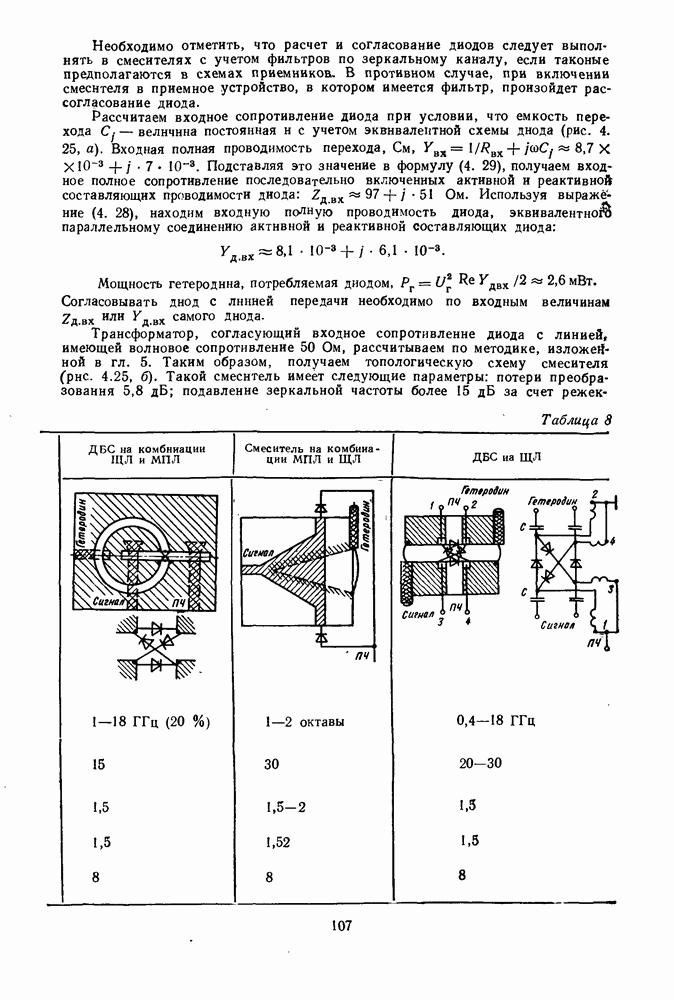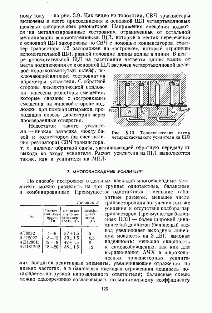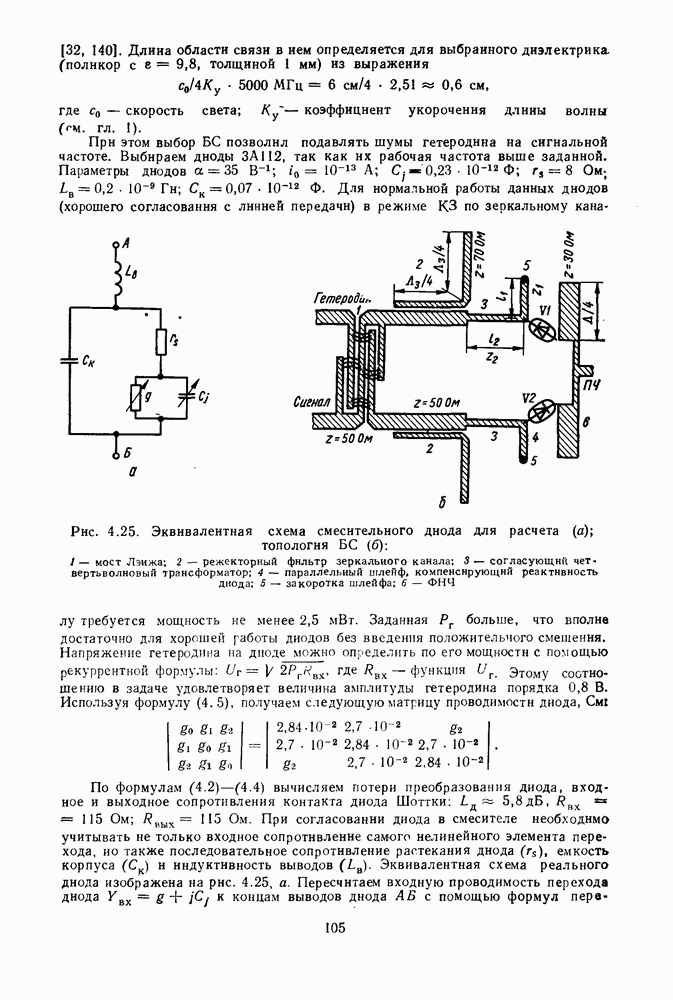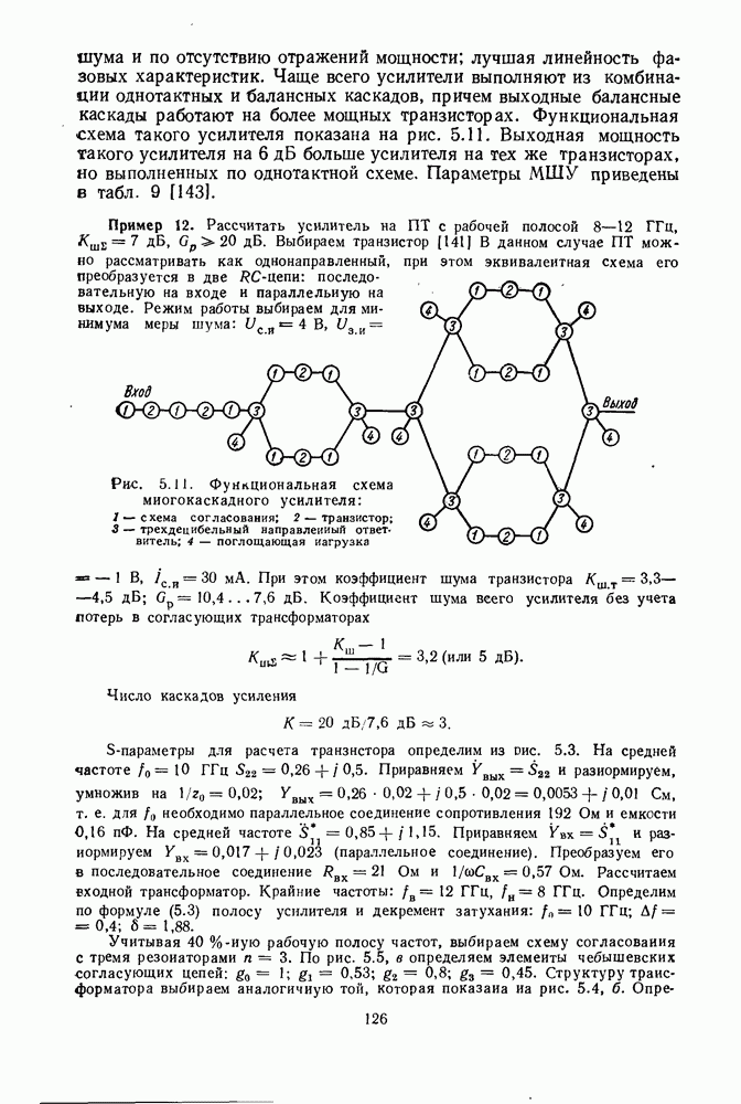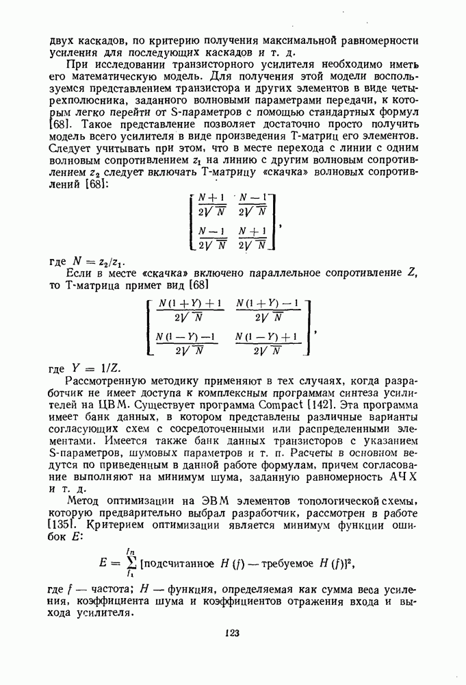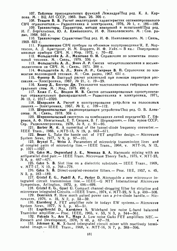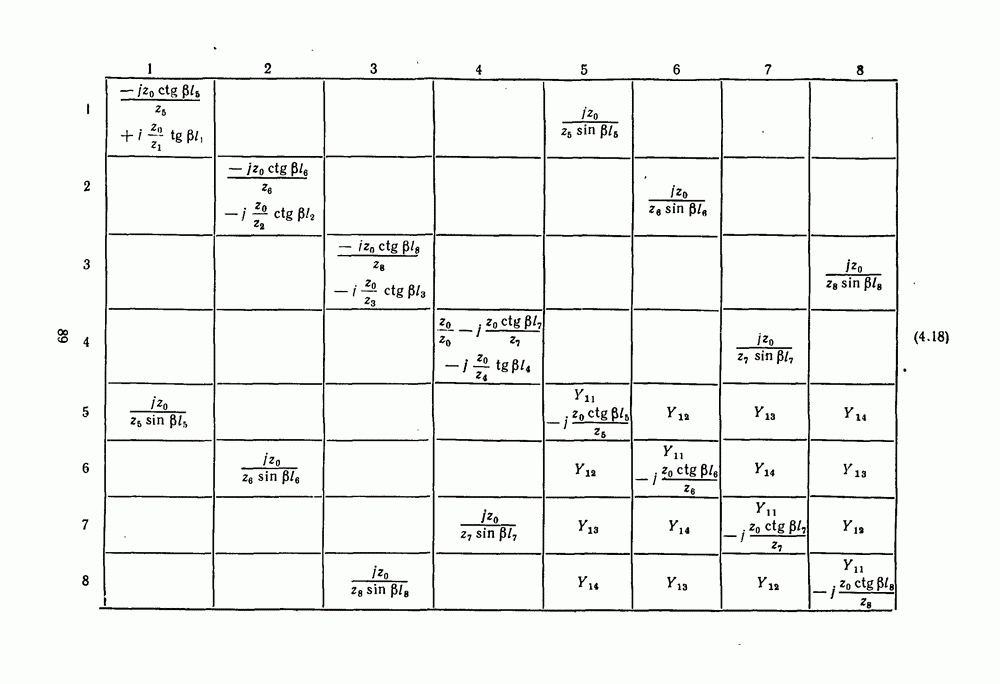 (кликните для просмотра скана) Делители, выполненные на мостах из сочлененных квадратов и симметричных кольцевых мостах, вследствие симметрии элементов не имеют разбросов амплитуд и фаз между каналами. На рис. 2.24 и 2.25 изображены частотные характеристики делителей на 16 каналов, построенных из мостов на сочлененных квадратах и на модифицированных кольцевых мостах. Таким образом, делители, выполненные на мостах из сочлененных квадратов, имеют малые диссипативные потери в узкой полосе частот. С увеличением полосы частот диссипативные потери существенно возрастают из-за рассеяния мощности в балластных резисторах. В делителях, выполненных на симметричных кольцевых мостах, диссипативные потери достигают 0,4 дБ в полосе частот 30 %. В делителях, построенных из двухканальных направленных делителей с точечными резисторами, диссипативных потерь за счет рассеяния мощности в балластных резисторах вообще нет [54], но с увеличением длин балластных резисторов потери увеличиваются и для делителя на 8 каналов составляют 0,3 дБ при длине резистора