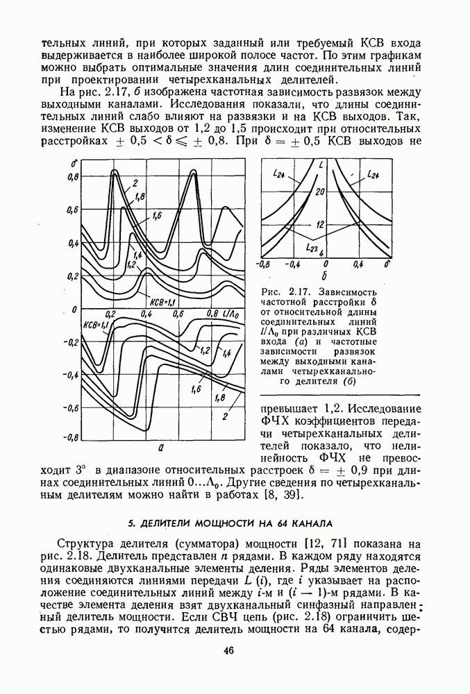 Распознанный текст, спецсимволы и формулы могут содержать ошибки, поэтому с корректным вариантом рекомендуем ознакомиться на отсканированных изображениях учебника выше Также, советуем воспользоваться поиском по сайту, мы уверены, что вы сможете найти больше информации по нужной Вам тематике ДЛЯ СТУДЕНТОВ И ШКОЛЬНИКОВ ЕСТЬZADANIA.TO 6. ХАРАКТЕРИСТИКИ ДЕЛИТЕЛЕЙ, ВЫПОЛНЕННЫХ ИЗ МОСТОВЫХ УСТРОЙСТВРассмотрим характеристики делителя на 16 каналов, выполненного по параллельной схеме из кольцевых мостов. Длины соединительных линий между рядами элементов в делителе равны нулю. На рис. 2.23, а показаны КСВ входа