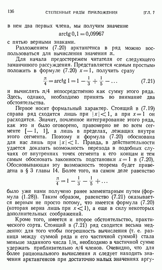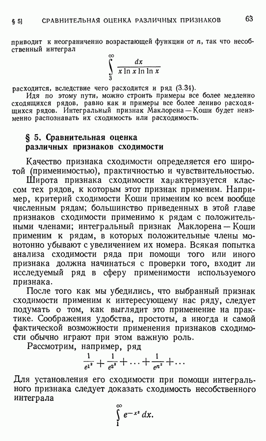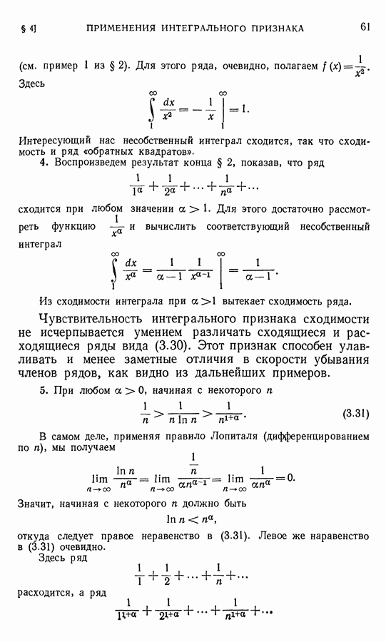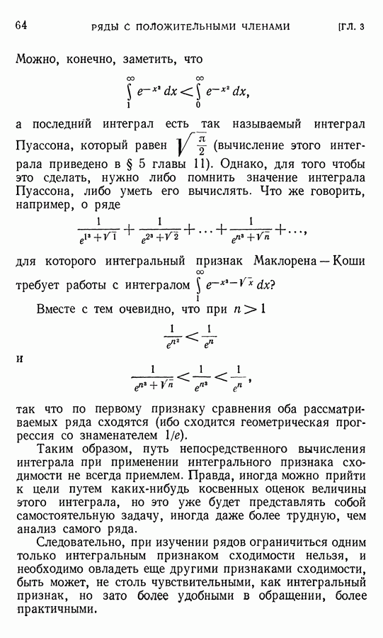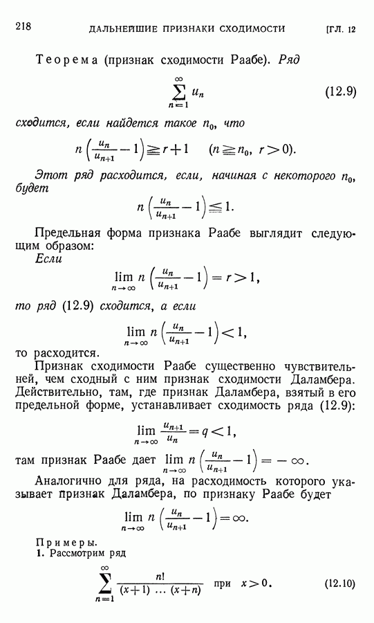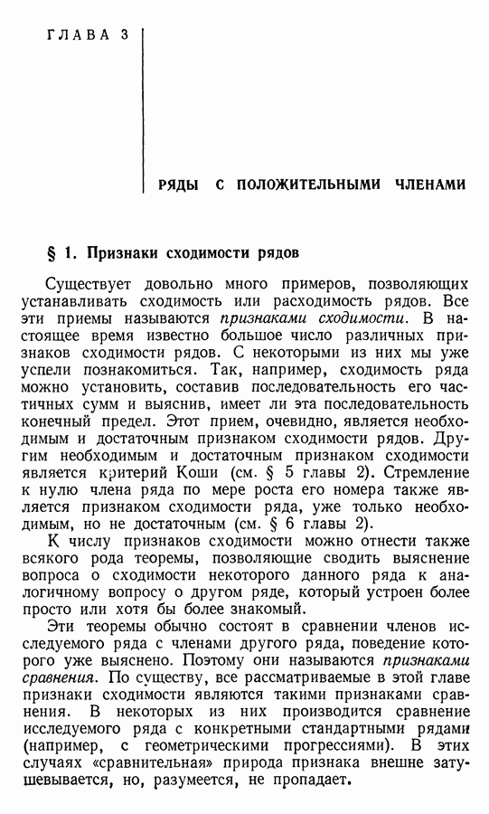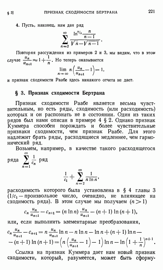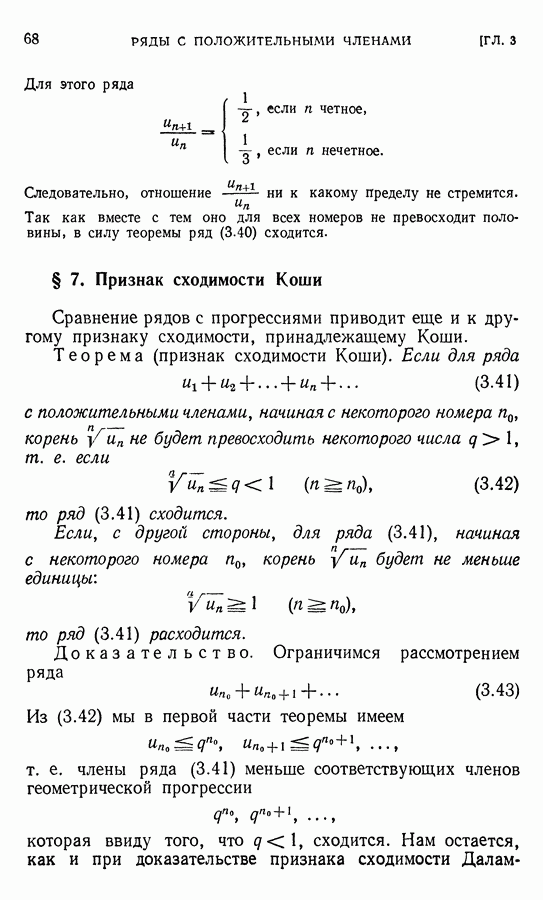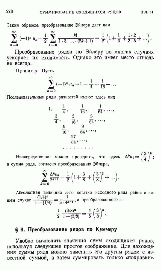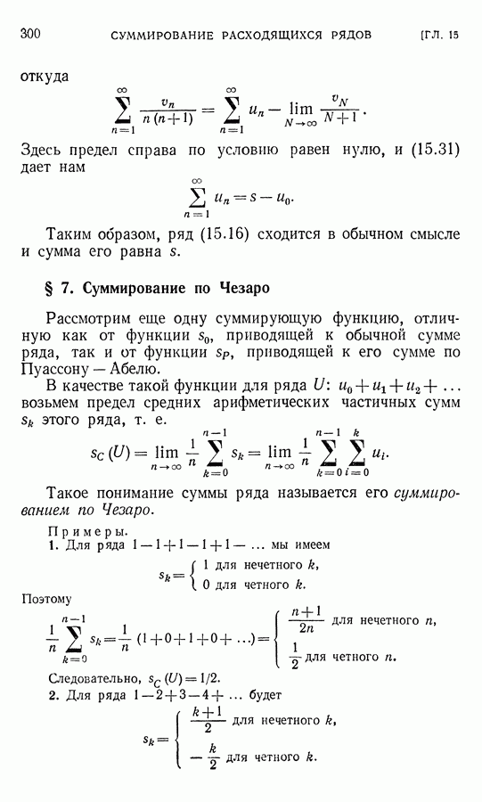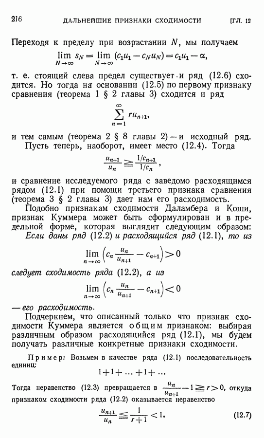 Мы видим, что признак сходимости Лейбница является довольно широким по применимости, весьма практичным и идеально чувствительным. Это не противоречит сказанному в конце § 5 главы 3: условная сходимость знакочередующегося ряда является «в среднем», если можно так выразиться, более широким фактом, чем сходимость ряда с положительными членами; поэтому и распознать ее оказывается в каком-то смысле легче.