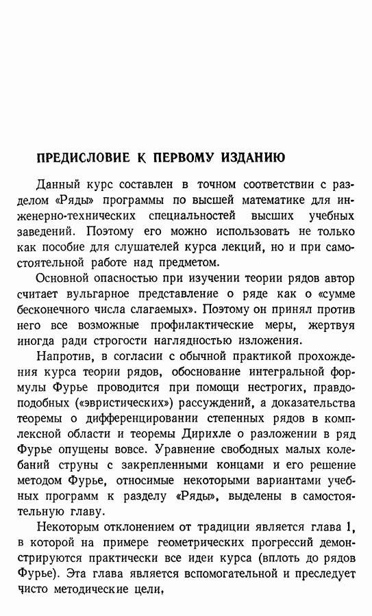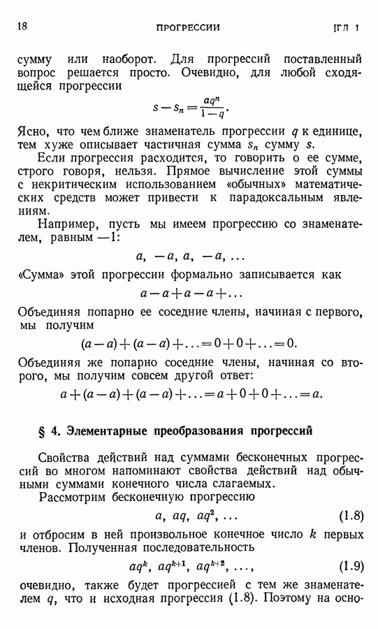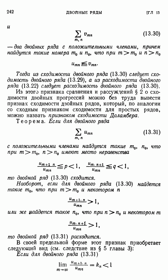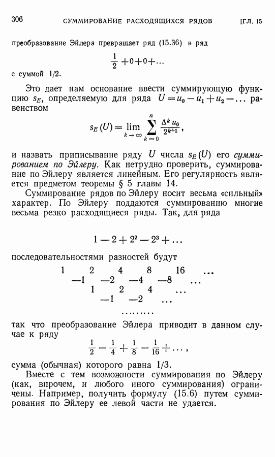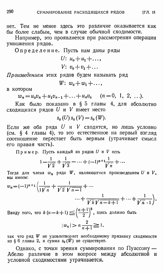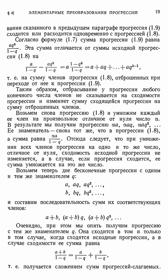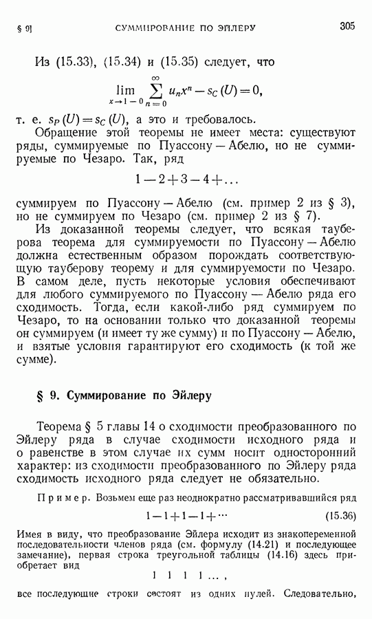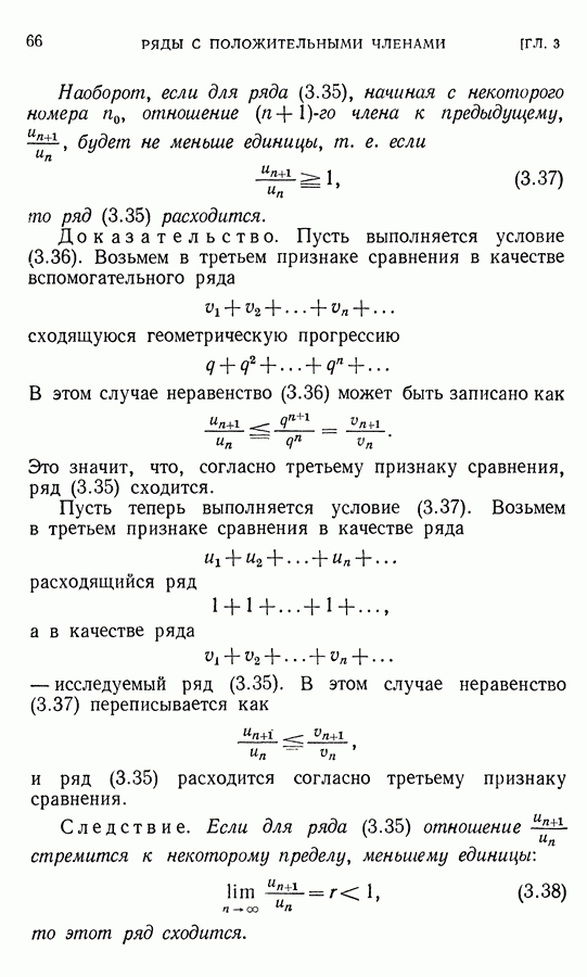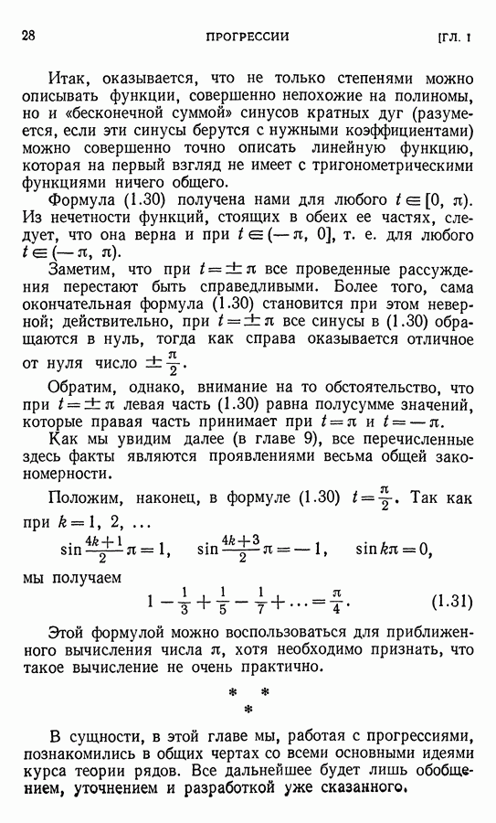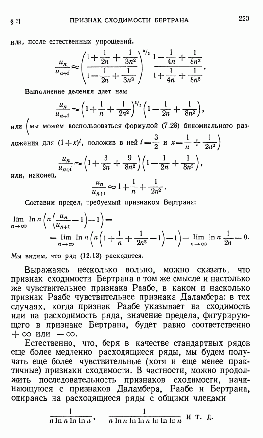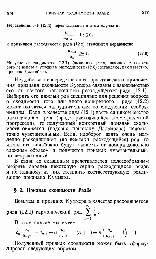 Мы видим, что признак сходимости Лейбница является довольно широким по применимости, весьма практичным и идеально чувствительным. Это не противоречит сказанному в конце § 5 главы 3: условная сходимость знакочередующегося ряда является «в среднем», если можно так выразиться, более широким фактом, чем сходимость ряда с положительными членами; поэтому и распознать ее оказывается в каком-то смысле легче.