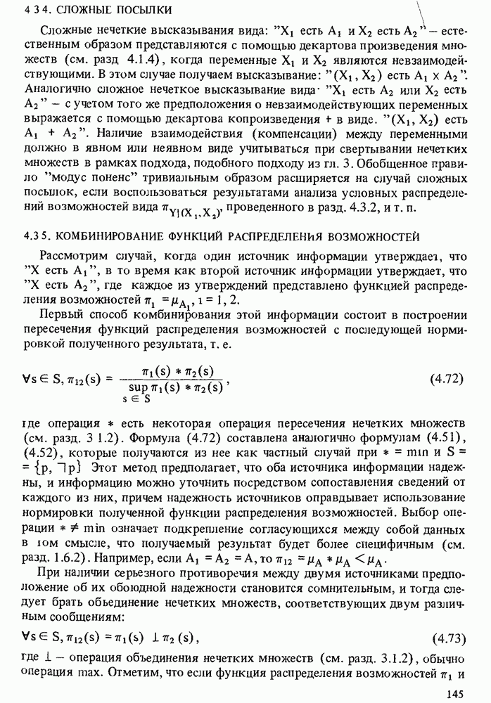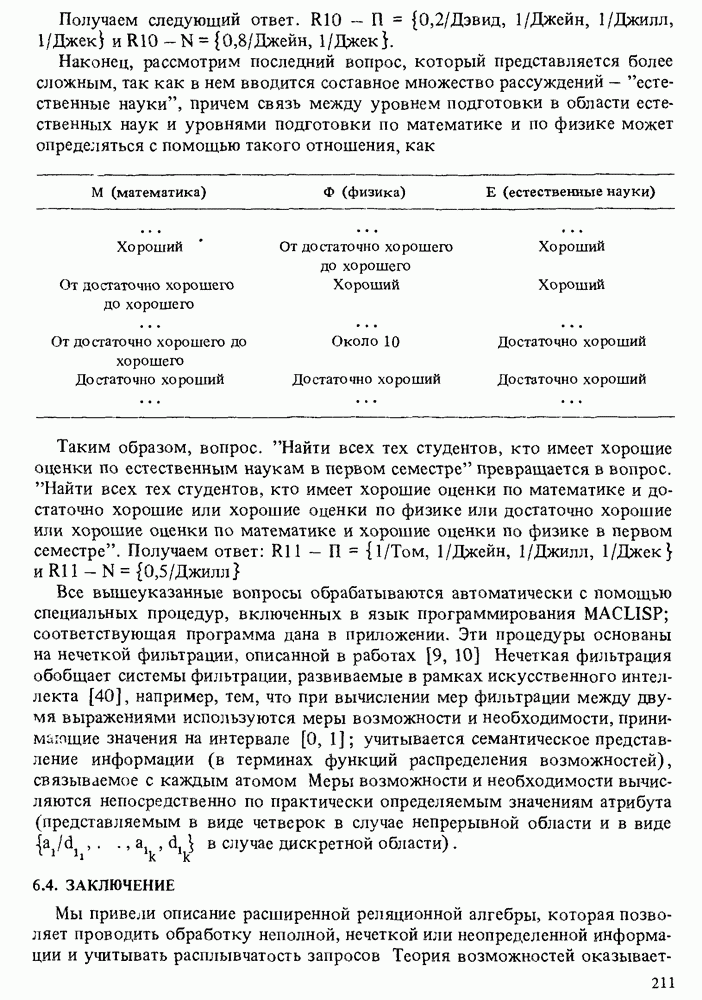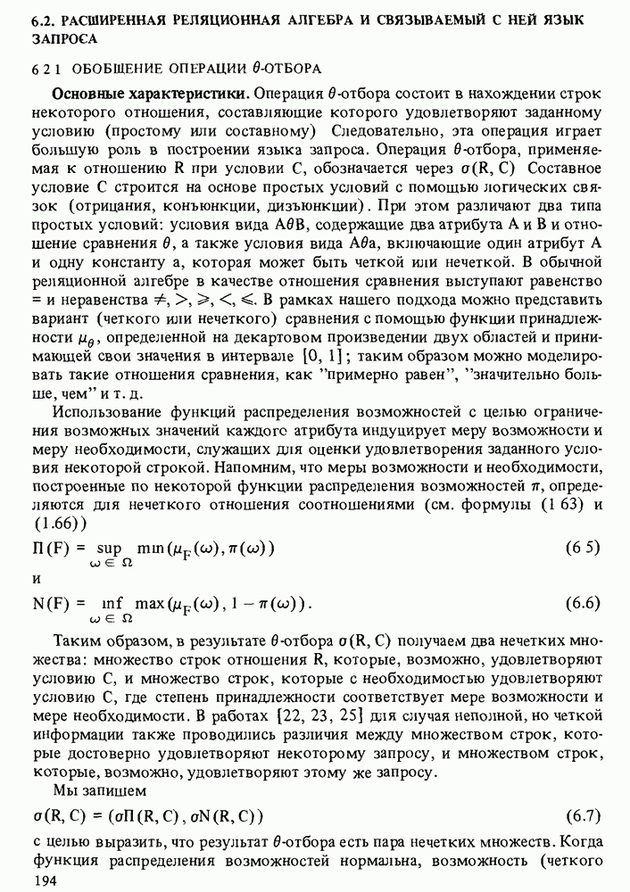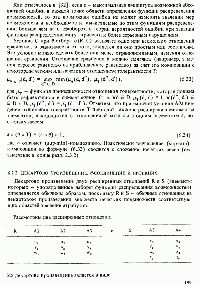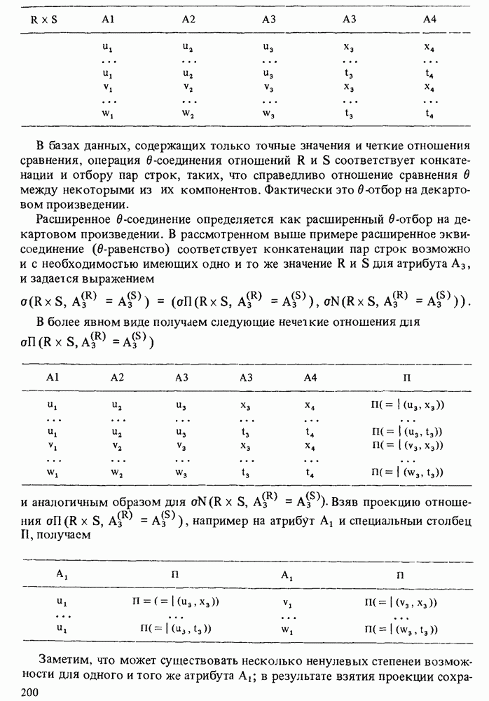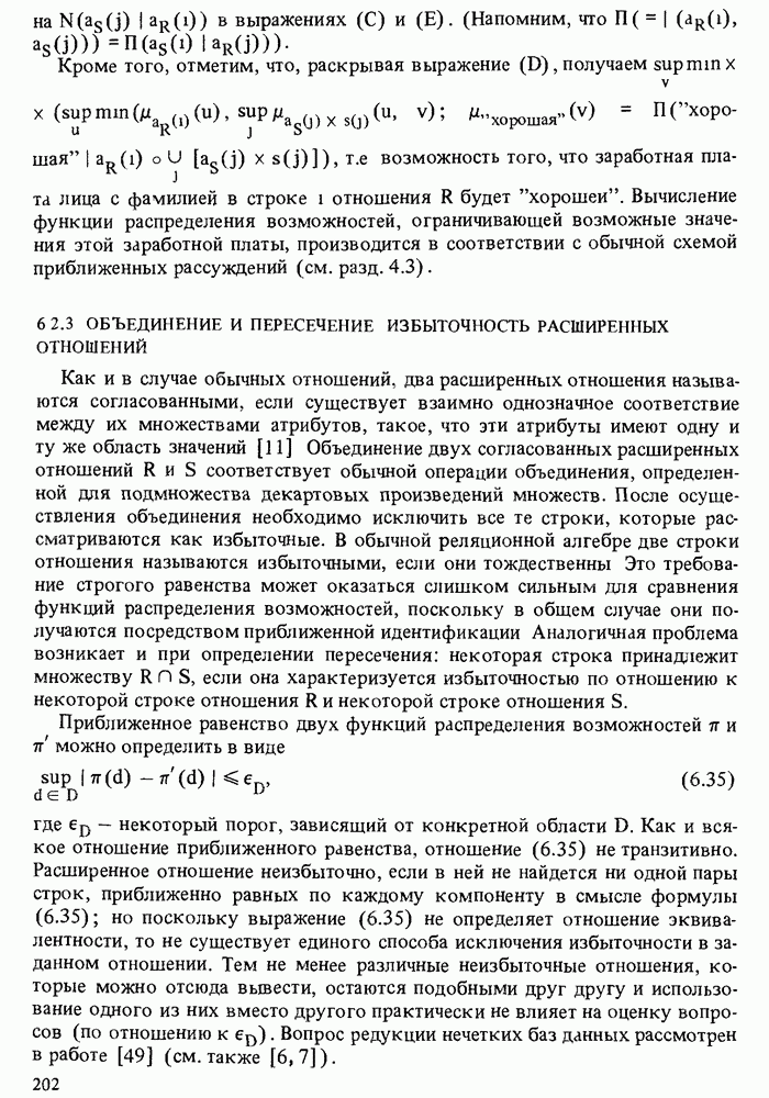 соответствует обычной операции объединения, определенной для подмножества декартовых произведений множеств. После осуществления объединения необходимо исключить все те строки, которые рассматриваются как избыточные. В обычной реляционной алгебре две строки отношения называются избыточными, если они тождественны Это требование строгого равенства может оказаться слишком сильным для сравнения функций распределения возможностей, поскольку в общем случае они получаются посредством приближенной идентификации Аналогичная проблема возникает и при определении пересечения: некоторая строка принадлежит множеству
