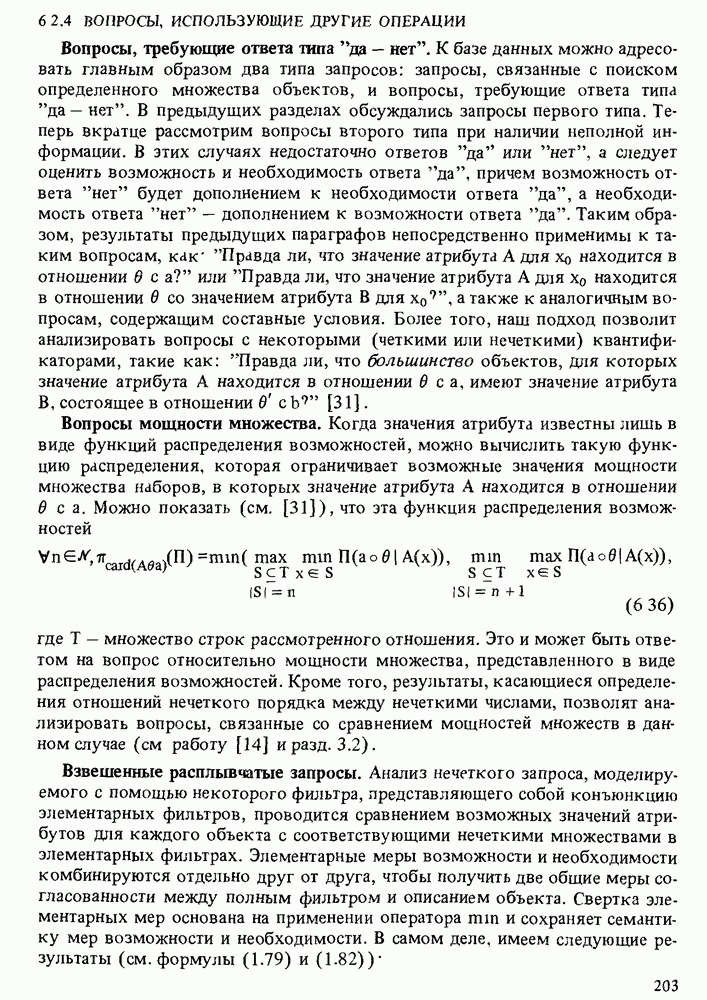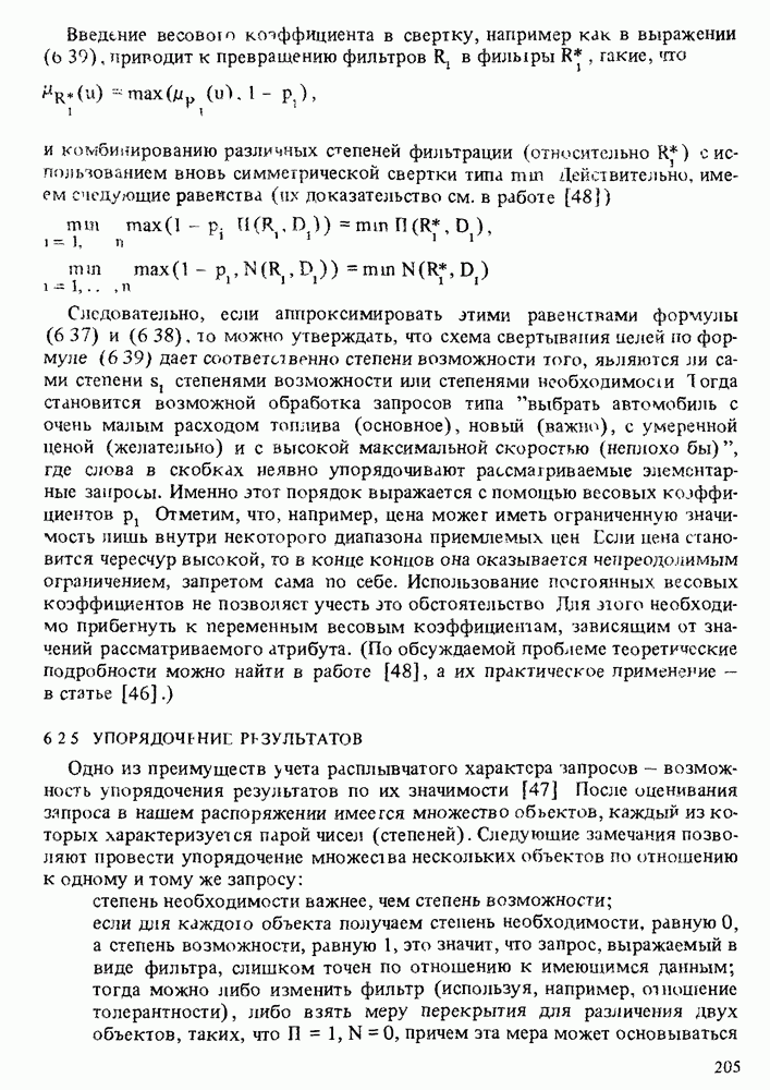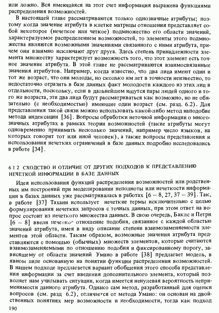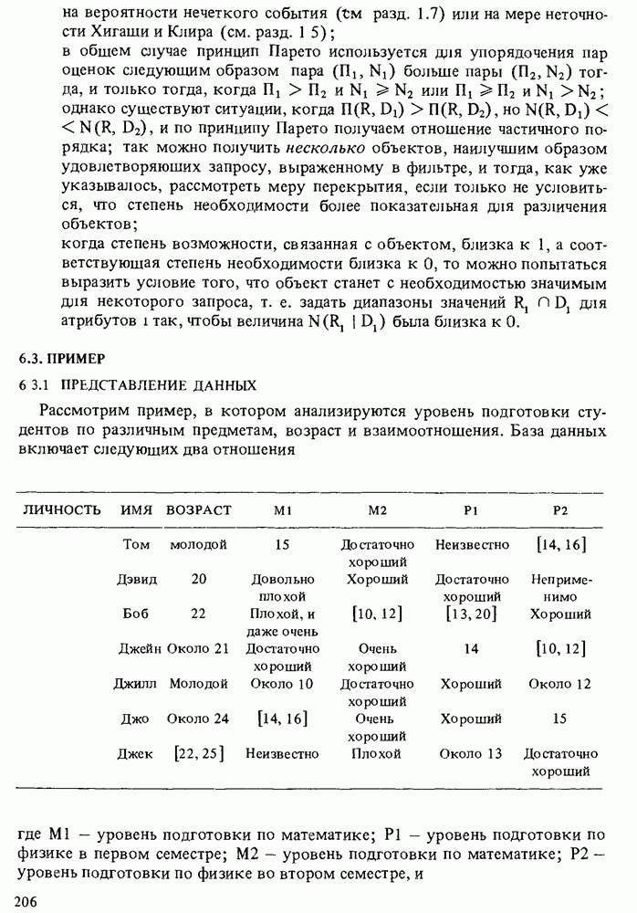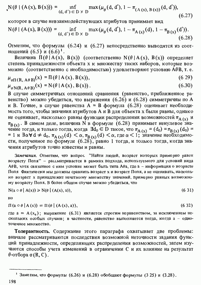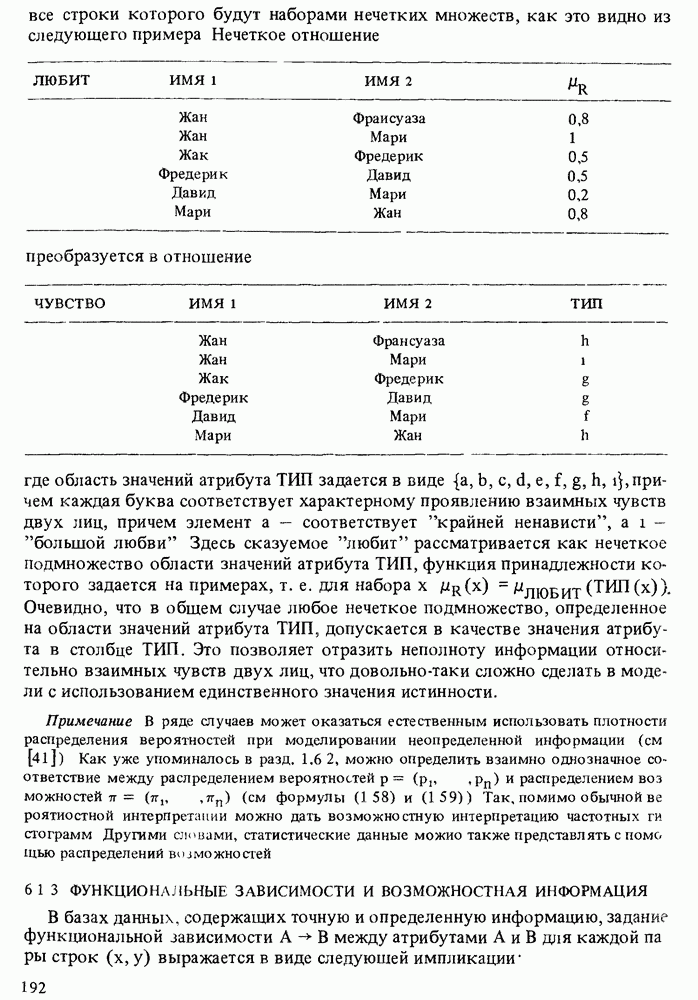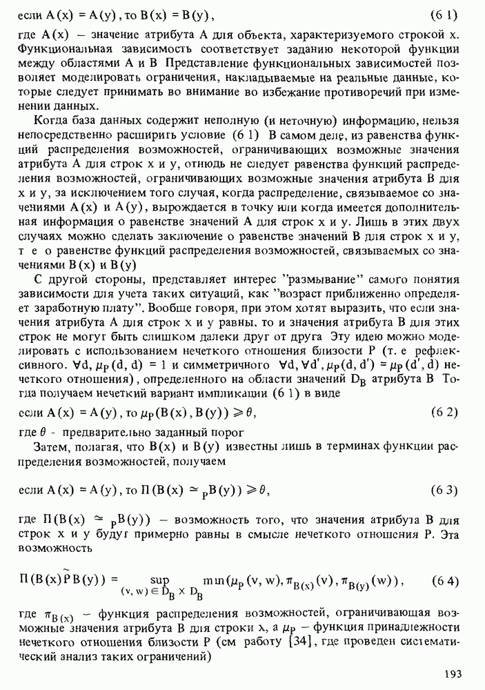 Как и всякое отношение приближенного равенства, отношение (6.35) не транзитивно. Расширенное отношение неизбыточно, если в ней не найдется ни одной пары строк, приближенно равных по каждому компоненту в смысле формулы (6.35); но поскольку выражение (6.35) не определяет отношение эквивалентности, то не существует единого способа исключения избыточности в заданном отношении. Тем не менее различные неизбыточные отношения, которые можно отсюда вывести, остаются подобными друг другу и использование одного из них вместо другого практически не влияет на оценку вопросов (по отношению к
