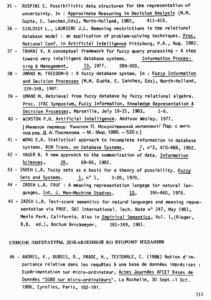 Вопрос редукции нечетких баз данных рассмотрен в работе [49] (см. также [6,7]).
