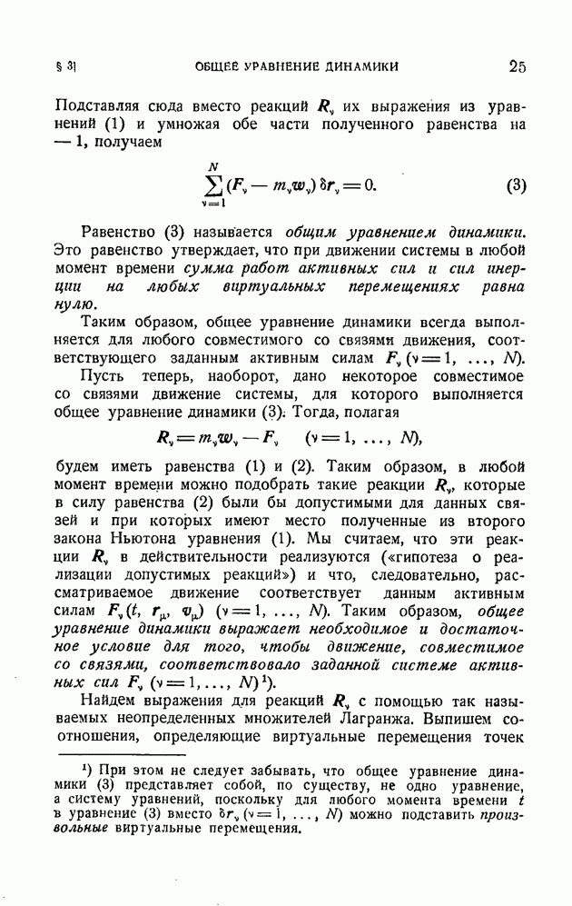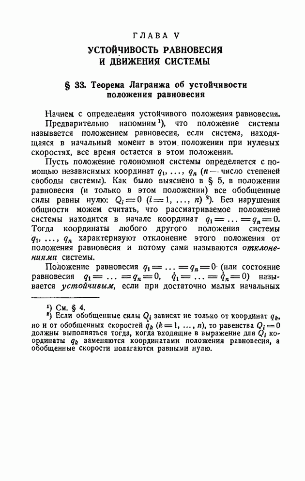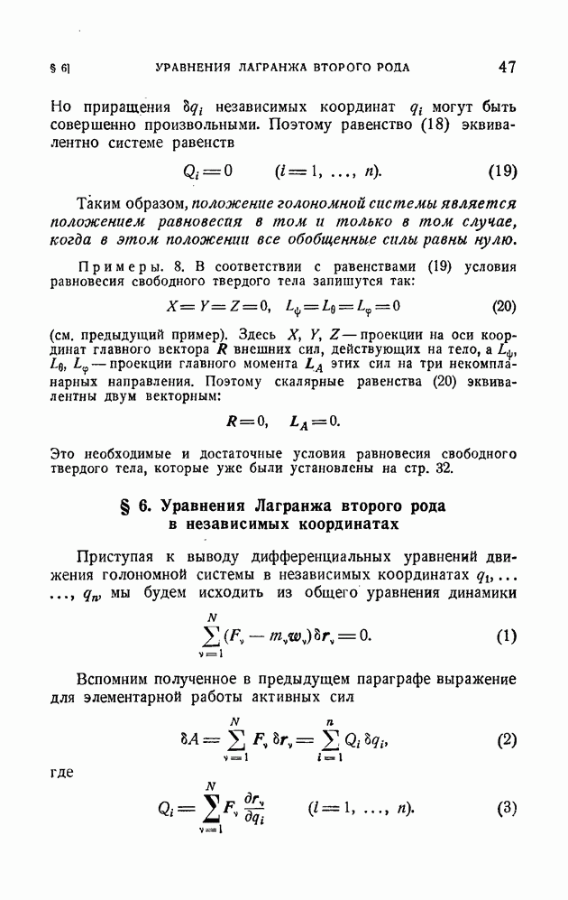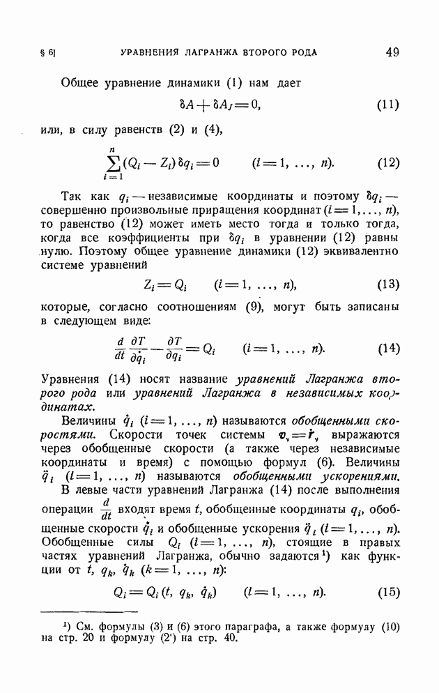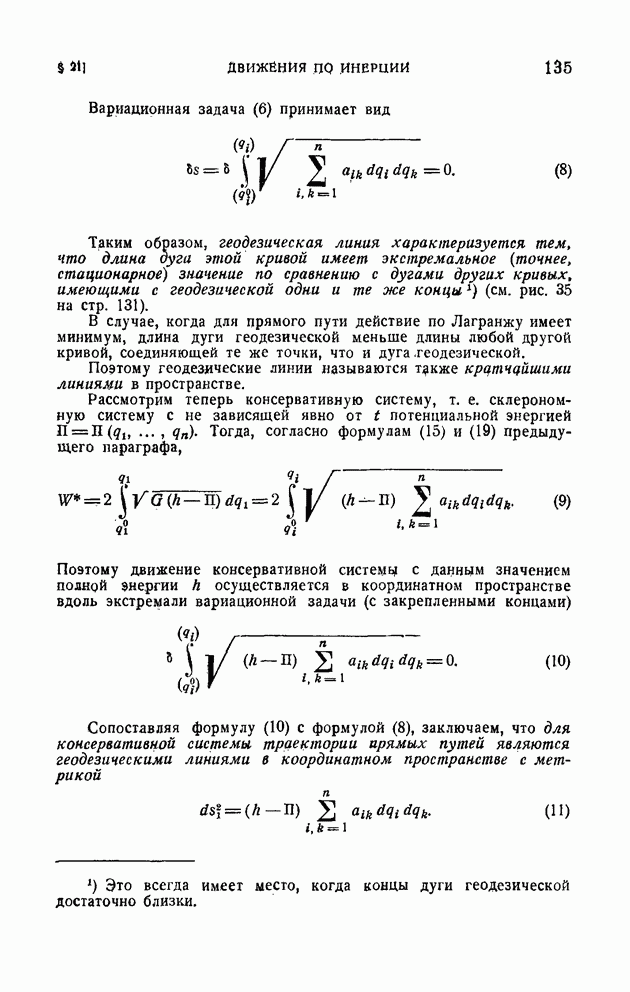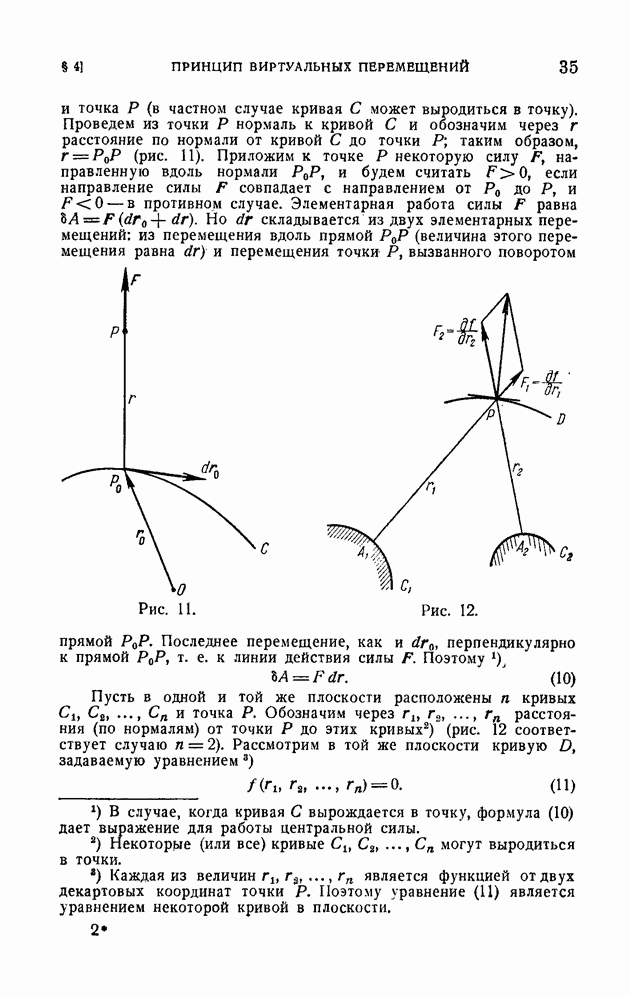 Если в условии (11) имеет место знак равенства, то говорят, что связь напряжена. Движение системы, на которую наложена неудерживающая связь, можно разбить на участки таким образом, чтобы на одних участках связь была напряжена и движение проходило так, как если бы связь была удерживающей, а на других участках связь была не напряжена и движение проходило так, как если бы этой связи не было. Таким образом, на отдельных участках неудерживающая связь либо заменяется удерживающей, либо совсем отбрасывается. Исходя из этого, мы в дальнейшем будем рассматривать исключительно удерживающие связи.