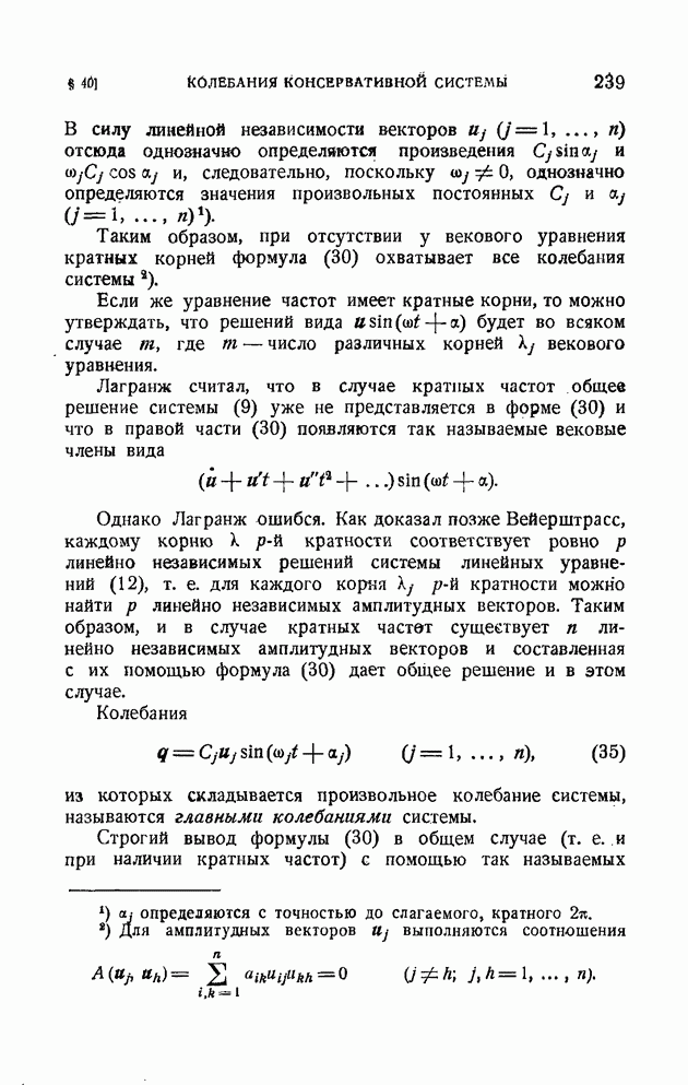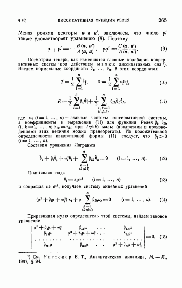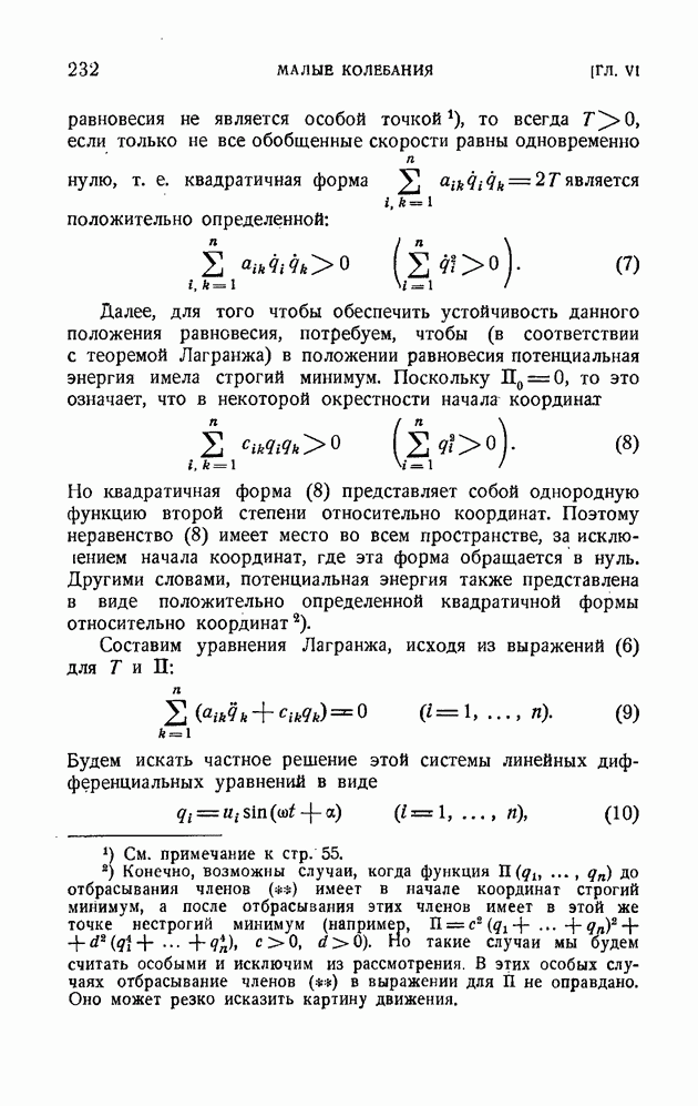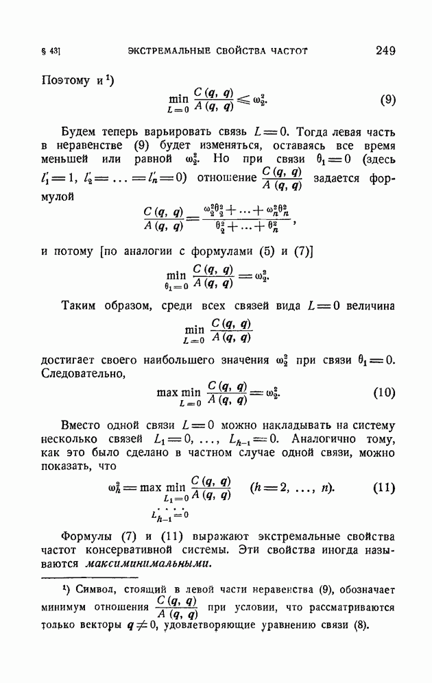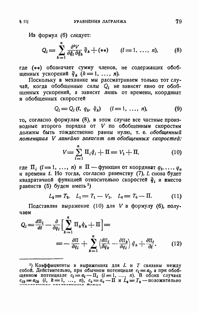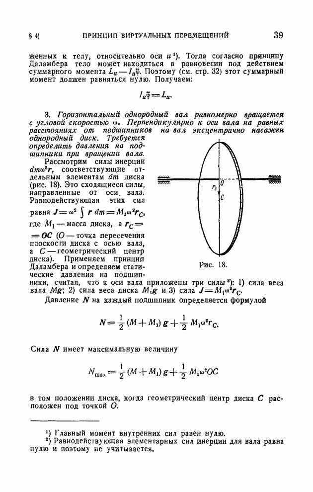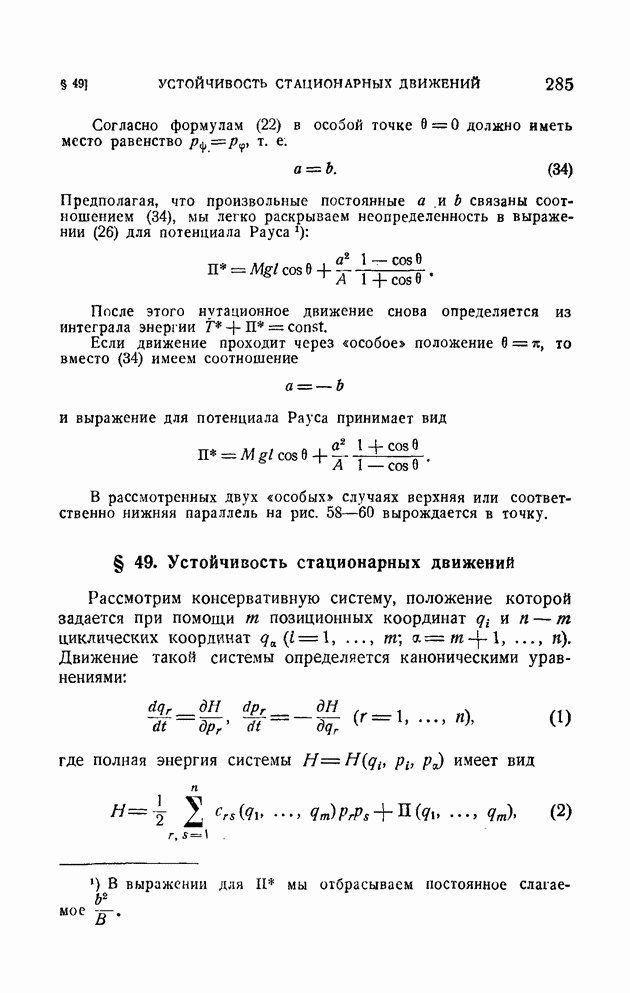 Если в условии (11) имеет место знак равенства, то говорят, что связь напряжена. Движение системы, на которую наложена неудерживающая связь, можно разбить на участки таким образом, чтобы на одних участках связь была напряжена и движение проходило так, как если бы связь была удерживающей, а на других участках связь была не напряжена и движение проходило так, как если бы этой связи не было. Таким образом, на отдельных участках неудерживающая связь либо заменяется удерживающей, либо совсем отбрасывается. Исходя из этого, мы в дальнейшем будем рассматривать исключительно удерживающие связи.