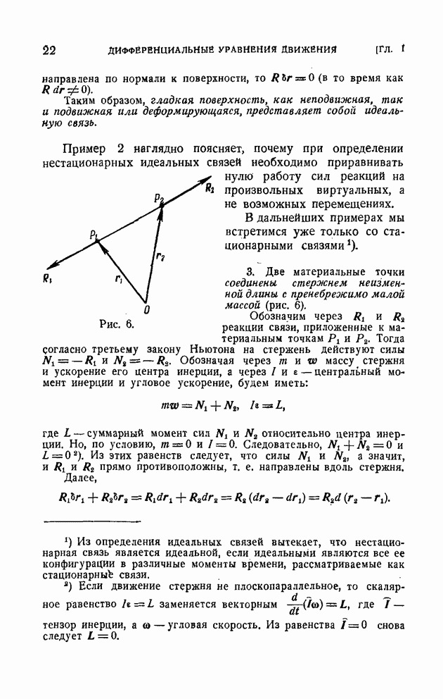 В этом случае связь конечная, но нестационарная, 2. Две материальные точки соединены стержнем постоянной длины