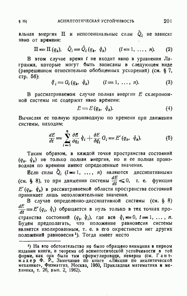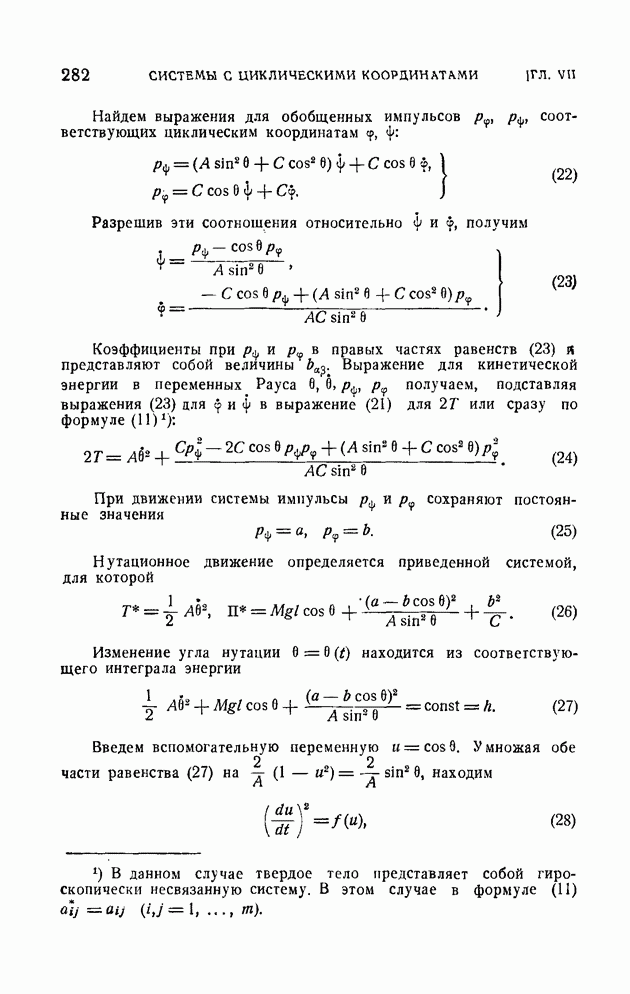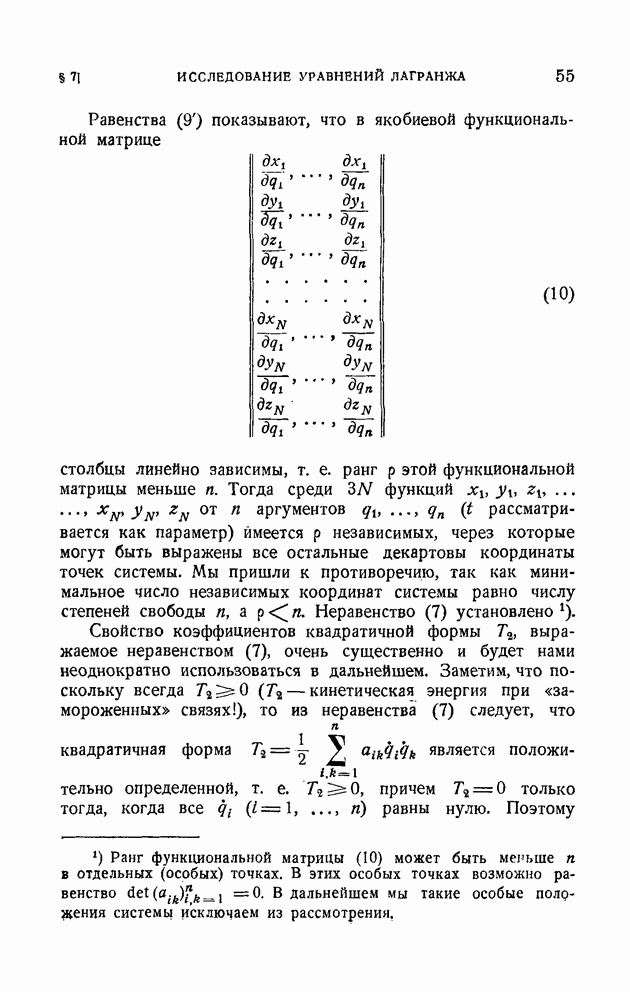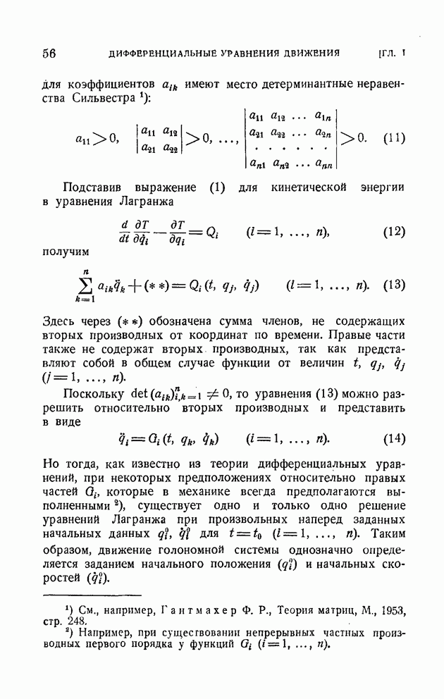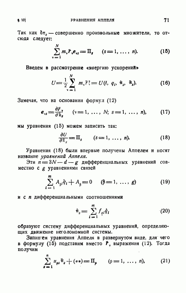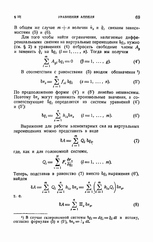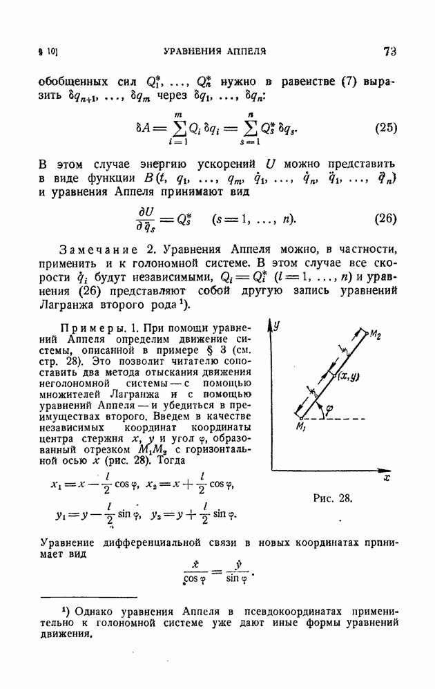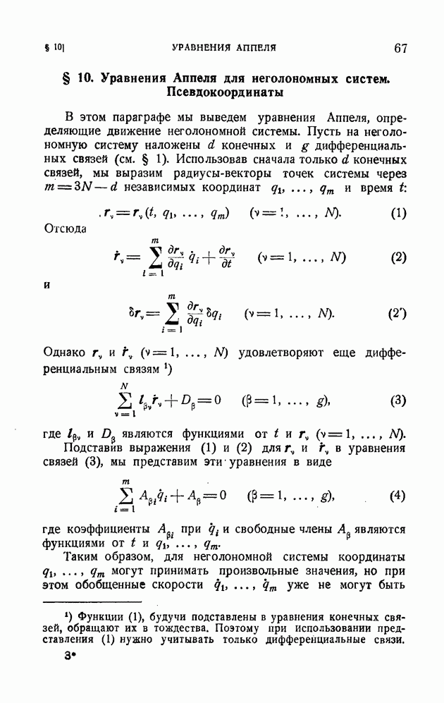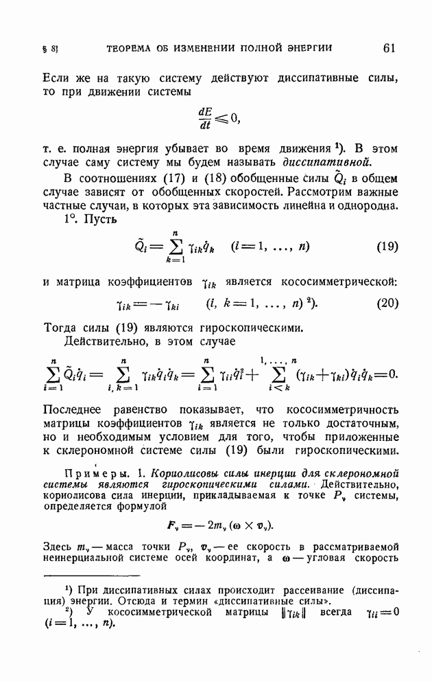 Эта система неголономная, так как последнее из уравнений (10) определяет дифференциальную неинтегрируемую связь. Наряду со связями вида (1), которые называются удерживающими, в механике рассматриваются также неудерживающие связи, которые записываются в виде неравенства