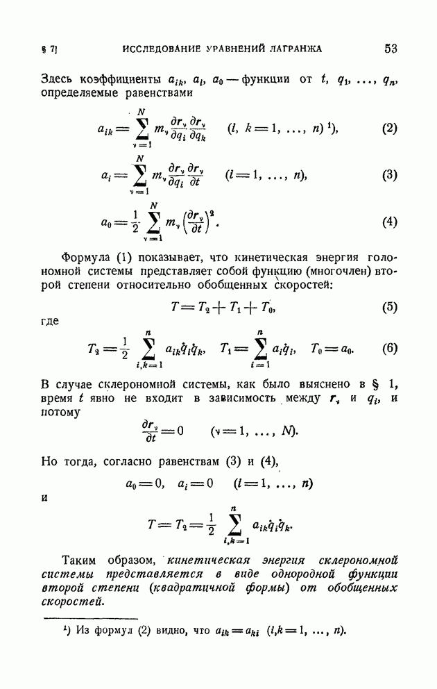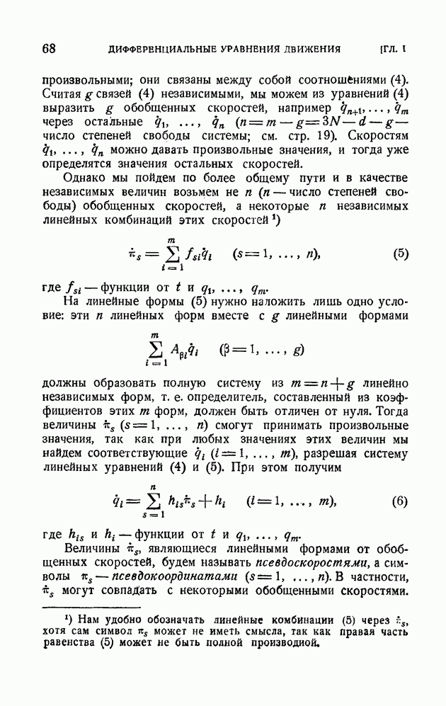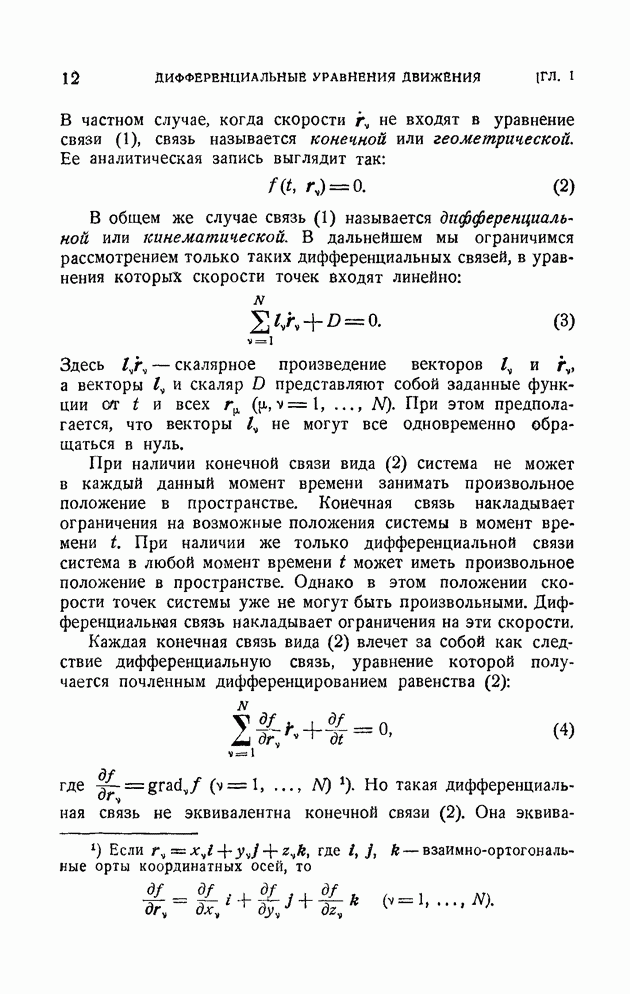 В общем же случае связь (1) называется дифференциальной или кинематической. В дальнейшем мы ограничимся рассмотрением только таких дифференциальных связей, в уравнения которых скорости точек входят линейно: