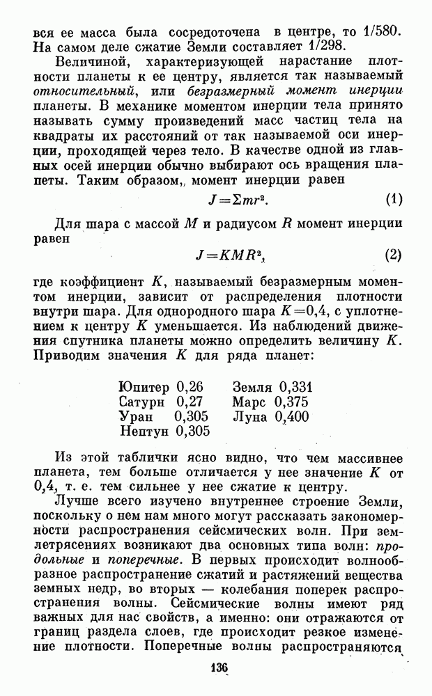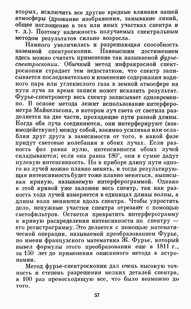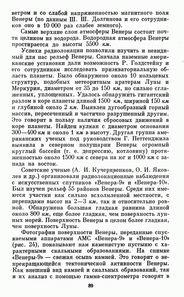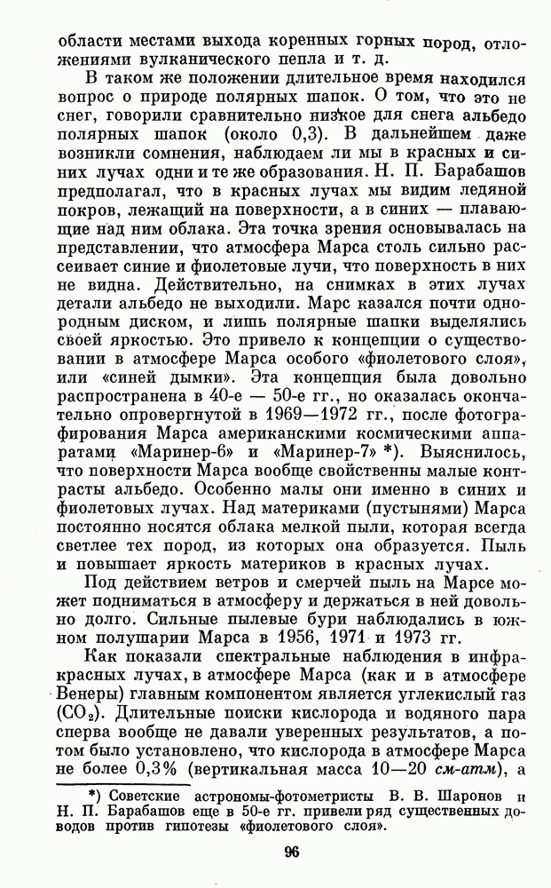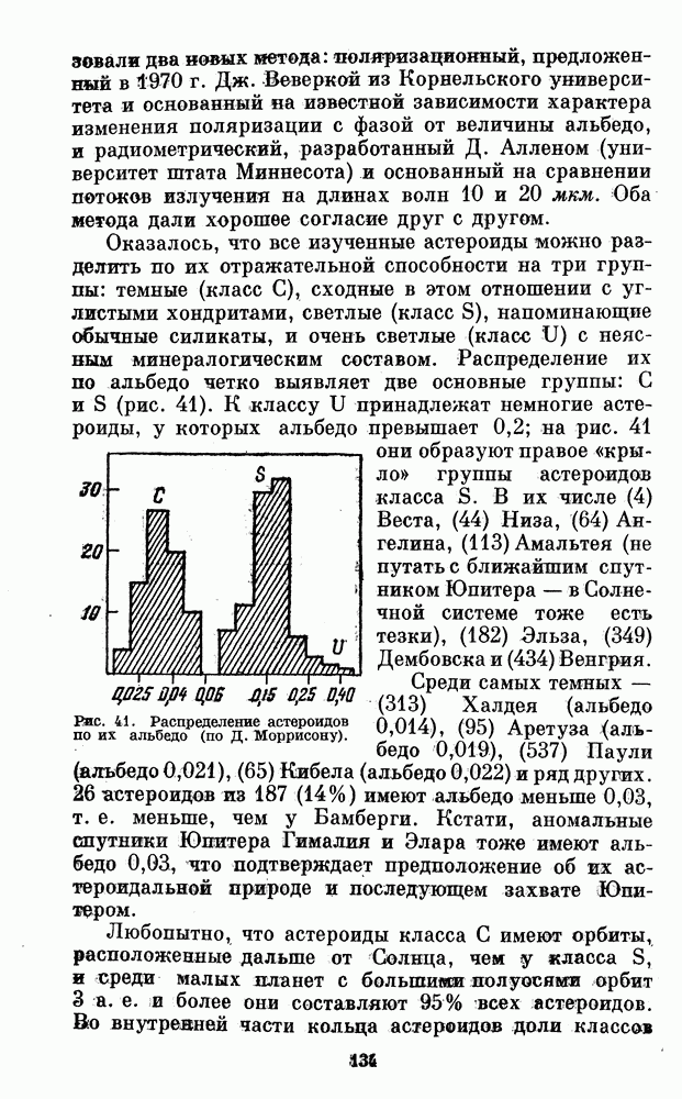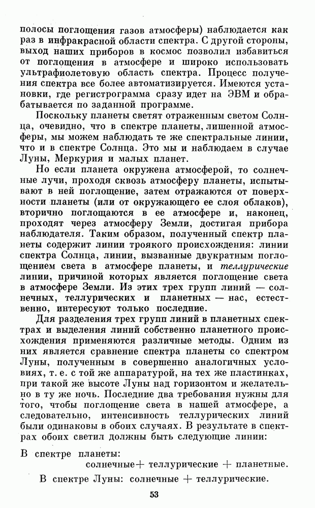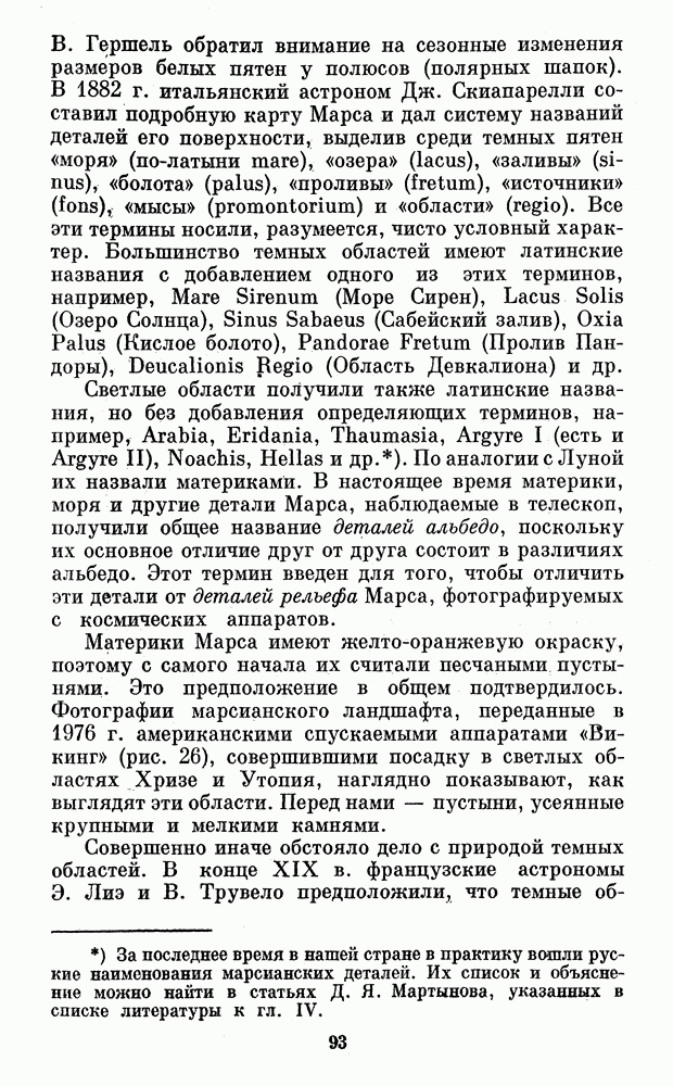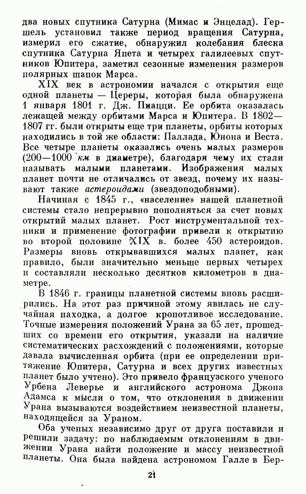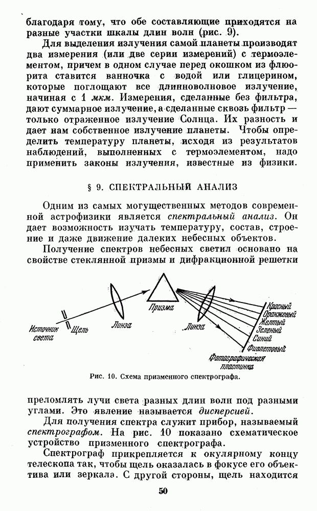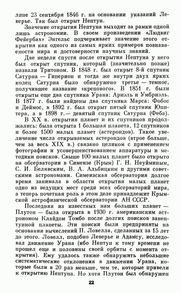 ГЛАВА V. ОБРАБОТКА НАБЛЮДЕНИЙ§ 31. ЧТО ТАКОЕ ОБРАБОТКА НАБЛЮДЕНИЙМы уже говорили в § 20 о бессмысленности «наблюдений ради наблюдений». Чтобы наблюдения могли принести пользу науке и дать какой-нибудь научный результат, их необходимо подвергнуть обработке. Обработка имеет целью обобщение и истолкование наблюдаемых фактов и явлений, суммирование результатов отдельных наблюдений, сравнение и сопоставление этих наблюдений друг с другом. Так как при обработке наблюдений приходится производить вычисления, важно, чтобы обрабатывающий имел необходимую математическую подготовку. В большинстве случаев достаточна подготовка в объеме полной средней школы, а в тех случаях, когда методы обработки выходят за рамки курса средней школы, они могут быть легко изучены всяким, прошедшим этот курс. К таким методам относятся интерполирование, корреляция, способ наименьших квадратов и некоторые другие. Интерполирование ставит своей задачей по двум или нескольким значениям какой-нибудь переменной величины (функции), изменяющейся в зависимости от другой переменной величины (аргумента), найти значения функции для промежуточных значений аргумента. Чаще всего аргументом является время, т. е. требуется по ряду значений функции для заданных моментов t найти ее значения для промежуточных моментов. Наиболее простой случай интерполирования имеет место, когда функция изменяется линейно, т.е. равным изменениям аргумента соответствуют равные между собой изменения функции. П При линейном интерполировании задача решается с помощью пропорций. В более общем случае требуется применение специальных интерполяционных формул, на которых мы здесь останавливаться не будем, отсылая читателя к Постоянной части «Астрономического Календаря» (6-е изд.- М.: Наука, 1973) или к книге П. Г. Куликовского «Справочник любителя астрономии» (4-е изд.- М.: Наука, 1971, с. 206). Там же читатель прочтет и о методе экстраполирования, когда функция ищется не для промежуточного значения аргумента, а для предыдущего или последующего по сравнению с данными. Корреляция преследует цель найти степень зависимости одной величины от другой или убедиться в отсутствии такой зависимости. Если коэффициент корреляции по абсолютной величине равен 1, то мы имеем дело с функциональной зависимостью; если он равен 0, зависимость отсутствует. О вычислении коэффициентов корреляции также можно прочесть в Постоянной части «Астрономического Календаря». Способ наименьших квадратов широко применяется при обработке наблюдений, когда из многих наблюдений нужно найти наиболее вероятные значения искомых величин. Изложение способа наименьших квадратов выходит за рамки этой книги, и мы отсылаем читателя к двум указанным выше книгам. Упрощенное решение той же задачи достигается при помощи способа Коши, который будет изложен в § 34. Кроме этих общих приемов обработки наблюдений, применяемых не только в астрономии, но и во многих других областях науки, при обработке наблюдений планет применяются в каждом случае специфические приемы, которые будут изложены ниже. Всякая обработка наблюдений планет состоит из двух частей: обработки отдельных наблюдений (например, измерения координат деталей, фазы планеты и т. д.) и окончательной обработки, в которой результаты отдельных наблюдений объединяются, сравниваются и обо