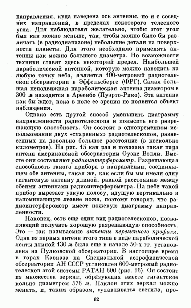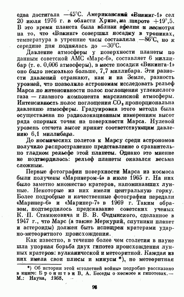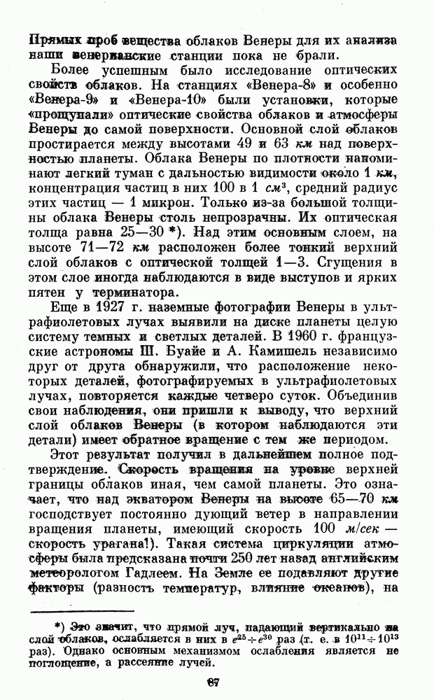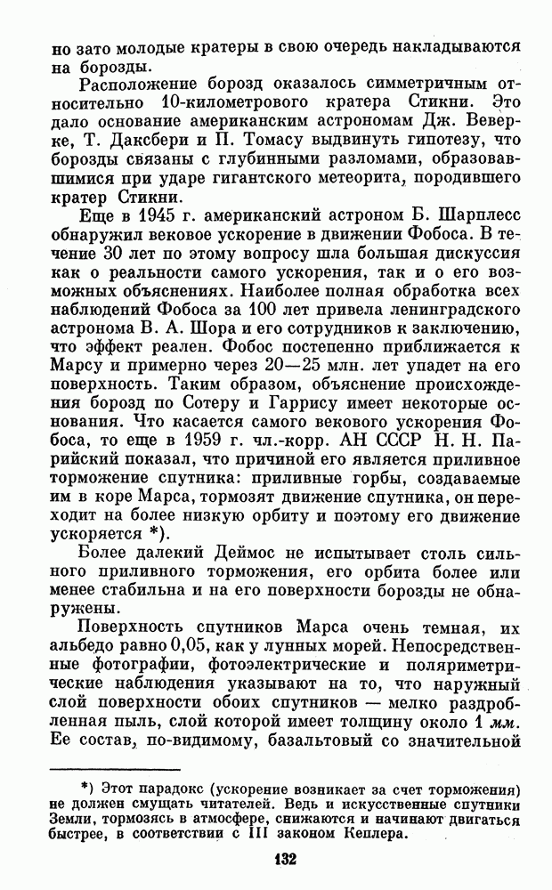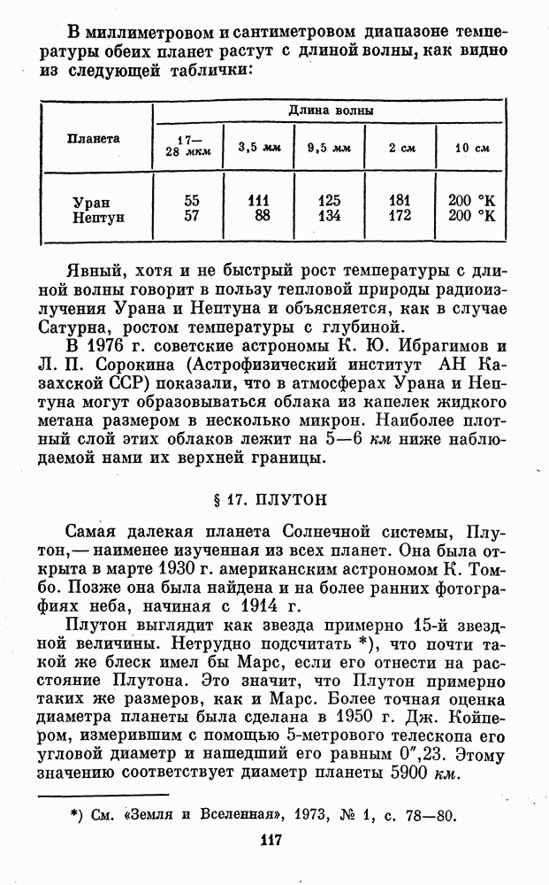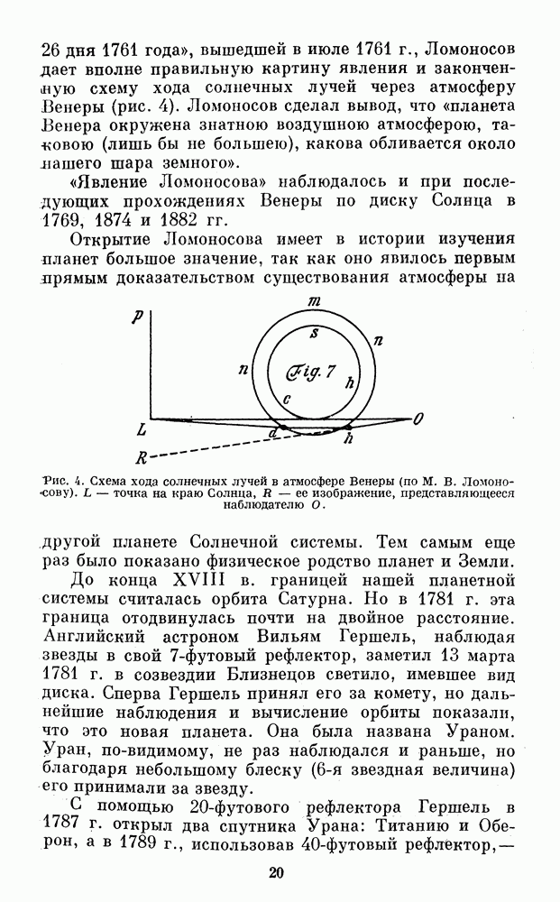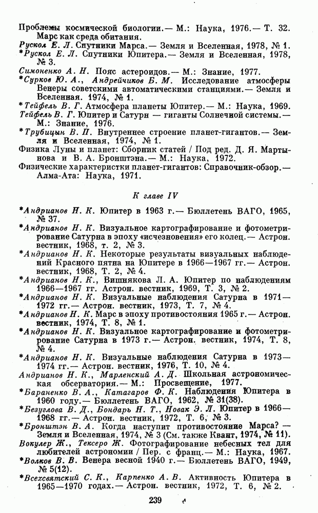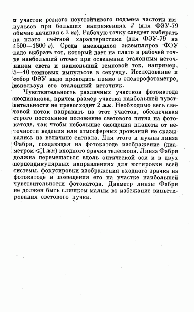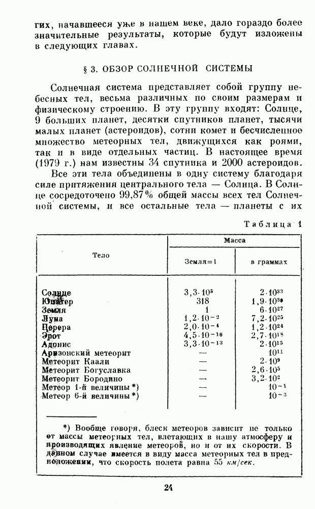 ГЛАВА V. ОБРАБОТКА НАБЛЮДЕНИЙ§ 31. ЧТО ТАКОЕ ОБРАБОТКА НАБЛЮДЕНИЙМы уже говорили в § 20 о бессмысленности «наблюдений ради наблюдений». Чтобы наблюдения могли принести пользу науке и дать какой-нибудь научный результат, их необходимо подвергнуть обработке. Обработка имеет целью обобщение и истолкование наблюдаемых фактов и явлений, суммирование результатов отдельных наблюдений, сравнение и сопоставление этих наблюдений друг с другом. Так как при обработке наблюдений приходится производить вычисления, важно, чтобы обрабатывающий имел необходимую математическую подготовку. В большинстве случаев достаточна подготовка в объеме полной средней школы, а в тех случаях, когда методы обработки выходят за рамки курса средней школы, они могут быть легко изучены всяким, прошедшим этот курс. К таким методам относятся интерполирование, корреляция, способ наименьших квадратов и некоторые другие. Интерполирование ставит своей задачей по двум или нескольким значениям какой-нибудь переменной величины (функции), изменяющейся в зависимости от другой переменной величины (аргумента), найти значения функции для промежуточных значений аргумента. Чаще всего аргументом является время, т. е. требуется по ряду значений функции для заданных моментов t найти ее значения для промежуточных моментов. Наиболее простой случай интерполирования имеет место, когда функция изменяется линейно, т.е. равным изменениям аргумента соответствуют равные между собой изменения функции. П При линейном интерполировании задача решается с помощью пропорций. В более общем случае требуется применение специальных интерполяционных формул, на которых мы здесь останавливаться не будем, отсылая читателя к Постоянной части «Астрономического Календаря» (6-е изд.- М.: Наука, 1973) или к книге П. Г. Куликовского «Справочник любителя астрономии» (4-е изд.- М.: Наука, 1971, с. 206). Там же читатель прочтет и о методе экстраполирования, когда функция ищется не для промежуточного значения аргумента, а для предыдущего или последующего по сравнению с данными. Корреляция преследует цель найти степень зависимости одной величины от другой или убедиться в отсутствии такой зависимости. Если коэффициент корреляции по абсолютной величине равен 1, то мы имеем дело с функциональной зависимостью; если он равен 0, зависимость отсутствует. О вычислении коэффициентов корреляции также можно прочесть в Постоянной части «Астрономического Календаря». Способ наименьших квадратов широко применяется при обработке наблюдений, когда из многих наблюдений нужно найти наиболее вероятные значения искомых величин. Изложение способа наименьших квадратов выходит за рамки этой книги, и мы отсылаем читателя к двум указанным выше книгам. Упрощенное решение той же задачи достигается при помощи способа Коши, который будет изложен в § 34. Кроме этих общих приемов обработки наблюдений, применяемых не только в астрономии, но и во многих других областях науки, при обработке наблюдений планет применяются в каждом случае специфические приемы, которые будут изложены ниже. Всякая обработка наблюдений планет состоит из двух частей: обработки отдельных наблюдений (например, измерения координат деталей, фазы планеты и т. д.) и окончательной обработки, в которой результаты отдельных наблюдений объединяются, сравниваются и обо