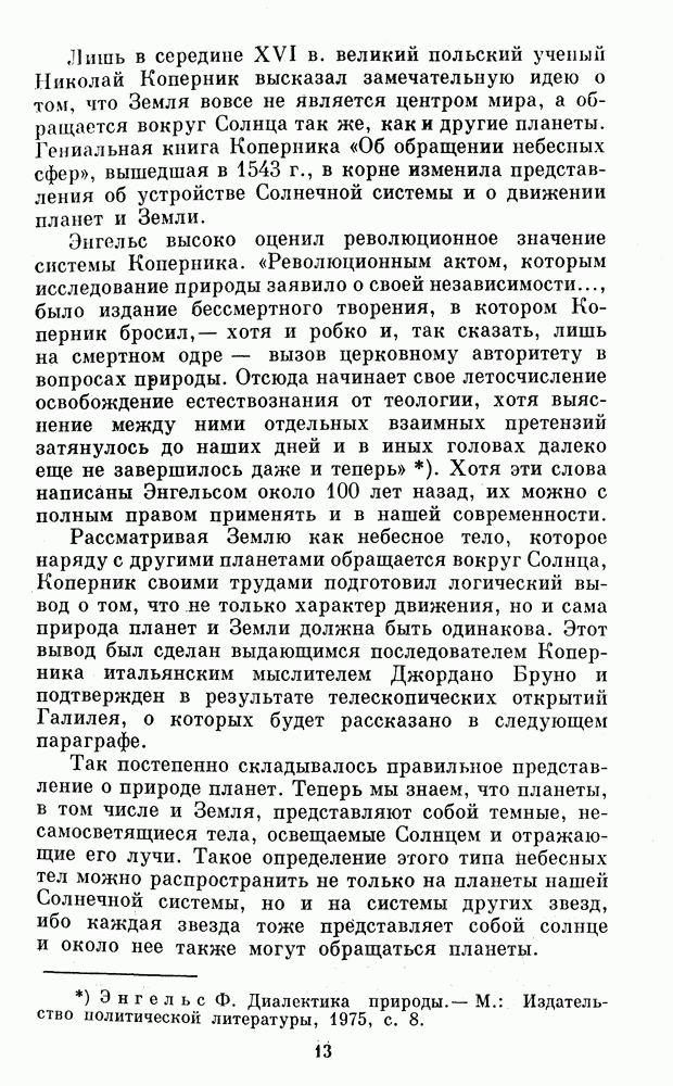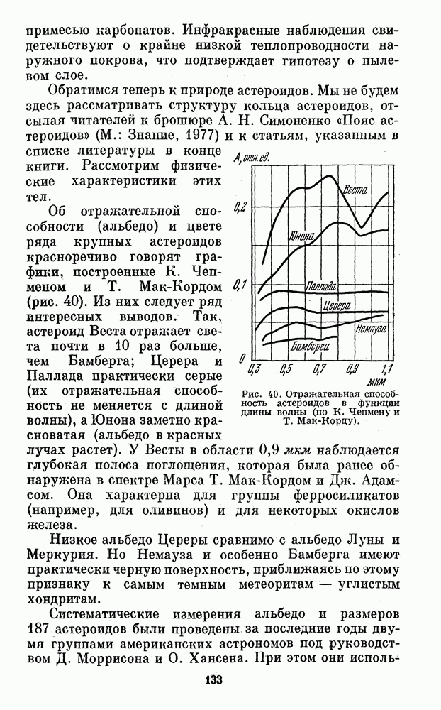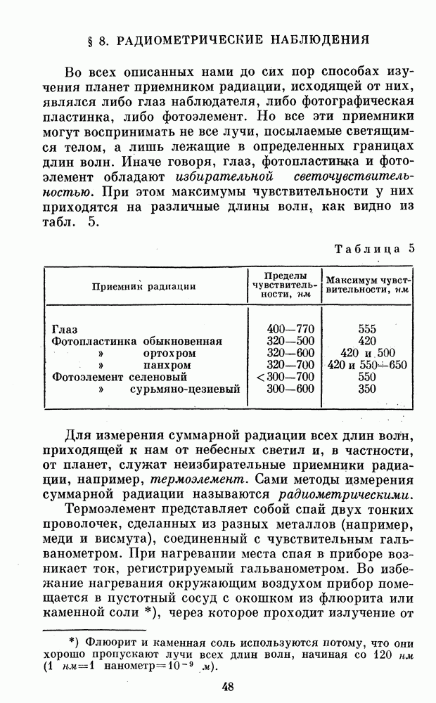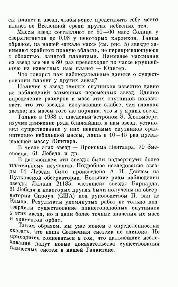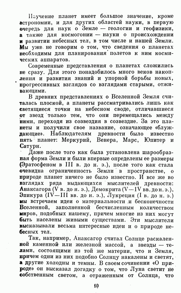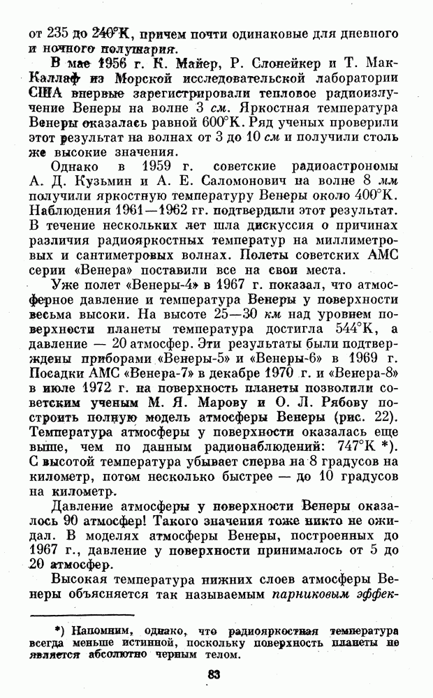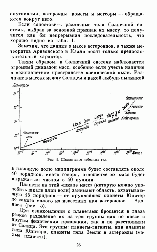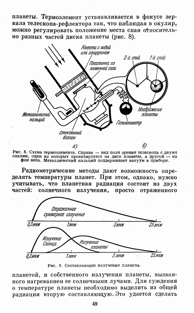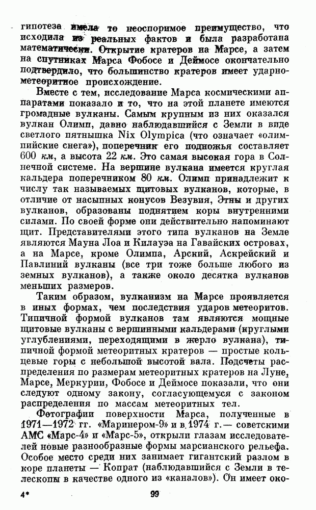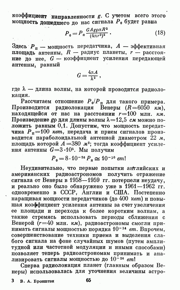 ГЛАВА V. ОБРАБОТКА НАБЛЮДЕНИЙ§ 31. ЧТО ТАКОЕ ОБРАБОТКА НАБЛЮДЕНИЙМы уже говорили в § 20 о бессмысленности «наблюдений ради наблюдений». Чтобы наблюдения могли принести пользу науке и дать какой-нибудь научный результат, их необходимо подвергнуть обработке. Обработка имеет целью обобщение и истолкование наблюдаемых фактов и явлений, суммирование результатов отдельных наблюдений, сравнение и сопоставление этих наблюдений друг с другом. Так как при обработке наблюдений приходится производить вычисления, важно, чтобы обрабатывающий имел необходимую математическую подготовку. В большинстве случаев достаточна подготовка в объеме полной средней школы, а в тех случаях, когда методы обработки выходят за рамки курса средней школы, они могут быть легко изучены всяким, прошедшим этот курс. К таким методам относятся интерполирование, корреляция, способ наименьших квадратов и некоторые другие. Интерполирование ставит своей задачей по двум или нескольким значениям какой-нибудь переменной величины (функции), изменяющейся в зависимости от другой переменной величины (аргумента), найти значения функции для промежуточных значений аргумента. Чаще всего аргументом является время, т. е. требуется по ряду значений функции для заданных моментов t найти ее значения для промежуточных моментов. Наиболее простой случай интерполирования имеет место, когда функция изменяется линейно, т.е. равным изменениям аргумента соответствуют равные между собой изменения функции. П При линейном интерполировании задача решается с помощью пропорций. В более общем случае требуется применение специальных интерполяционных формул, на которых мы здесь останавливаться не будем, отсылая читателя к Постоянной части «Астрономического Календаря» (6-е изд.- М.: Наука, 1973) или к книге П. Г. Куликовского «Справочник любителя астрономии» (4-е изд.- М.: Наука, 1971, с. 206). Там же читатель прочтет и о методе экстраполирования, когда функция ищется не для промежуточного значения аргумента, а для предыдущего или последующего по сравнению с данными. Корреляция преследует цель найти степень зависимости одной величины от другой или убедиться в отсутствии такой зависимости. Если коэффициент корреляции по абсолютной величине равен 1, то мы имеем дело с функциональной зависимостью; если он равен 0, зависимость отсутствует. О вычислении коэффициентов корреляции также можно прочесть в Постоянной части «Астрономического Календаря». Способ наименьших квадратов широко применяется при обработке наблюдений, когда из многих наблюдений нужно найти наиболее вероятные значения искомых величин. Изложение способа наименьших квадратов выходит за рамки этой книги, и мы отсылаем читателя к двум указанным выше книгам. Упрощенное решение той же задачи достигается при помощи способа Коши, который будет изложен в § 34. Кроме этих общих приемов обработки наблюдений, применяемых не только в астрономии, но и во многих других областях науки, при обработке наблюдений планет применяются в каждом случае специфические приемы, которые будут изложены ниже. Всякая обработка наблюдений планет состоит из двух частей: обработки отдельных наблюдений (например, измерения координат деталей, фазы планеты и т. д.) и окончательной обработки, в которой результаты отдельных наблюдений объединяются, сравниваются и обо