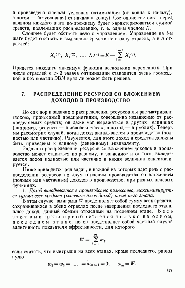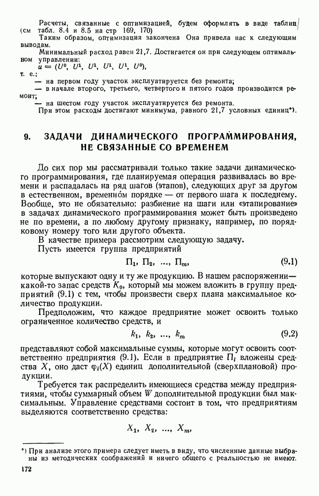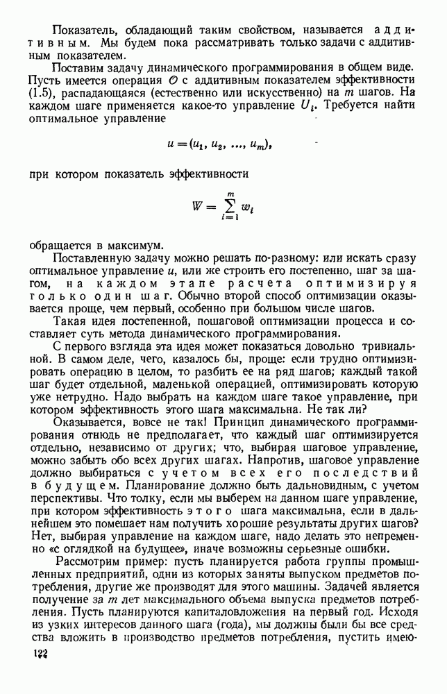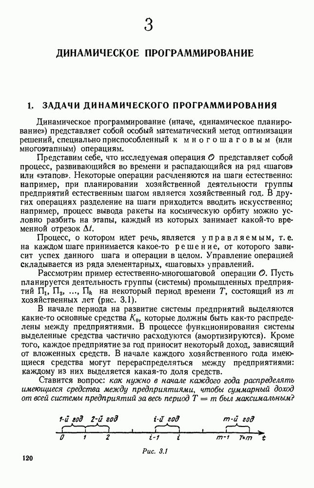 9. ЗАДАЧИ ДИНАМИЧЕСКОГО ПРОГРАММИРОВАНИЯ, НЕ СВЯЗАННЫЕ СО ВРЕМЕНЕМДо сих пор мы рассматривали только такие задачи динамического программирования, где планируемая операция развивалась во времени и распадалась на ряд шагов (этапов), следующих друг за другом в естественном, временном порядке — от первого шага к последнему. Вообще, это не обязательно: разбиение на шаги или «этапирование» в задачах динамического программирования может быть произведено не по времени, а по любому другому признаку, например, по порядковому номеру того Или другого объекта. В качестве примера рассмотрим следующую задачу. Пусть имеется группа предприятий