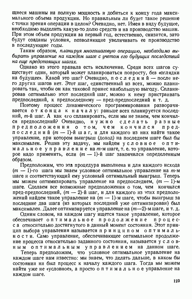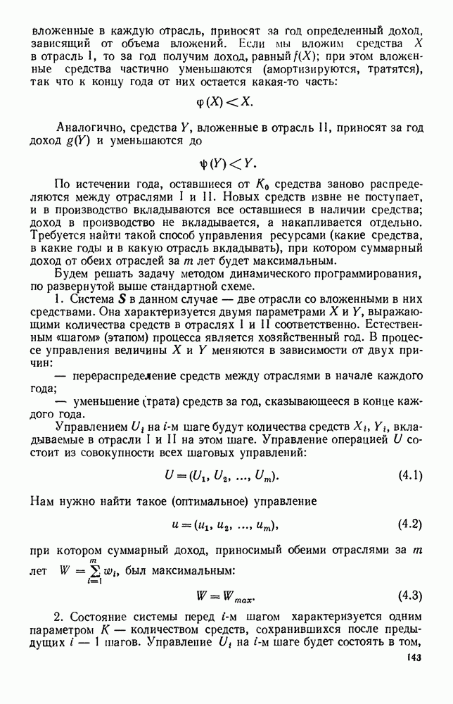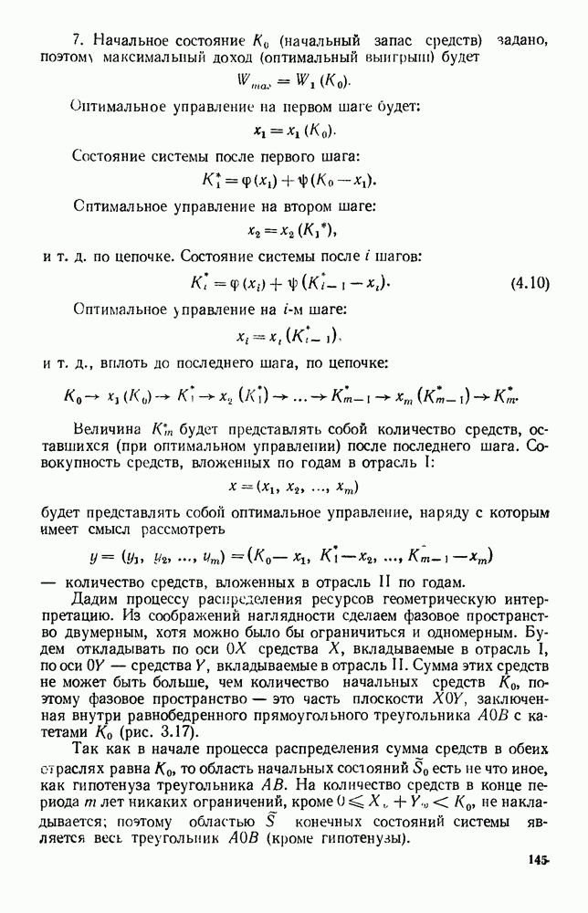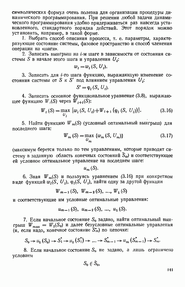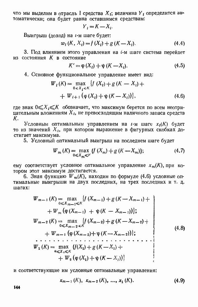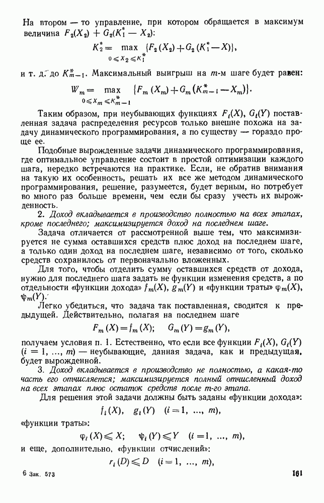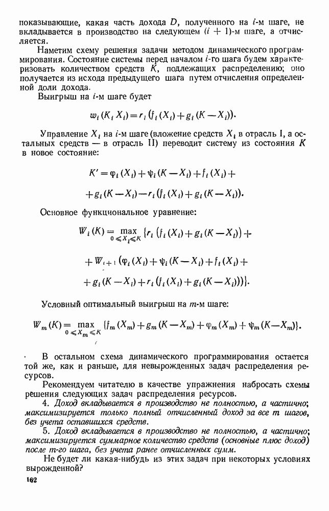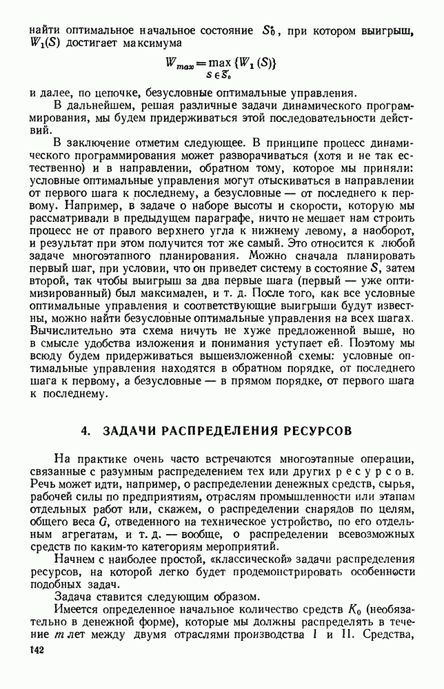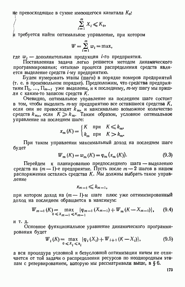 где Поставленная задача легко решается методом динамического программирования; «этапом» процесса распределения средств является выделение средств i-му предприятию. Будем нумеровать этапы (шаги) в порядке номеров предприятий (т. е. в произвольном порядке). Предположим, что средства предприятиям Очевидно, оптимальное управление на последнем шаге состоит в том, чтобы выделить