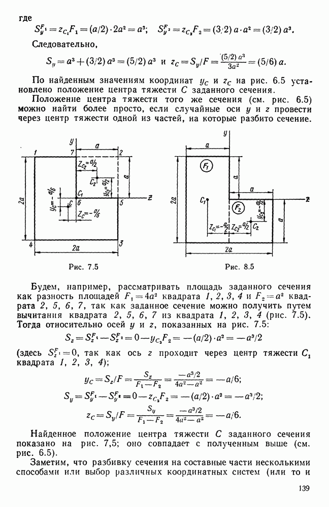6. Как определяются координаты центра тяжести простого и сложного сечения?