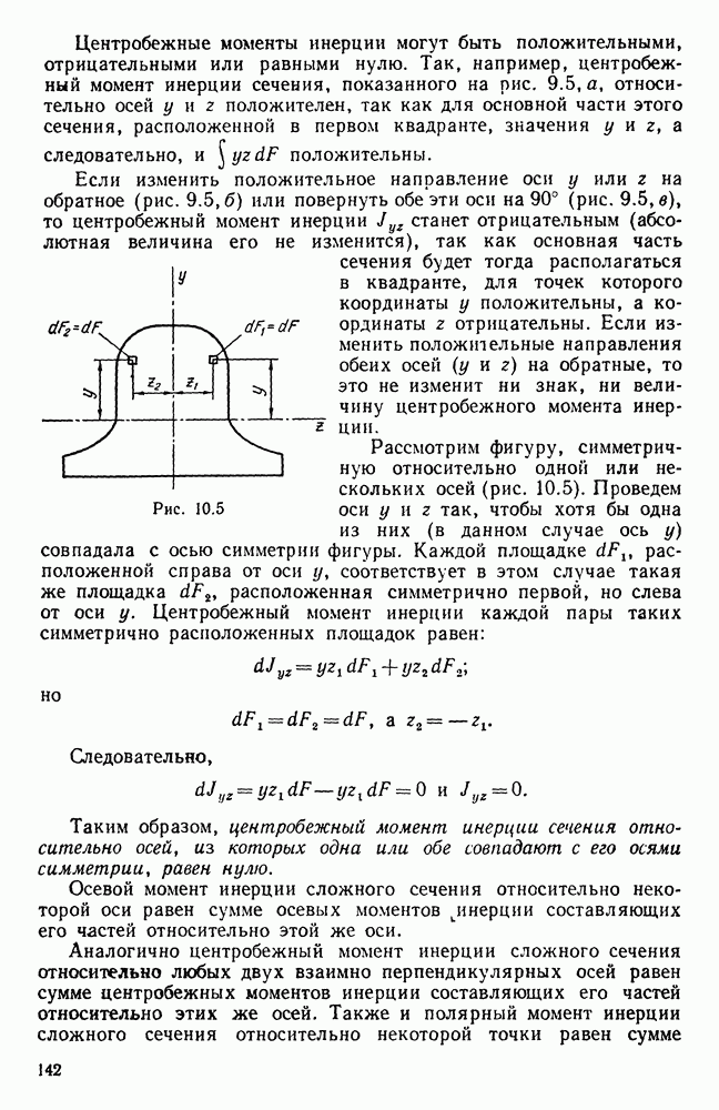 9. Как отражается на знаке центробежного момента инерции сечения изменение положительных направлений одной или обеих координатных осей?
