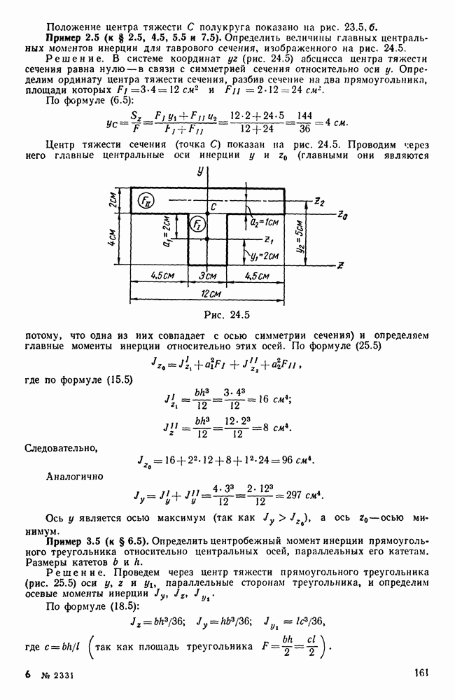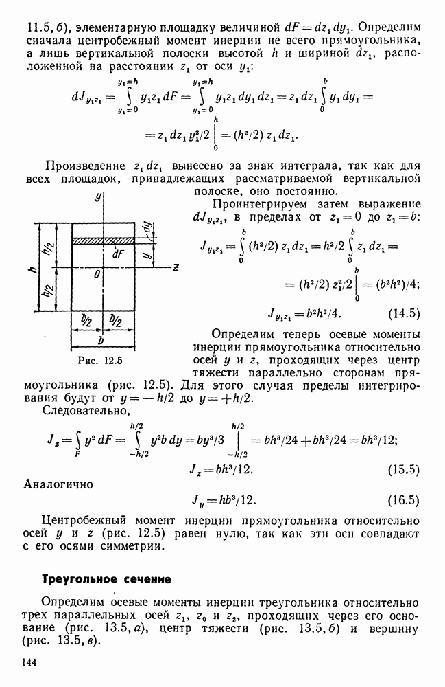 К § 4.5. 10. Чему равны осевые моменты инерции прямоугольника относительно оси, совпадающей с одной из его сторон, и относительно центральной оси, параллельной одной из его сторон?