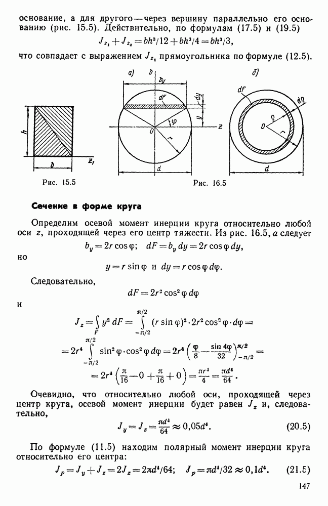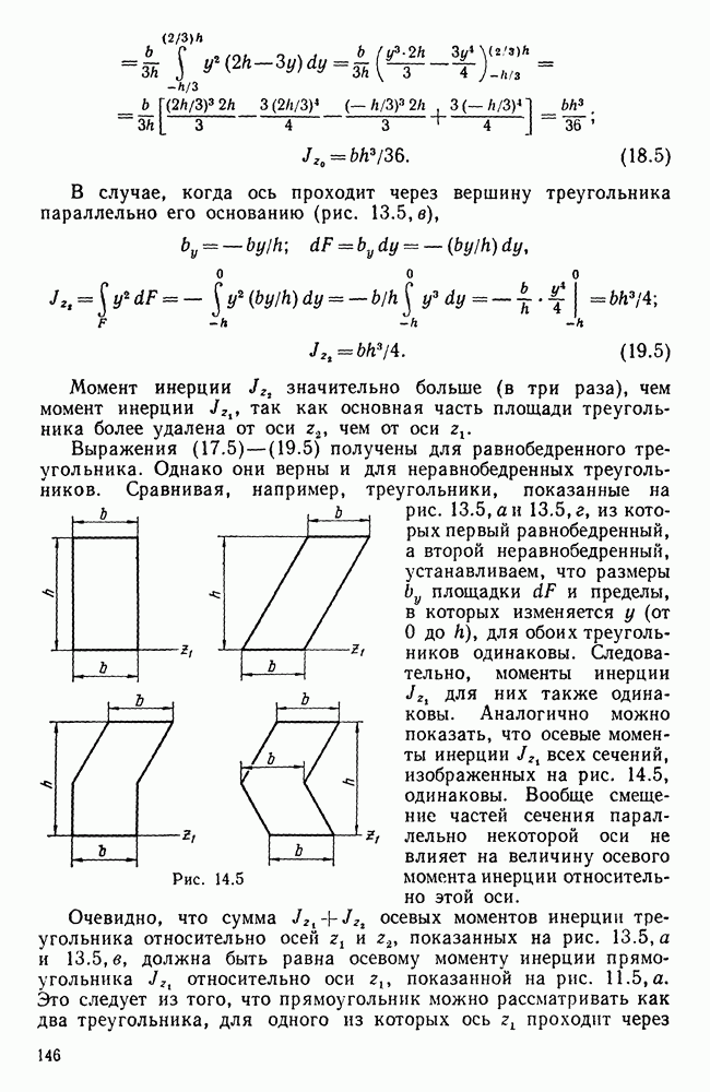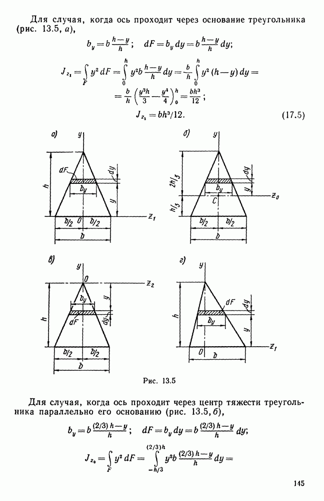 11. Какой из двух осевых моментов инерции треугольника больше: относительно оси, проходящей через основание, или относительно оси, проходящей через вершину треугольника параллельно основанию? Почему?