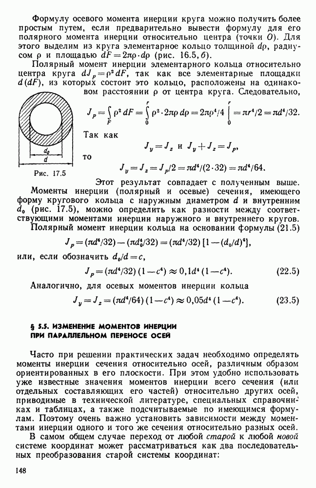 12. Чему равны осевые моменты инерции круга и кольца относительно осей, проходящих через их центры тяжести?