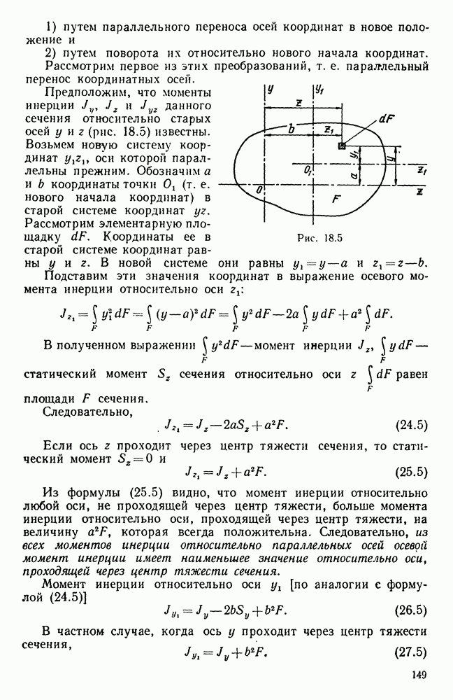 К § 5.5. 14. Выведите зависимости между осевыми и центробежными моментами инерции сечения для параллельных осей.