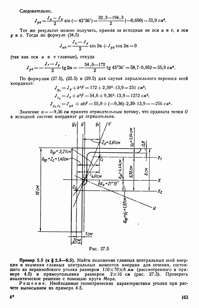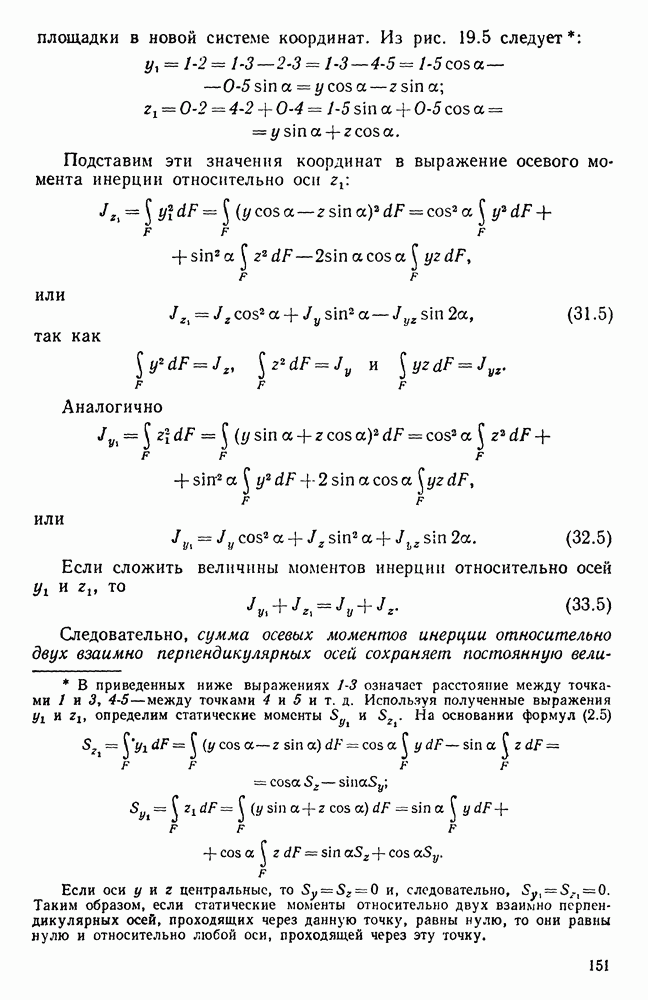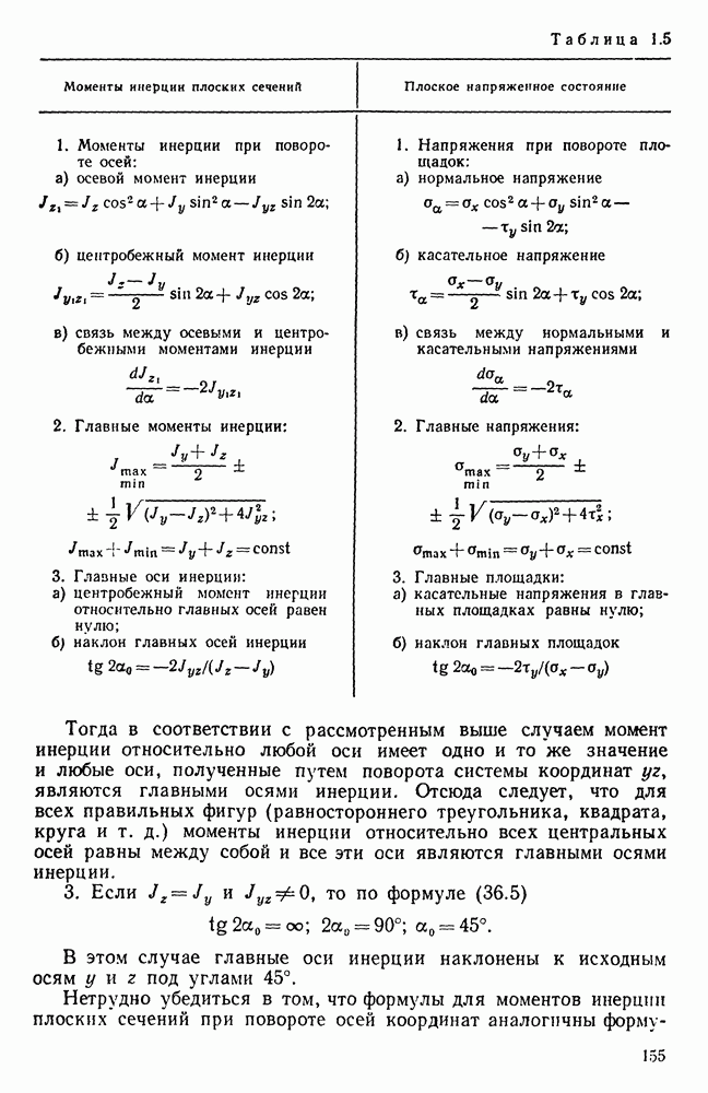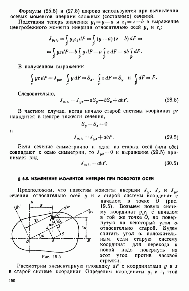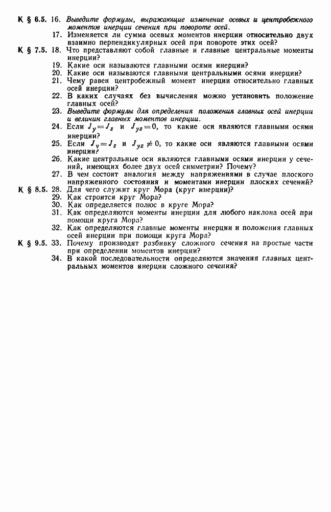 К § 6.5. 16. Выведите формулы, выражающие изменение осевых и центробежного моментов инерции сечения при повороте осей.