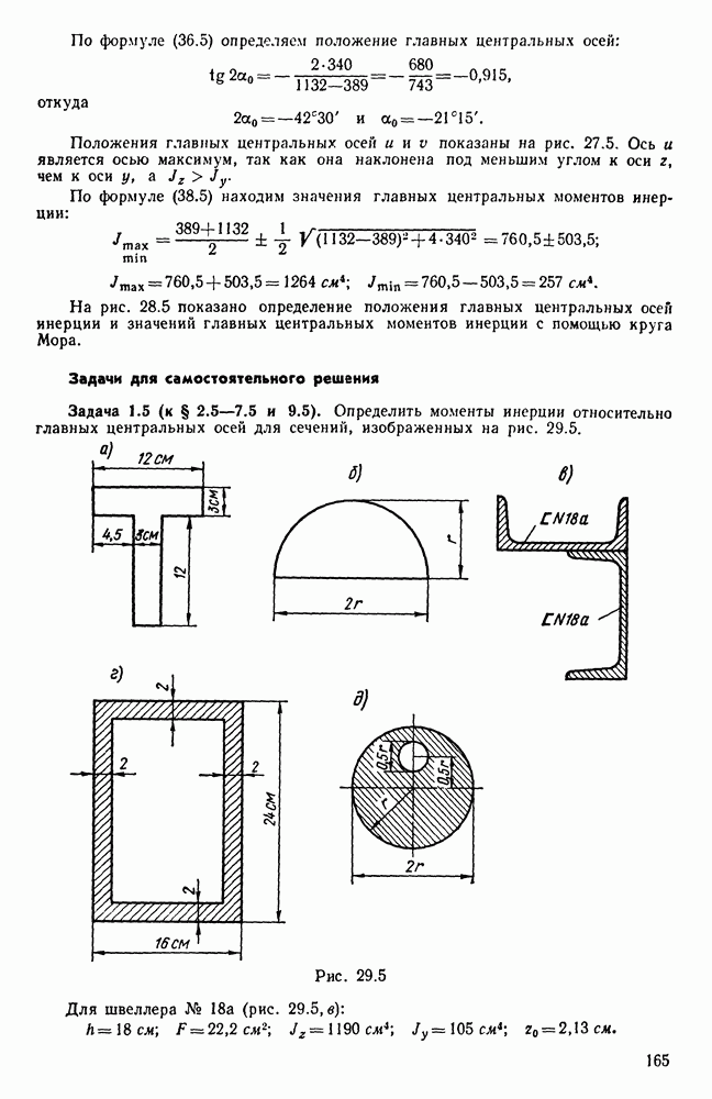 34. В какой последовательности определяются значения главных центральных моментов инерции сложного сечения?