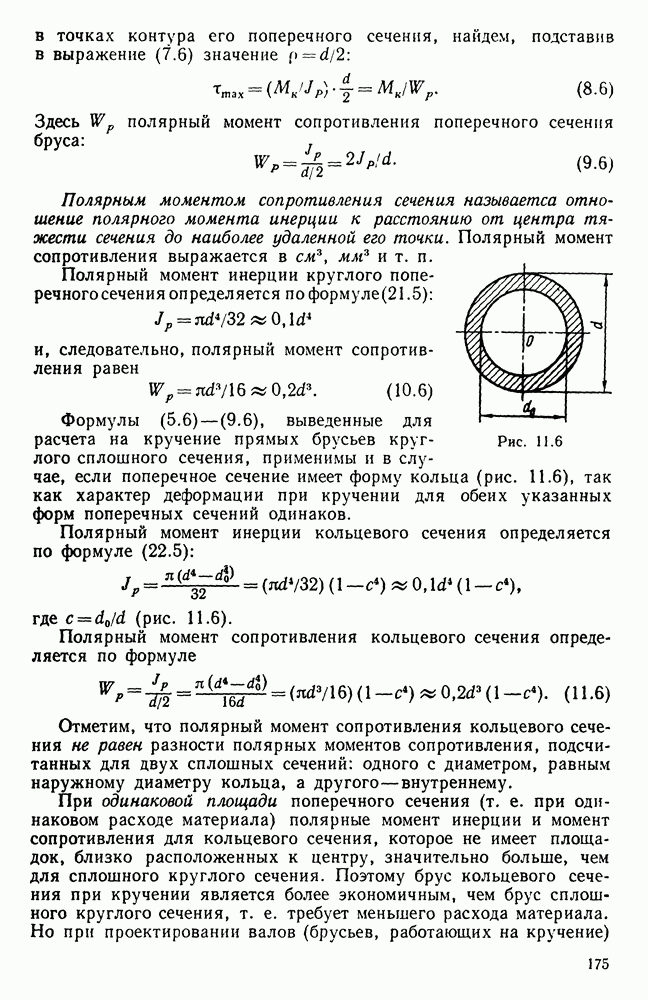 13. Чему равны полярные моменты инерции круга и кольца относительно их центров?