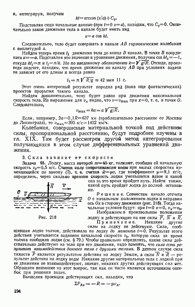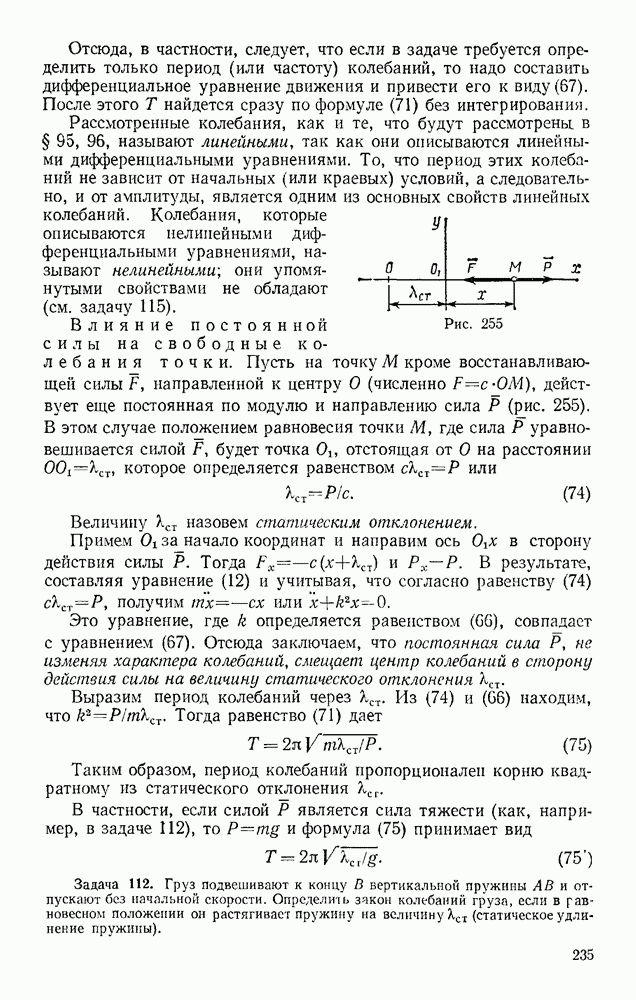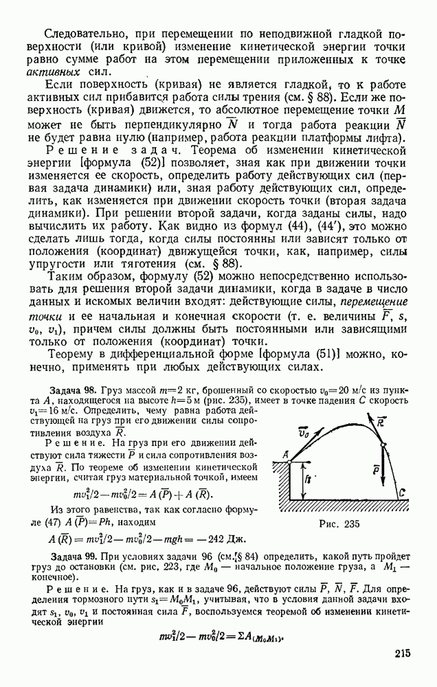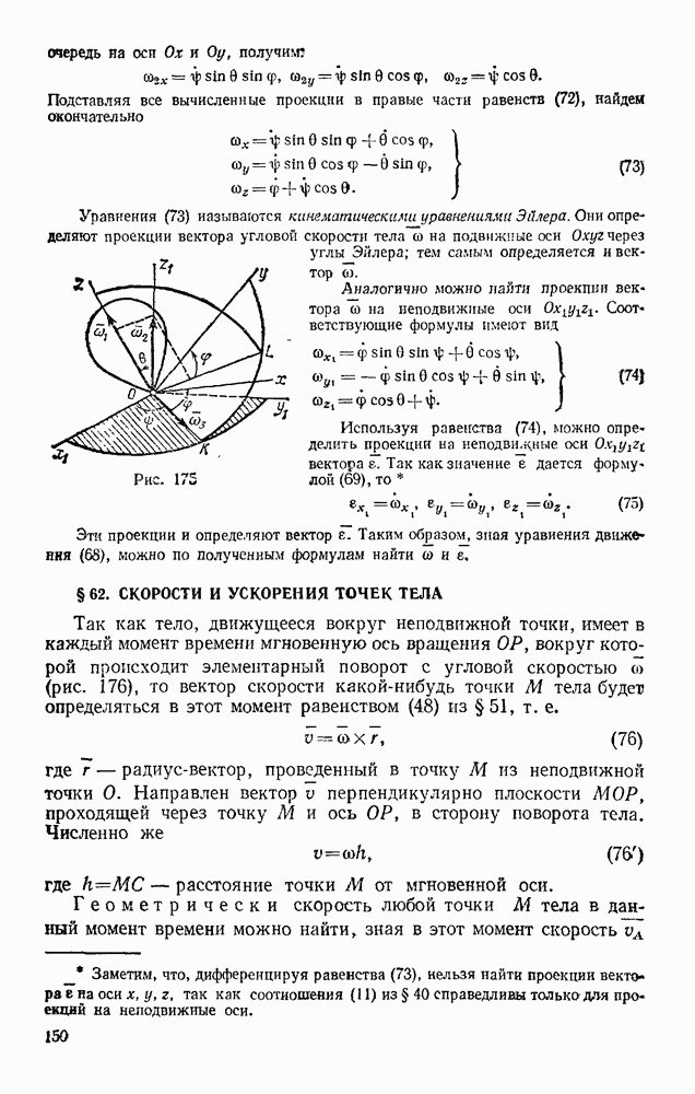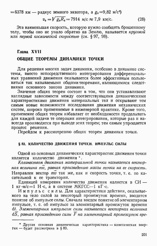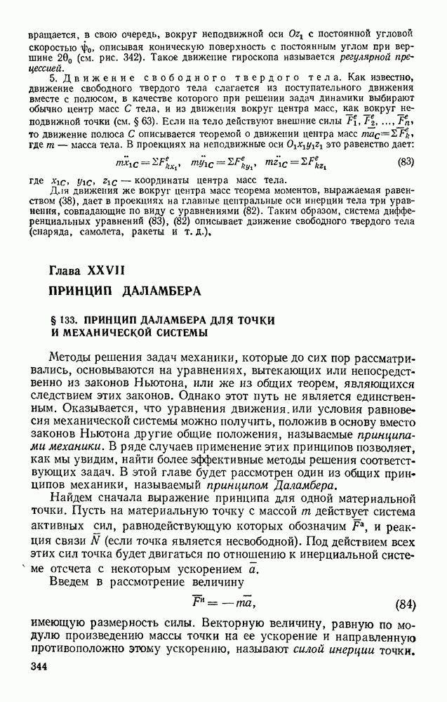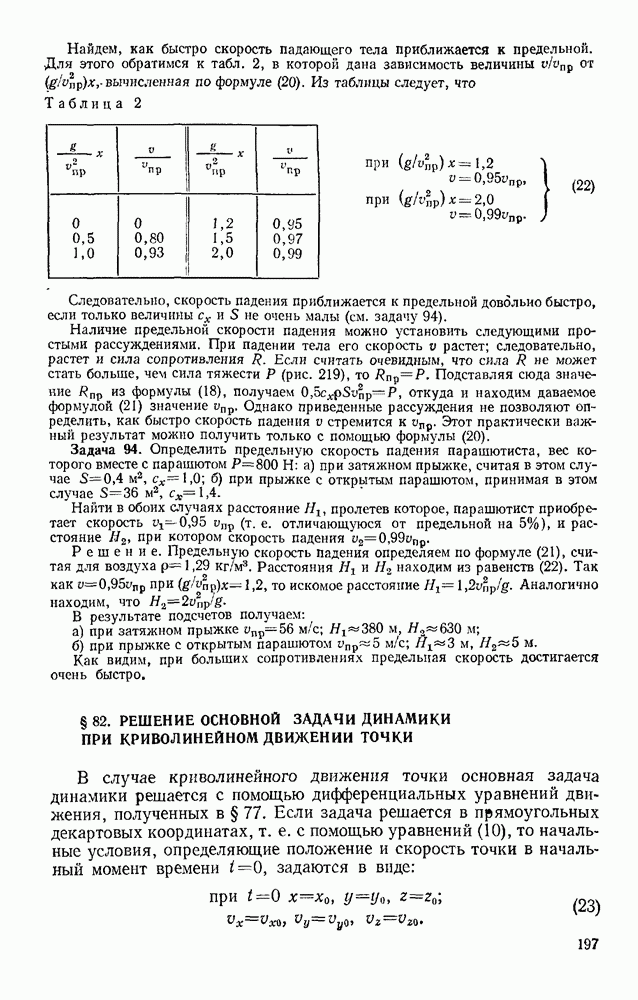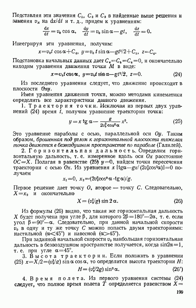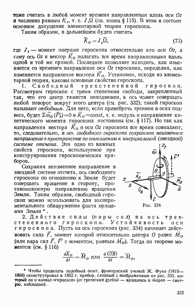 — на восток (т. е. так, как на рис. 251 направлен вектор v). Следовательно, в первом приближении свободно падающая точка (тело) отклоняется вследствие вращения Земли от вертикали к востоку. Тело, брошенное вертикально вверх, будет, очевидно, при подъеме отклоняться к западу. Величины этих отклонений очень малы и заметны только при достаточно большой высоте падения или подъема, что видно из расчетов, приведенных в § 93.
