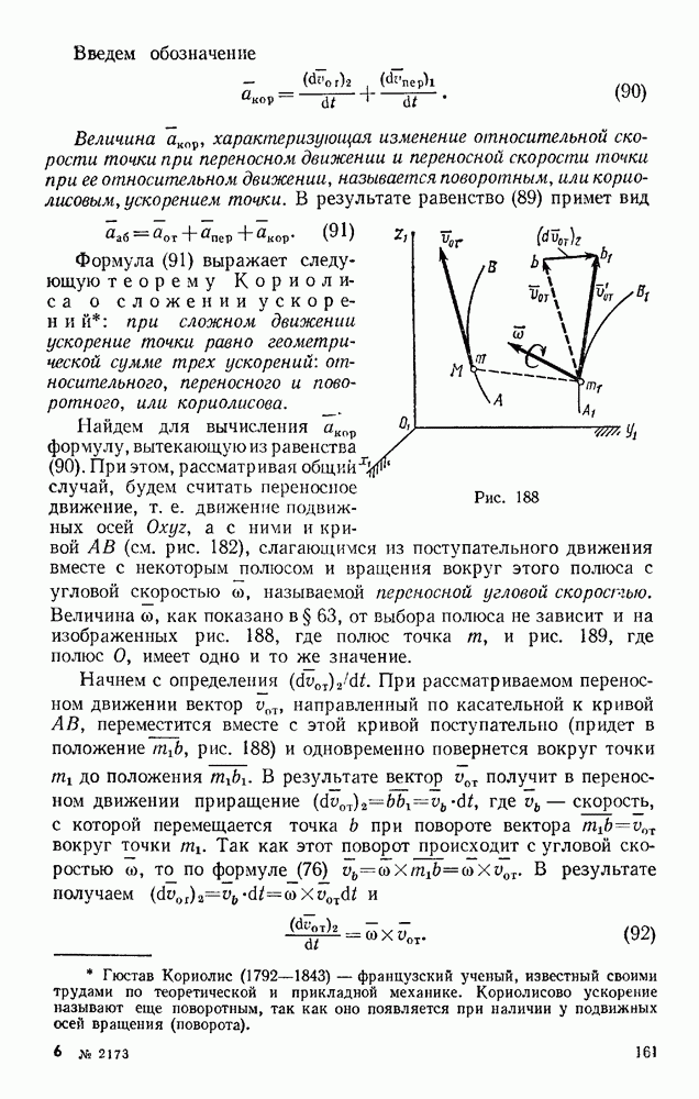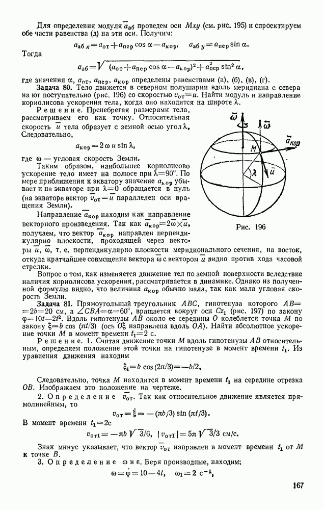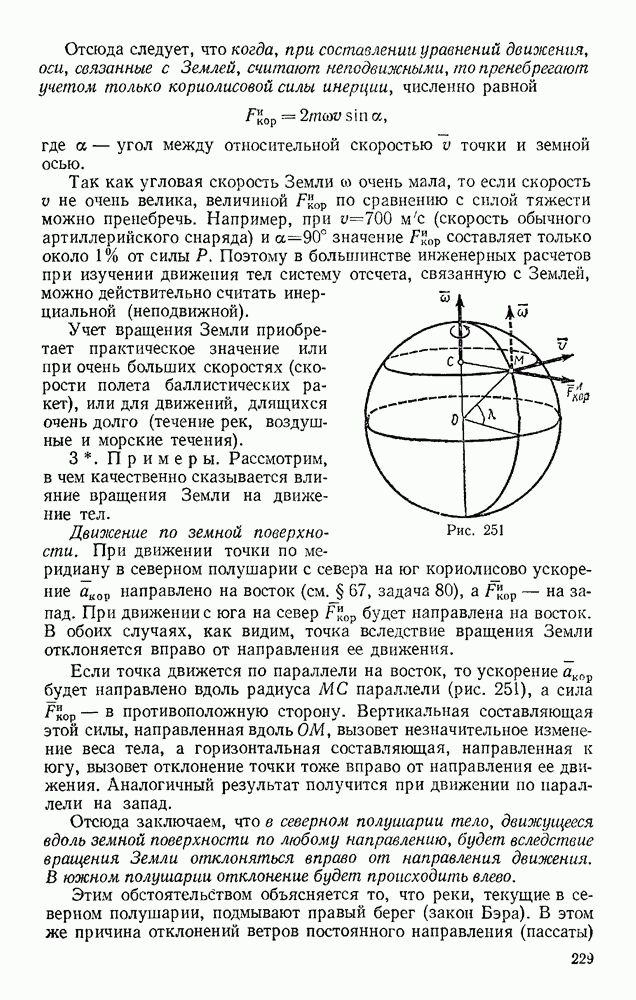 Движение по земной поверхности. При движении точки по меридиану в северном полушарии с севера на юг кориолисово ускорение акор направлено на восток (см. § 67, задача 80),