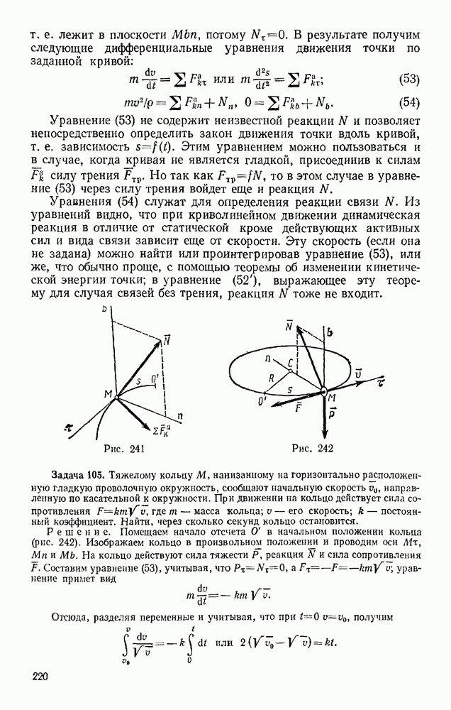 в случае свободно падающей точки, надо знать направление относительной скорости v точки. Так как сила очень мала по сравнению с силой тяжести, то в первом приближении можно считать вектор v, направленным по вертикали, т. е. вдоль линии МО (рис. 251). Тогда вектор