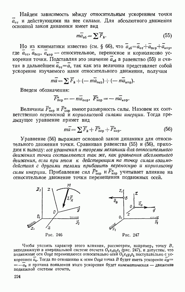 значение Fkop составляет только около 1% от силы Р. Поэтому в большинстве инженерных расчетов при изучении движения тел систему отсчета, связанную с Землей, можно действительно считать инерциальной (неподвижной).