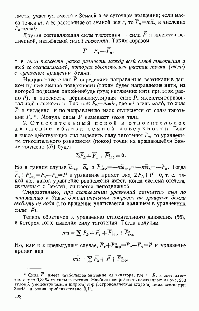 Следовательно, при составлении уравнений равновесия тел по отношению к Земле дополнительных поправок на вращение Земли вводить не надо (это вращение учитывается наличием в уравнениях силы Р).