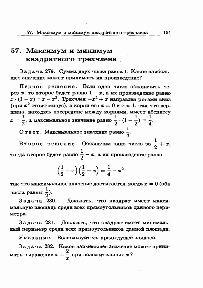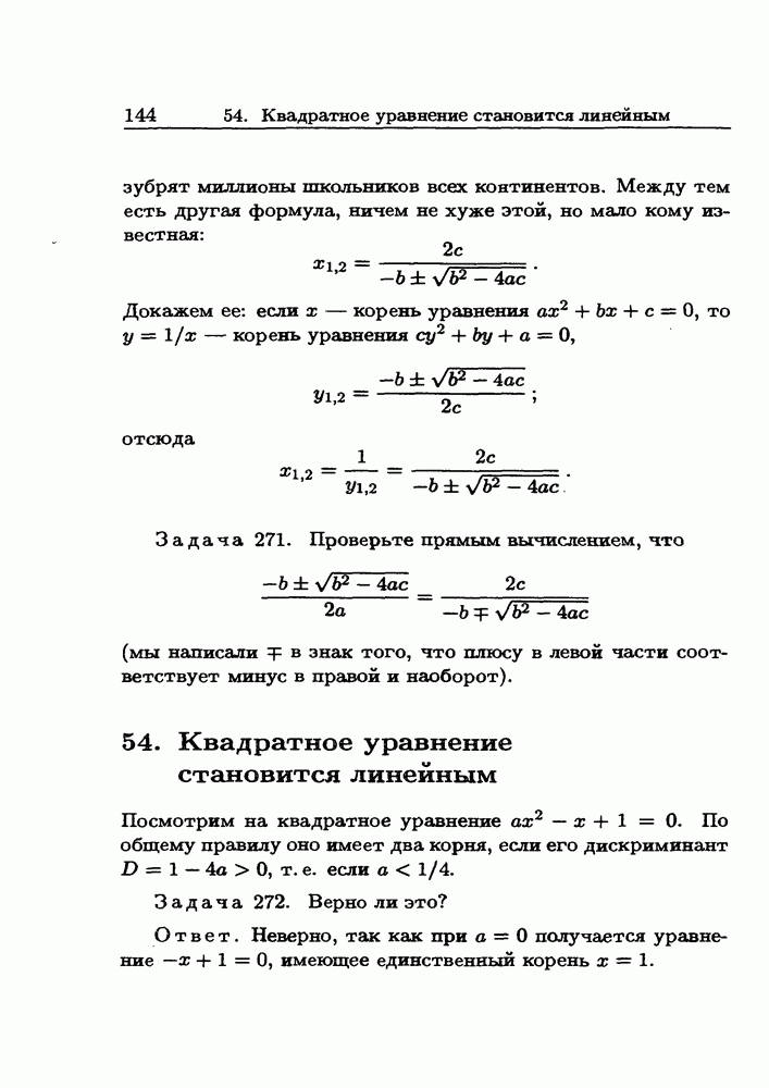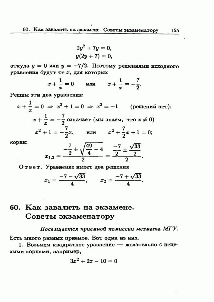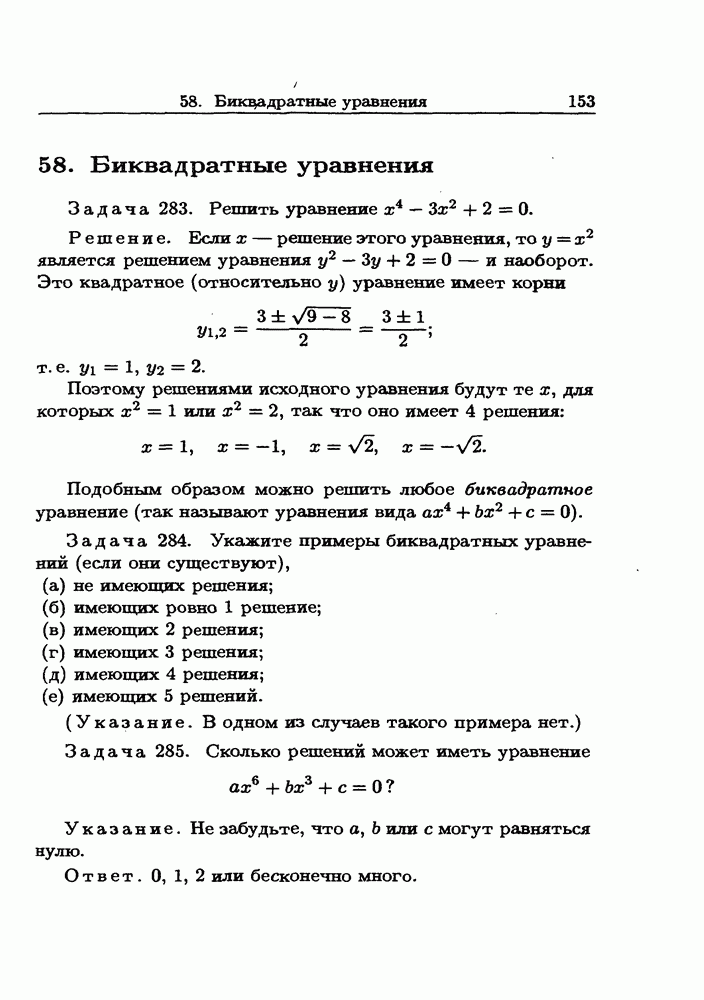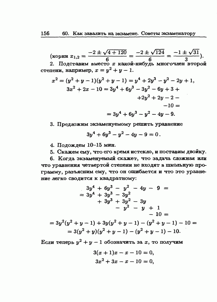 6. Когда экзаменуемый скажет, что задача сложная или что уравнения четвертой степени не входят в шкальную программу, разъясним ему, что он ошибается и что это уравнение легко сводится к квадратному: