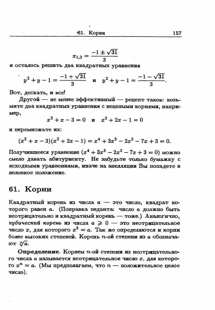 Другой — не менее эффективный — рецепт таков: возьмите два квадратных уравнения с нецелыми корнями, например,