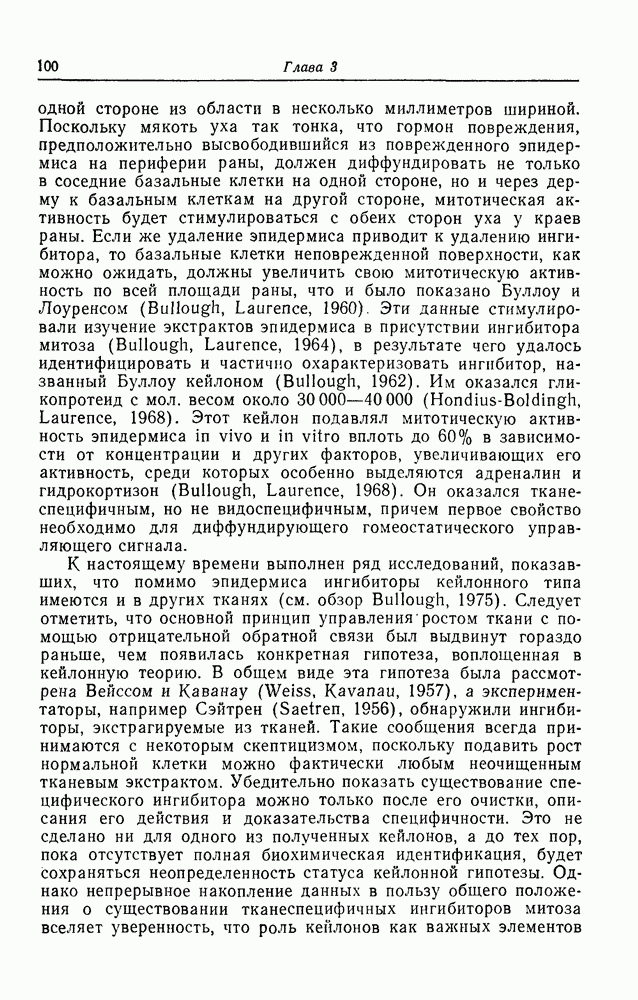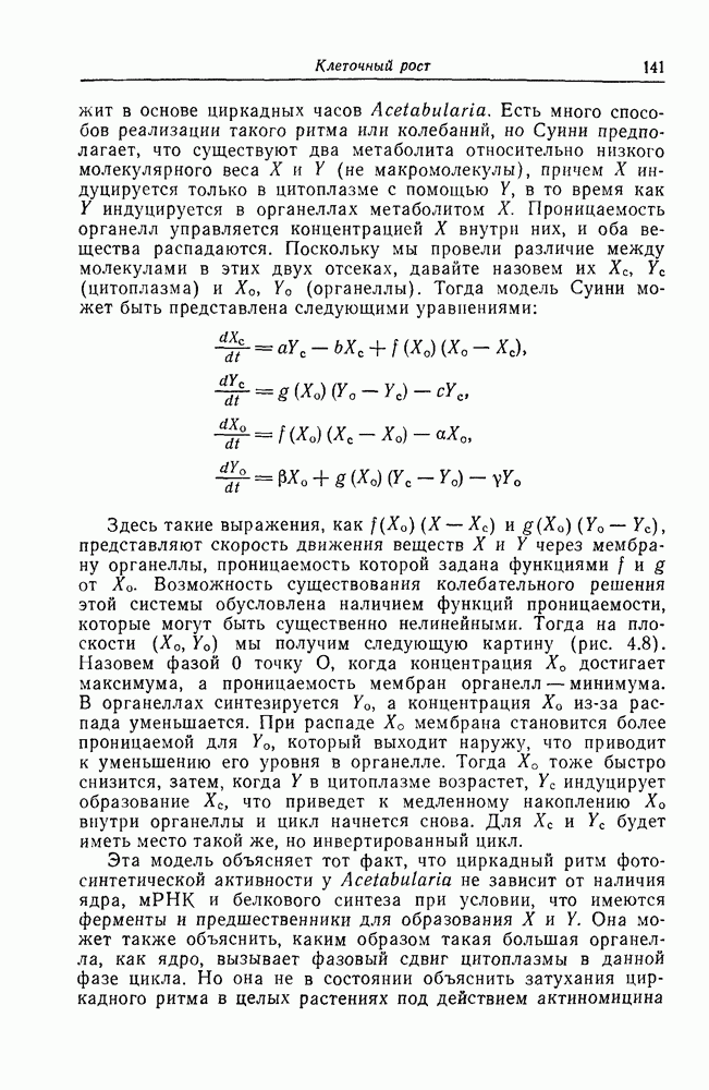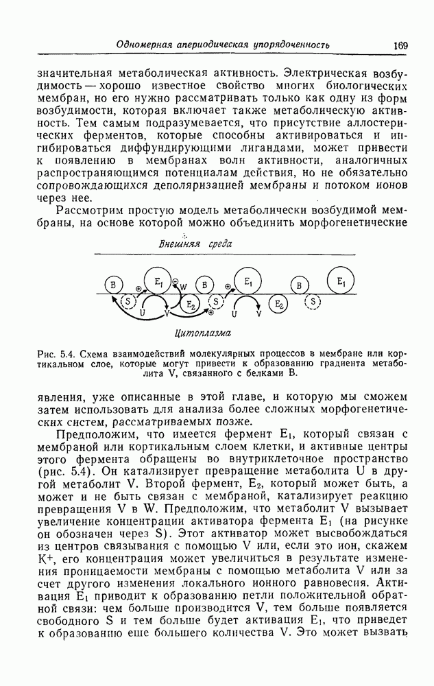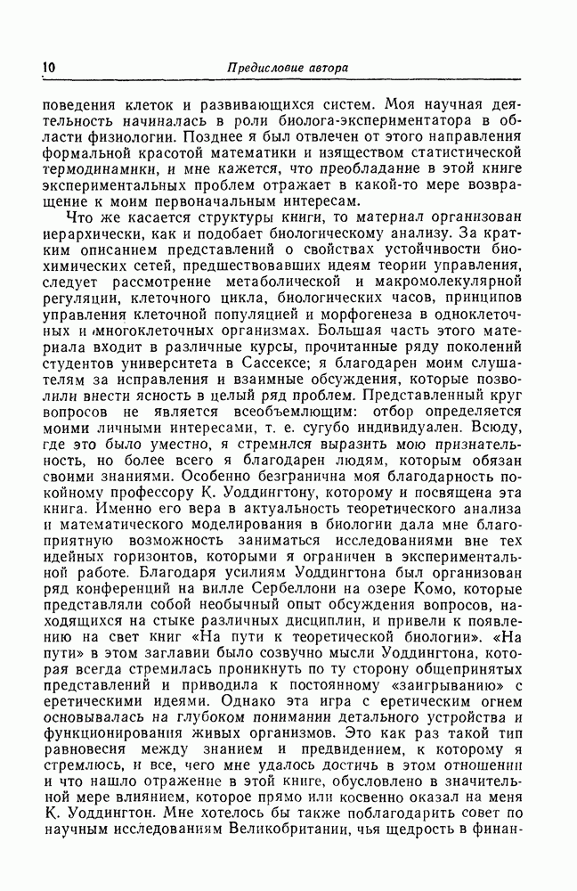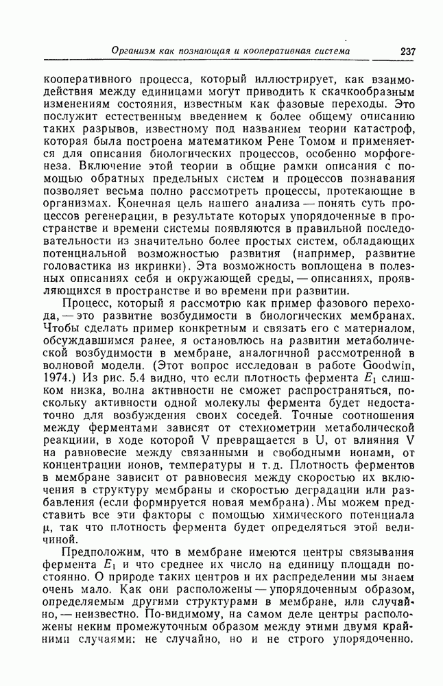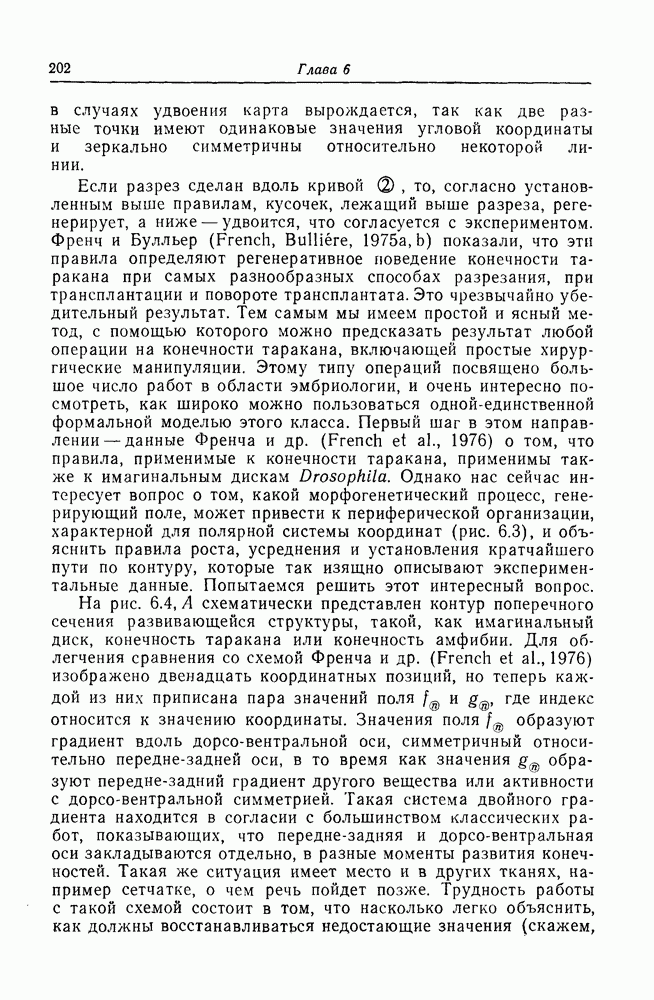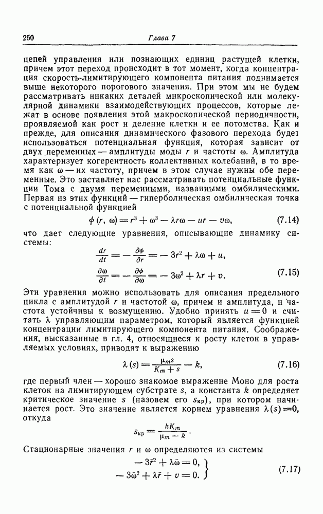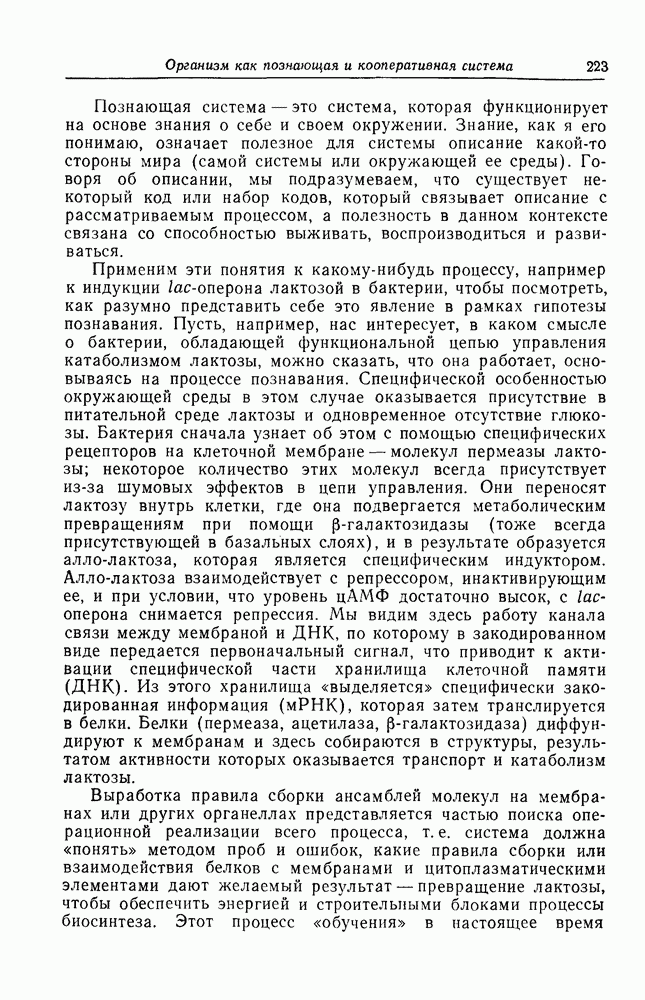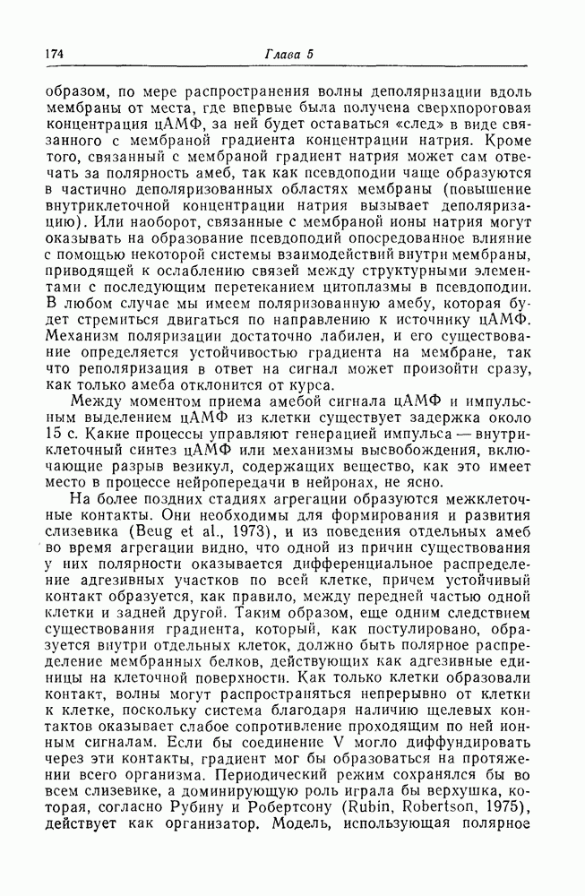 Рис. 3.7. Клеточный цикл эукариотов с ответвлением, ведущим к клеточной дифференцировке У схемы, представленной на рис. 3.7, имеется одна особенность, которая вводит в заблуждение и должна рассматриваться как недостаток: может показаться, что процесс клеточной дифференцировки и клеточный цикл работают по принципу «все или ничего», хотя на самом деле это не так. В течение эмбриогенеза, по мере того как происходят органогенез и клеточная дифференцировка, темп клеточных делений постепенно падает, но промежуточные состояния определенно существуют: частично дифференцированные клетки (миобласты, эритробласты, нейробласты и т. д.) продолжают делиться. Кроме того, четко различимы между собой линии стволовых клеток различных тканей органов у взрослых (тех органов, которые сохраняются в стационарном состоянии путем непрерывного возобновления клеток и дифференцировки, как, например кожа, печень, почка и т. д.), хотя их роль состоит в том, чтобы делиться со скоростью, определяемой некоторыми критериями, характеризующими потребности ткани или органа (используя язык теории управления). Хотя в таких системах клетки, которые в ответ на стимул к дифференцировке покидают стволовую популяцию, изменяют свое состояние, как правило, внезапно, нельзя считать, что этот процесс протекает строго по принципу «все или ничего». Чтобы передать гибкость связи между клеточным циклом и клеточной дифференцировкой, нужна гораздо более динамическая картина, чем та, которая дана на рис. 3.7. Теперь мне хотелось бы остановиться на некоторых исследованиях, дающих динамическую картину тканевой организации и в то же время допускающих построение и исследование модели тканевого гомеостаза с отрицательной обратной связью. Аналогично тому, как проблема управления репликацией ДНК привела нас к вопросу о том, каким образом клетки измеряют свои размеры, проблема управления клеточной дифференцировкой в ткани заставляет исследовать задачу поддержания ее пространственной организации. Это подводит нас к другому уровню биологической иерархии, характерному для многоклеточных. Динамически мы все еще работаем в пределах эпигенетической системы, хотя время теперь измеряется днями. Это происходит потому, что период клеточного цикла высших организмов обычно лежит в диапазоне 10-100 ч.
