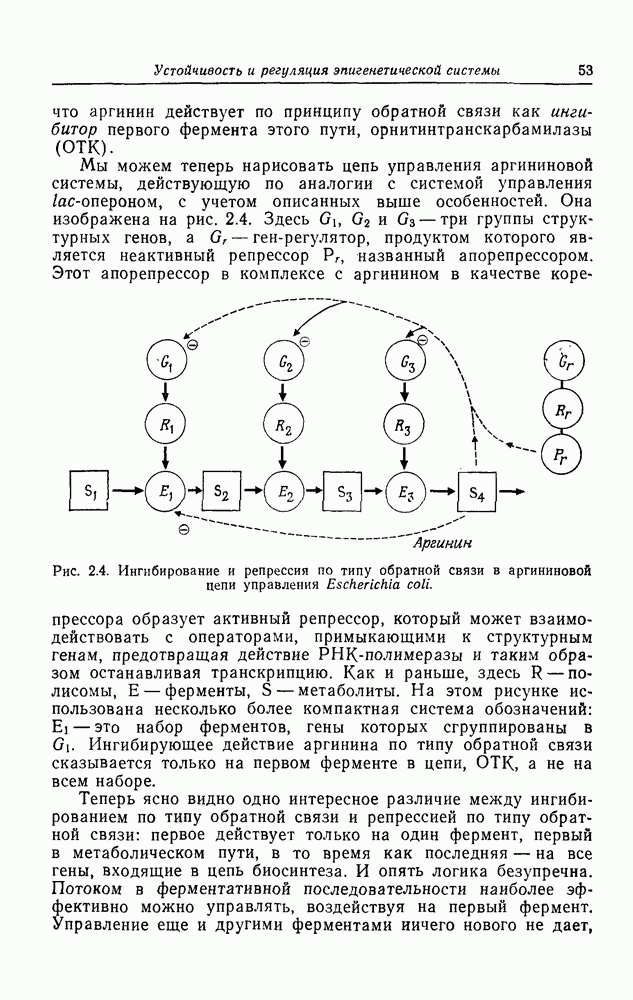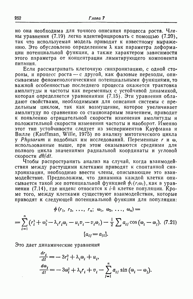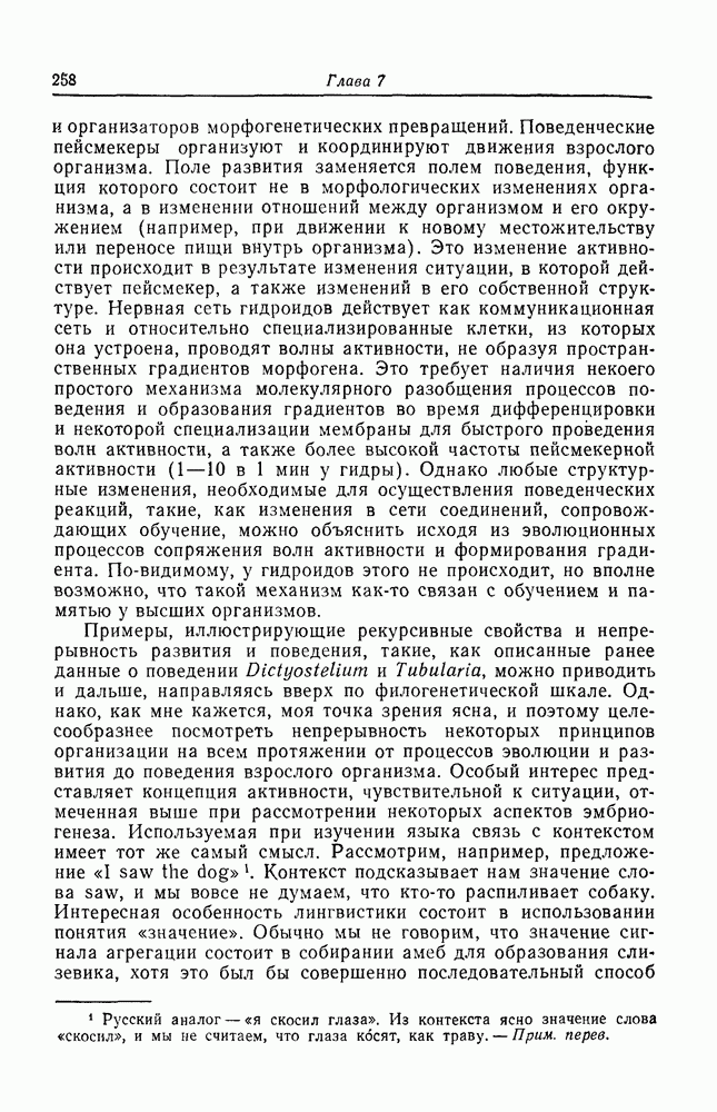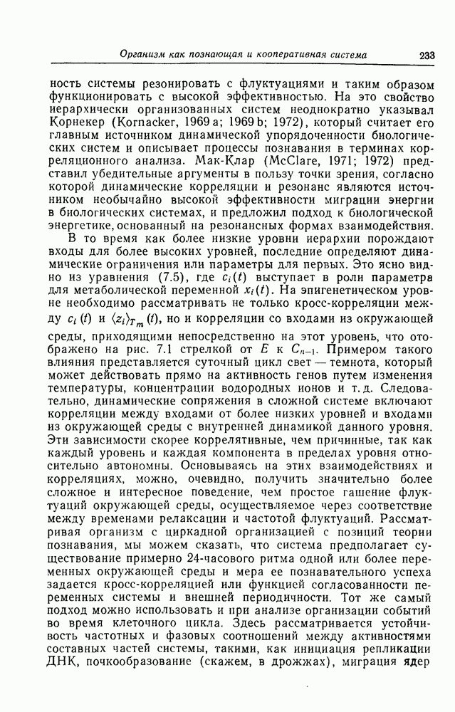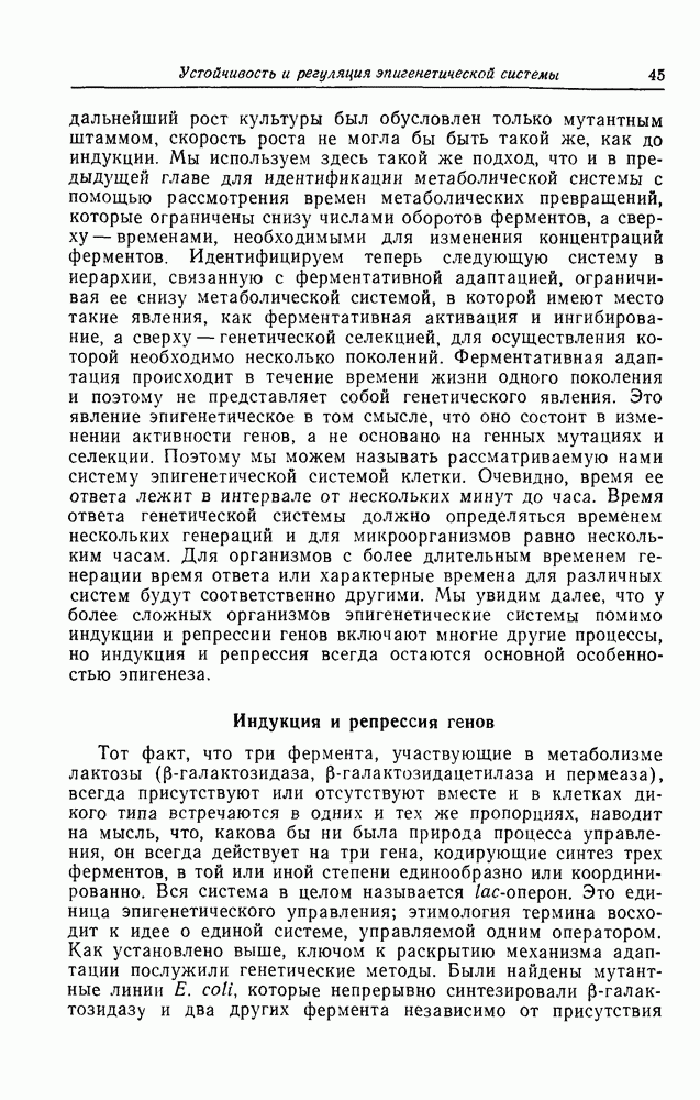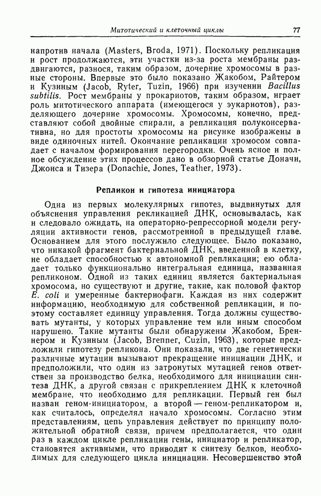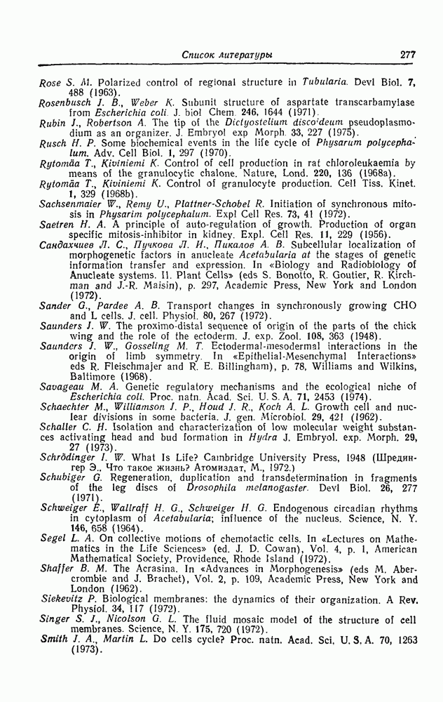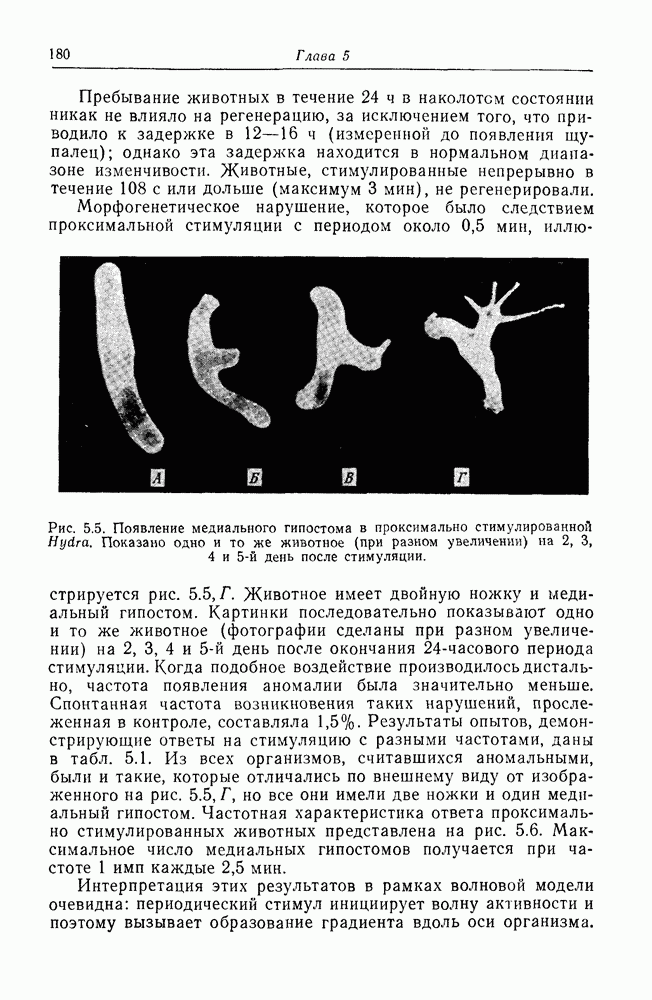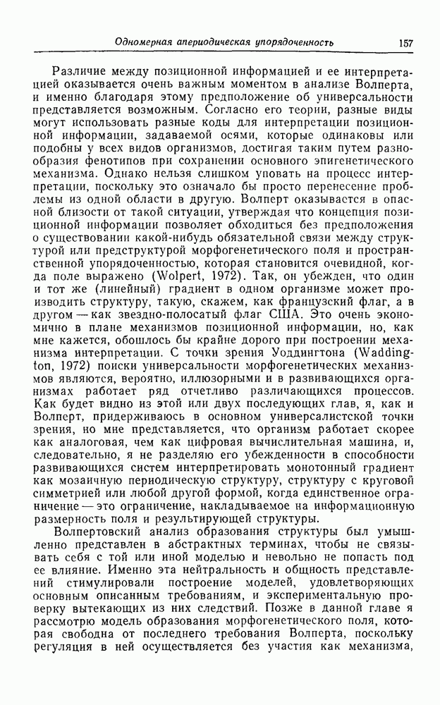 Рис. 3.7. Клеточный цикл эукариотов с ответвлением, ведущим к клеточной дифференцировке У схемы, представленной на рис. 3.7, имеется одна особенность, которая вводит в заблуждение и должна рассматриваться как недостаток: может показаться, что процесс клеточной дифференцировки и клеточный цикл работают по принципу «все или ничего», хотя на самом деле это не так. В течение эмбриогенеза, по мере того как происходят органогенез и клеточная дифференцировка, темп клеточных делений постепенно падает, но промежуточные состояния определенно существуют: частично дифференцированные клетки (миобласты, эритробласты, нейробласты и т. д.) продолжают делиться. Кроме того, четко различимы между собой линии стволовых клеток различных тканей органов у взрослых (тех органов, которые сохраняются в стационарном состоянии путем непрерывного возобновления клеток и дифференцировки, как, например кожа, печень, почка и т. д.), хотя их роль состоит в том, чтобы делиться со скоростью, определяемой некоторыми критериями, характеризующими потребности ткани или органа (используя язык теории управления). Хотя в таких системах клетки, которые в ответ на стимул к дифференцировке покидают стволовую популяцию, изменяют свое состояние, как правило, внезапно, нельзя считать, что этот процесс протекает строго по принципу «все или ничего». Чтобы передать гибкость связи между клеточным циклом и клеточной дифференцировкой, нужна гораздо более динамическая картина, чем та, которая дана на рис. 3.7. Теперь мне хотелось бы остановиться на некоторых исследованиях, дающих динамическую картину тканевой организации и в то же время допускающих построение и исследование модели тканевого гомеостаза с отрицательной обратной связью. Аналогично тому, как проблема управления репликацией ДНК привела нас к вопросу о том, каким образом клетки измеряют свои размеры, проблема управления клеточной дифференцировкой в ткани заставляет исследовать задачу поддержания ее пространственной организации. Это подводит нас к другому уровню биологической иерархии, характерному для многоклеточных. Динамически мы все еще работаем в пределах эпигенетической системы, хотя время теперь измеряется днями. Это происходит потому, что период клеточного цикла высших организмов обычно лежит в диапазоне 10-100 ч.