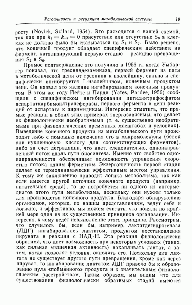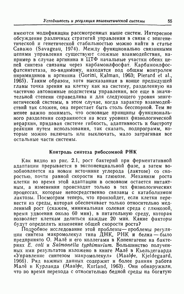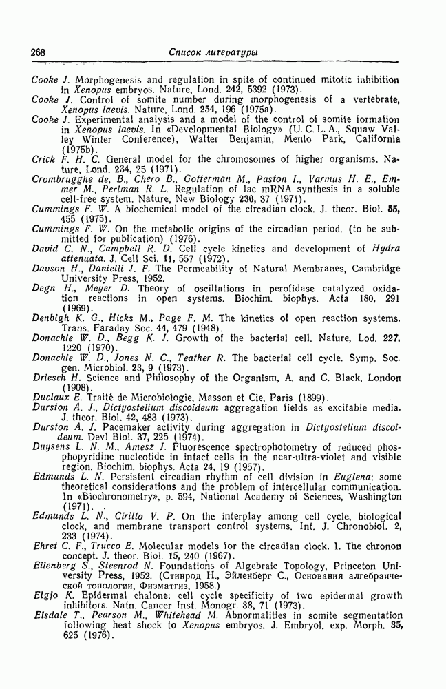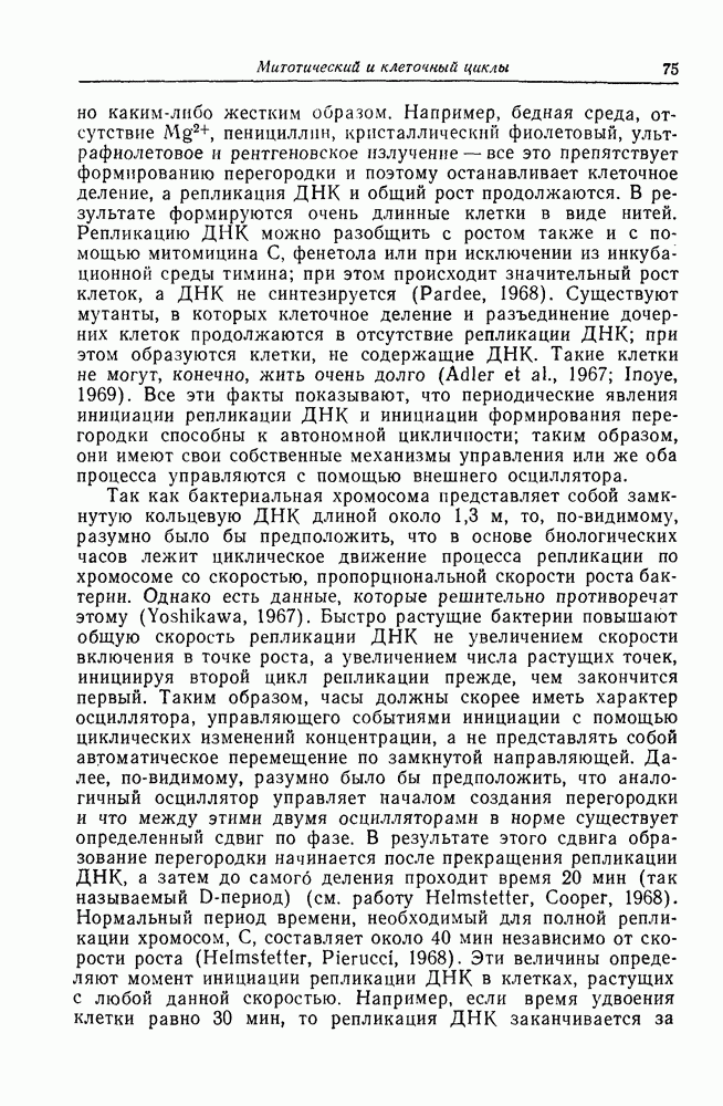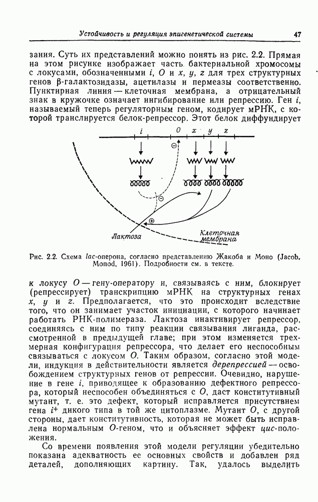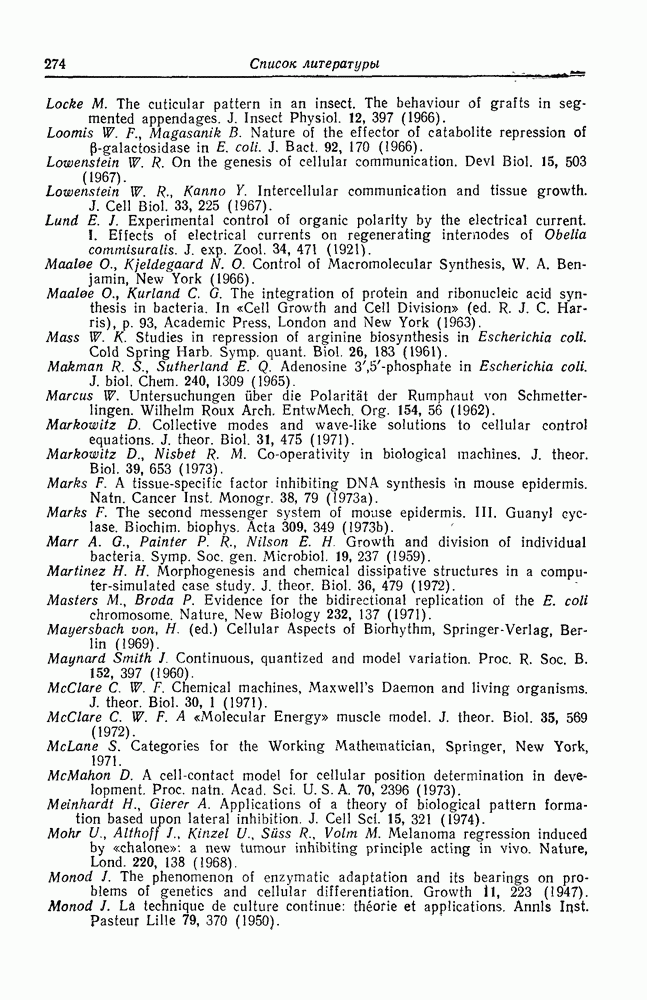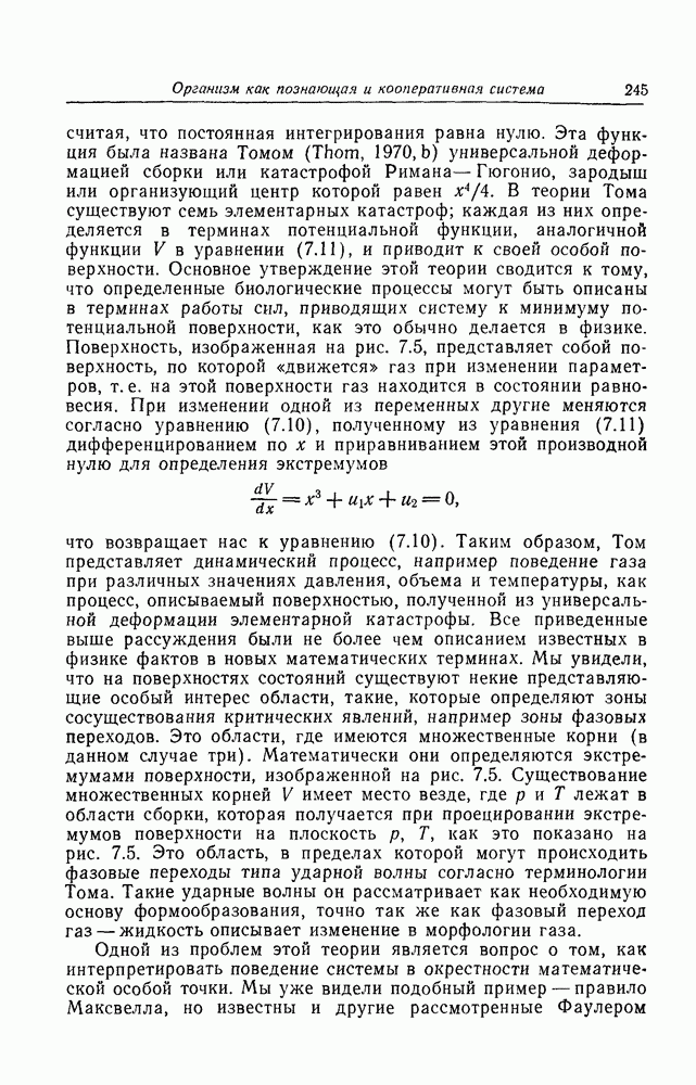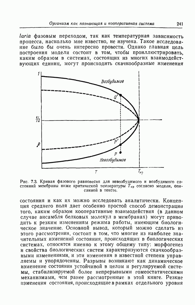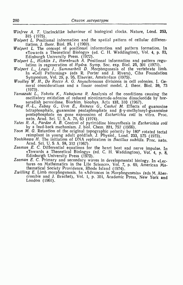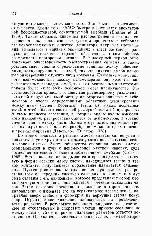 Рис. 3.7. Клеточный цикл эукариотов с ответвлением, ведущим к клеточной дифференцировке У схемы, представленной на рис. 3.7, имеется одна особенность, которая вводит в заблуждение и должна рассматриваться как недостаток: может показаться, что процесс клеточной дифференцировки и клеточный цикл работают по принципу «все или ничего», хотя на самом деле это не так. В течение эмбриогенеза, по мере того как происходят органогенез и клеточная дифференцировка, темп клеточных делений постепенно падает, но промежуточные состояния определенно существуют: частично дифференцированные клетки (миобласты, эритробласты, нейробласты и т. д.) продолжают делиться. Кроме того, четко различимы между собой линии стволовых клеток различных тканей органов у взрослых (тех органов, которые сохраняются в стационарном состоянии путем непрерывного возобновления клеток и дифференцировки, как, например кожа, печень, почка и т. д.), хотя их роль состоит в том, чтобы делиться со скоростью, определяемой некоторыми критериями, характеризующими потребности ткани или органа (используя язык теории управления). Хотя в таких системах клетки, которые в ответ на стимул к дифференцировке покидают стволовую популяцию, изменяют свое состояние, как правило, внезапно, нельзя считать, что этот процесс протекает строго по принципу «все или ничего». Чтобы передать гибкость связи между клеточным циклом и клеточной дифференцировкой, нужна гораздо более динамическая картина, чем та, которая дана на рис. 3.7. Теперь мне хотелось бы остановиться на некоторых исследованиях, дающих динамическую картину тканевой организации и в то же время допускающих построение и исследование модели тканевого гомеостаза с отрицательной обратной связью. Аналогично тому, как проблема управления репликацией ДНК привела нас к вопросу о том, каким образом клетки измеряют свои размеры, проблема управления клеточной дифференцировкой в ткани заставляет исследовать задачу поддержания ее пространственной организации. Это подводит нас к другому уровню биологической иерархии, характерному для многоклеточных. Динамически мы все еще работаем в пределах эпигенетической системы, хотя время теперь измеряется днями. Это происходит потому, что период клеточного цикла высших организмов обычно лежит в диапазоне 10-100 ч.