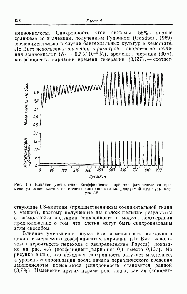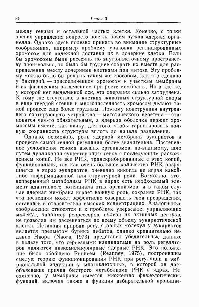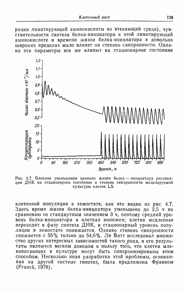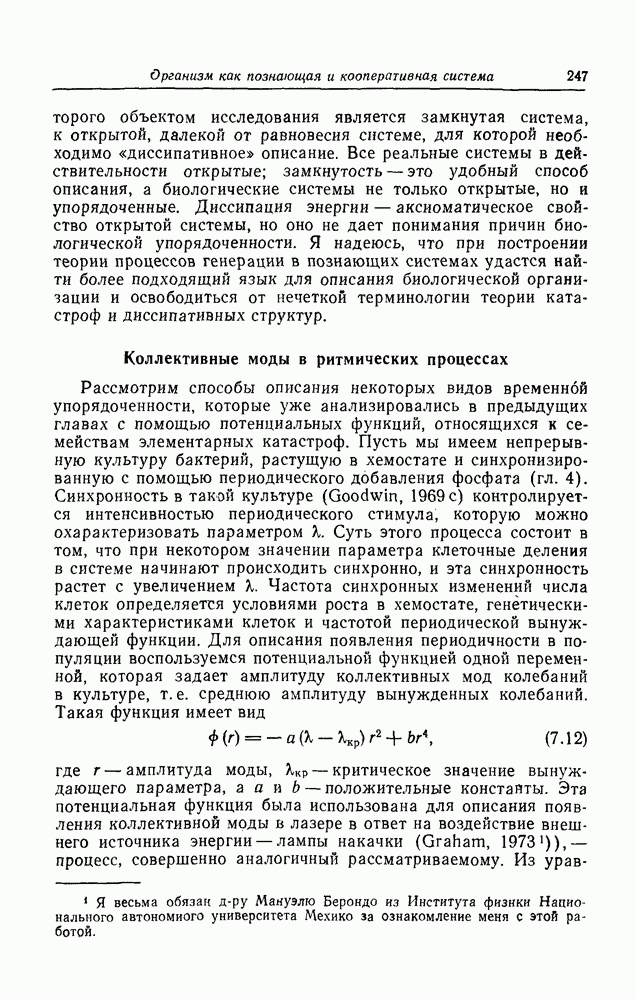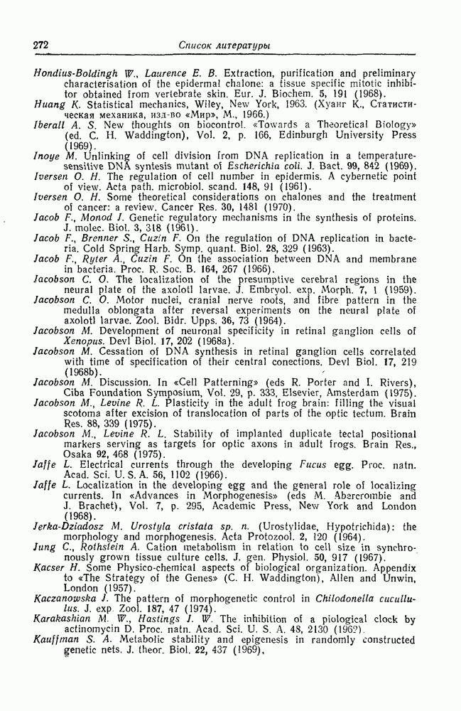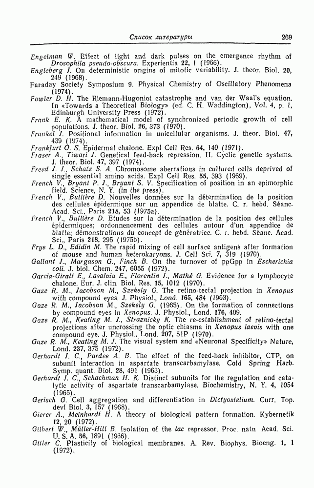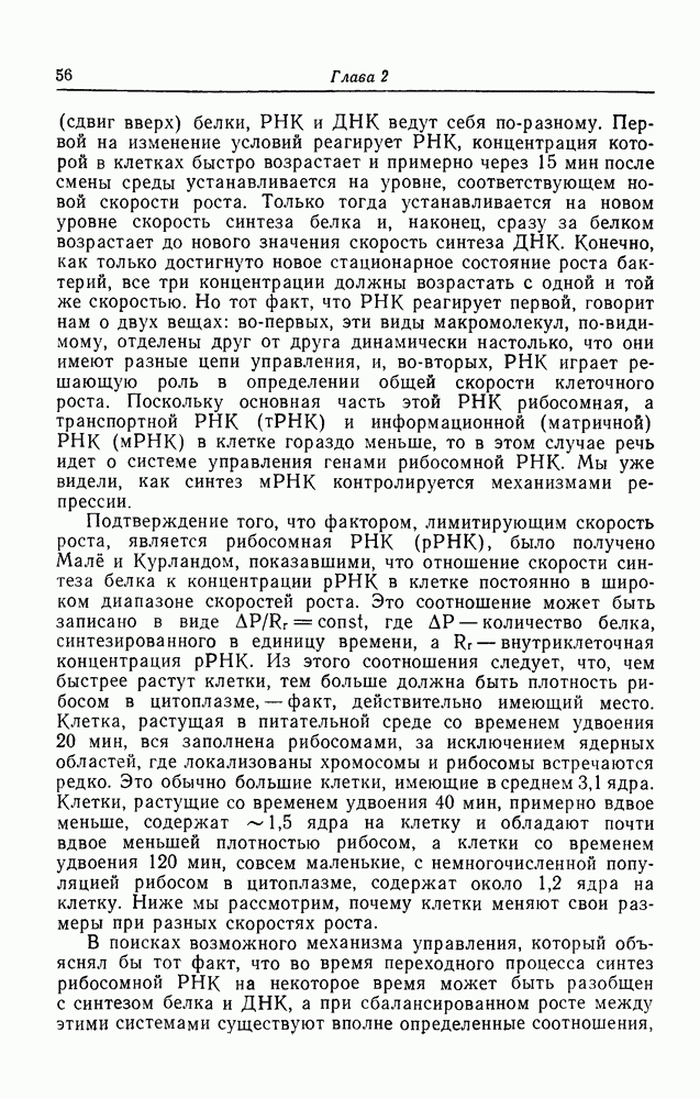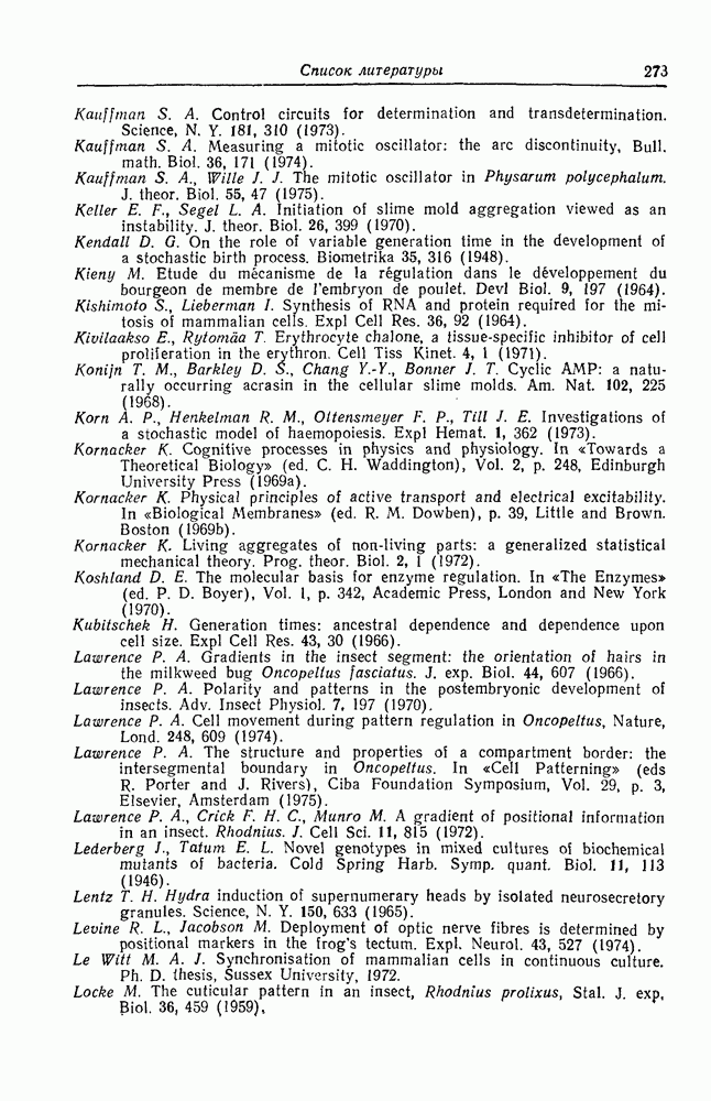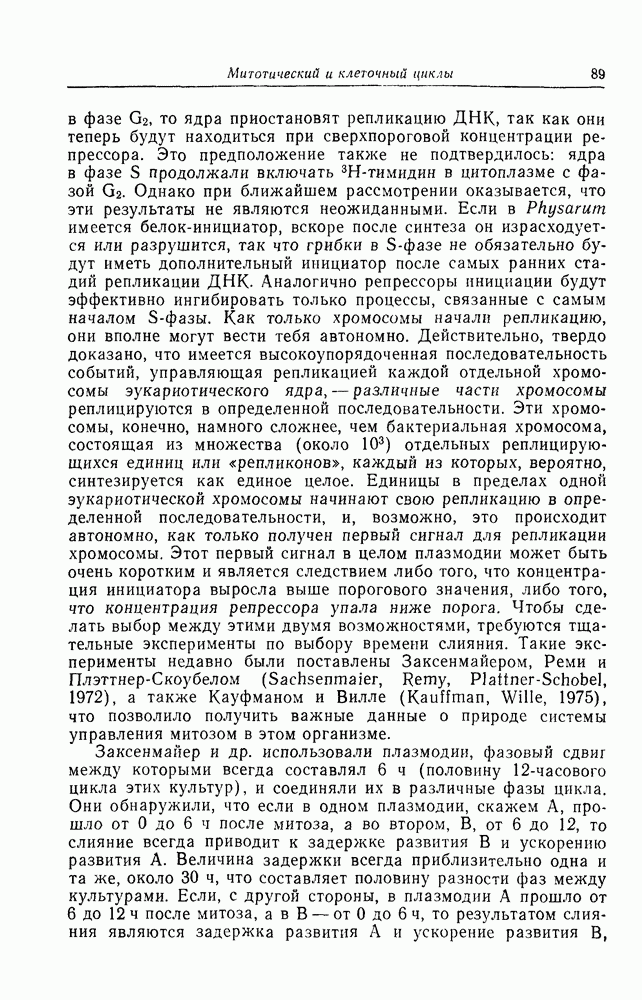 Рис. 3.7. Клеточный цикл эукариотов с ответвлением, ведущим к клеточной дифференцировке У схемы, представленной на рис. 3.7, имеется одна особенность, которая вводит в заблуждение и должна рассматриваться как недостаток: может показаться, что процесс клеточной дифференцировки и клеточный цикл работают по принципу «все или ничего», хотя на самом деле это не так. В течение эмбриогенеза, по мере того как происходят органогенез и клеточная дифференцировка, темп клеточных делений постепенно падает, но промежуточные состояния определенно существуют: частично дифференцированные клетки (миобласты, эритробласты, нейробласты и т. д.) продолжают делиться. Кроме того, четко различимы между собой линии стволовых клеток различных тканей органов у взрослых (тех органов, которые сохраняются в стационарном состоянии путем непрерывного возобновления клеток и дифференцировки, как, например кожа, печень, почка и т. д.), хотя их роль состоит в том, чтобы делиться со скоростью, определяемой некоторыми критериями, характеризующими потребности ткани или органа (используя язык теории управления). Хотя в таких системах клетки, которые в ответ на стимул к дифференцировке покидают стволовую популяцию, изменяют свое состояние, как правило, внезапно, нельзя считать, что этот процесс протекает строго по принципу «все или ничего». Чтобы передать гибкость связи между клеточным циклом и клеточной дифференцировкой, нужна гораздо более динамическая картина, чем та, которая дана на рис. 3.7. Теперь мне хотелось бы остановиться на некоторых исследованиях, дающих динамическую картину тканевой организации и в то же время допускающих построение и исследование модели тканевого гомеостаза с отрицательной обратной связью. Аналогично тому, как проблема управления репликацией ДНК привела нас к вопросу о том, каким образом клетки измеряют свои размеры, проблема управления клеточной дифференцировкой в ткани заставляет исследовать задачу поддержания ее пространственной организации. Это подводит нас к другому уровню биологической иерархии, характерному для многоклеточных. Динамически мы все еще работаем в пределах эпигенетической системы, хотя время теперь измеряется днями. Это происходит потому, что период клеточного цикла высших организмов обычно лежит в диапазоне 10-100 ч.