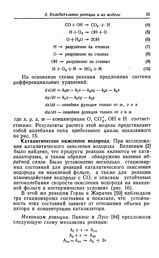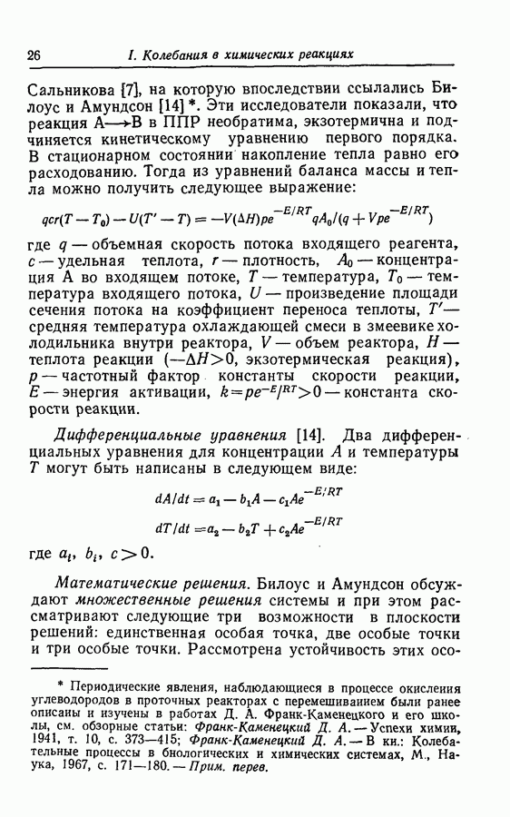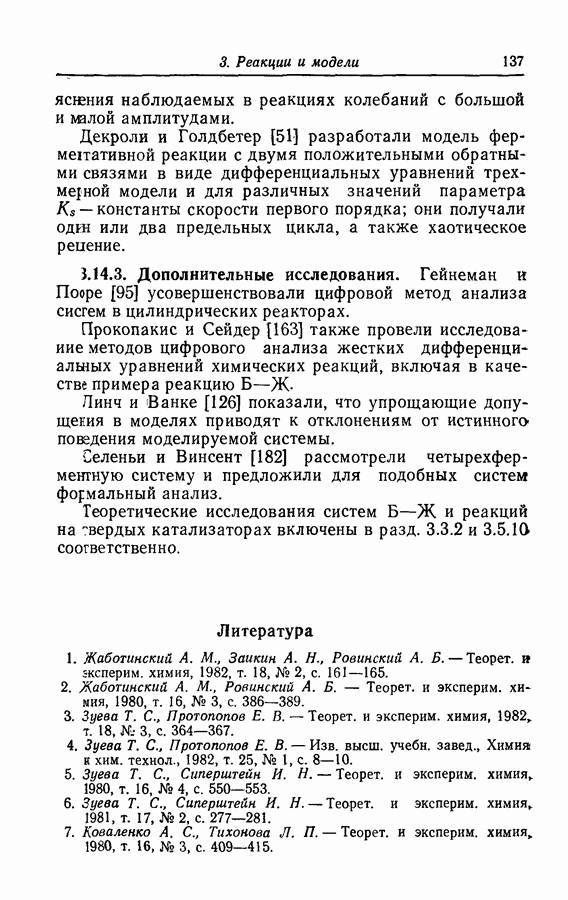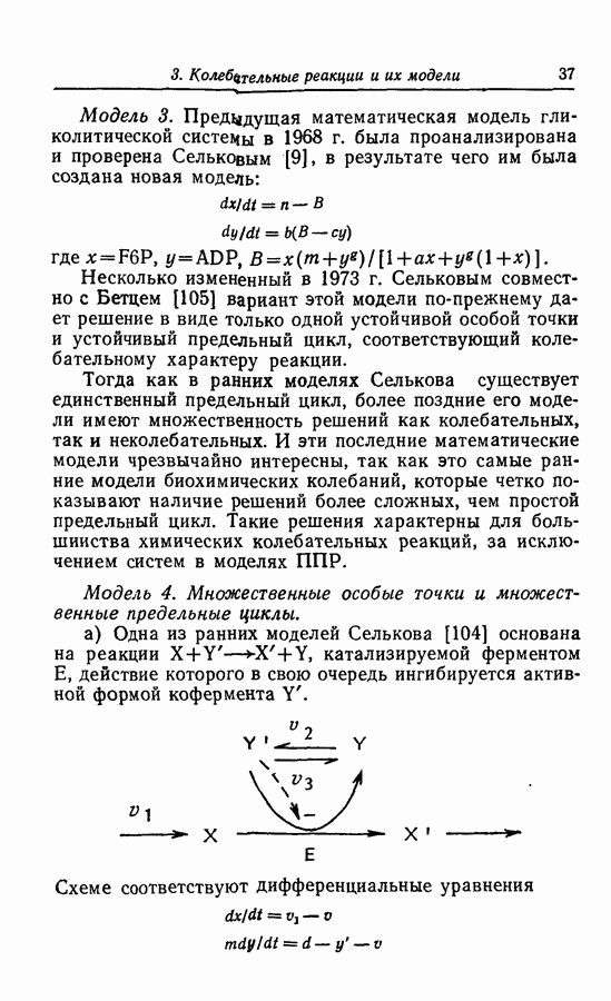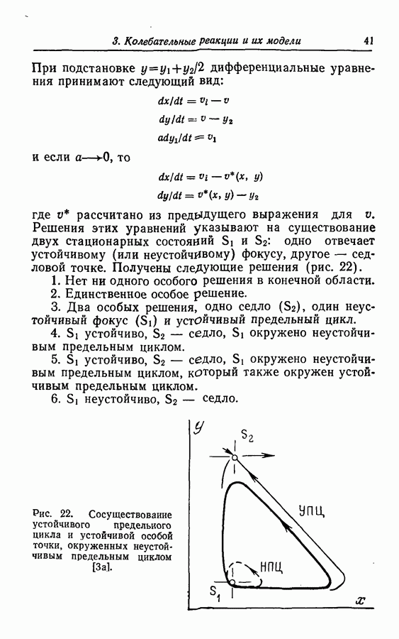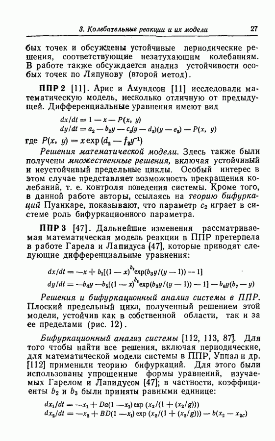 решения. Множественность устойчивых решений обсуждалась в работах Билоуса и Амундсона [14], Ариса и Амундсона [11] (см. разд. 3.4). Кроме того, множественные колебательные решения интенсивно изучались Сельковым и сотр. (разд. 3.6).