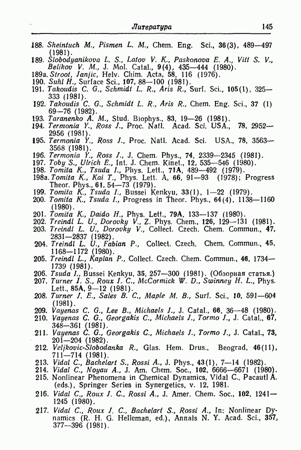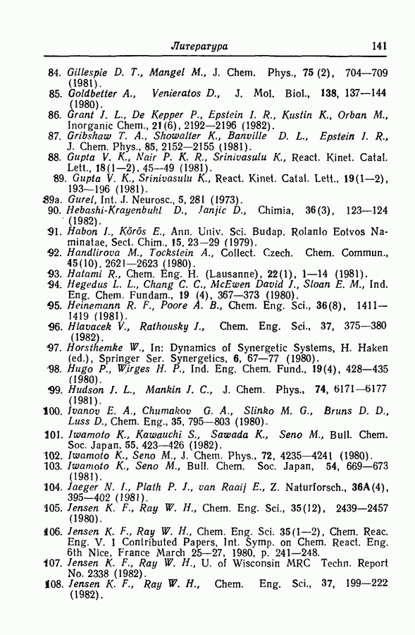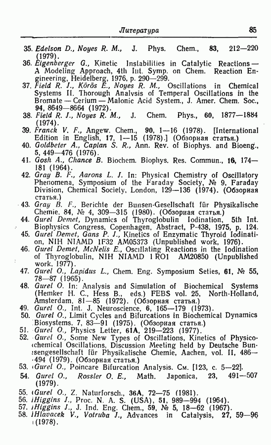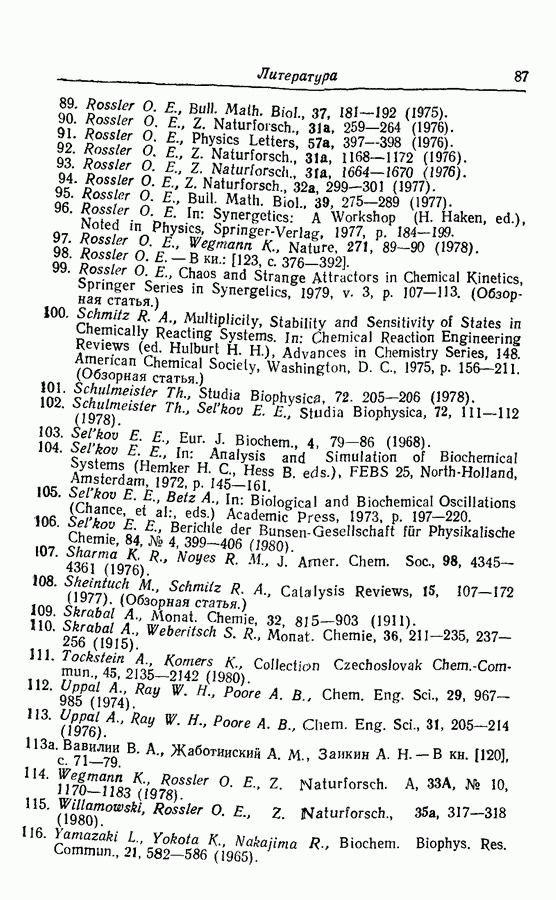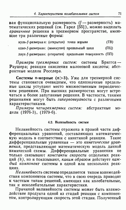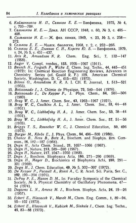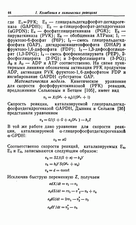 решения. Множественность устойчивых решений обсуждалась в работах Билоуса и Амундсона [14], Ариса и Амундсона [11] (см. разд. 3.4). Кроме того, множественные колебательные решения интенсивно изучались Сельковым и сотр. (разд. 3.6).