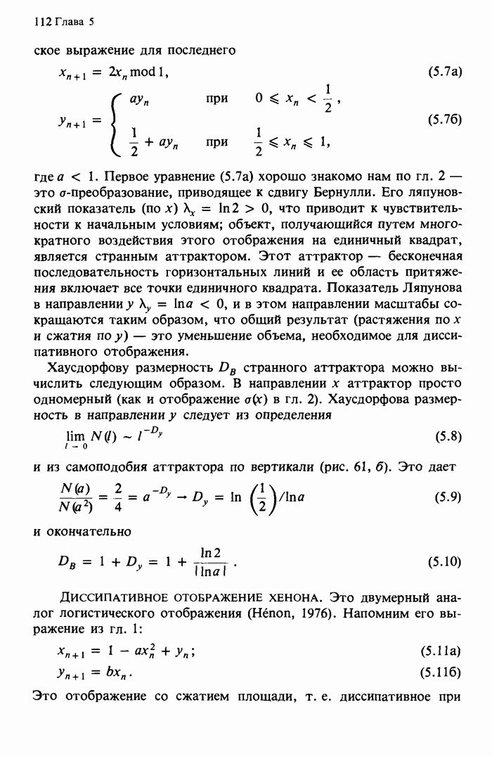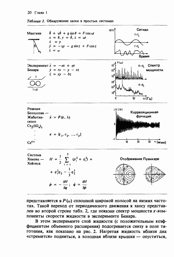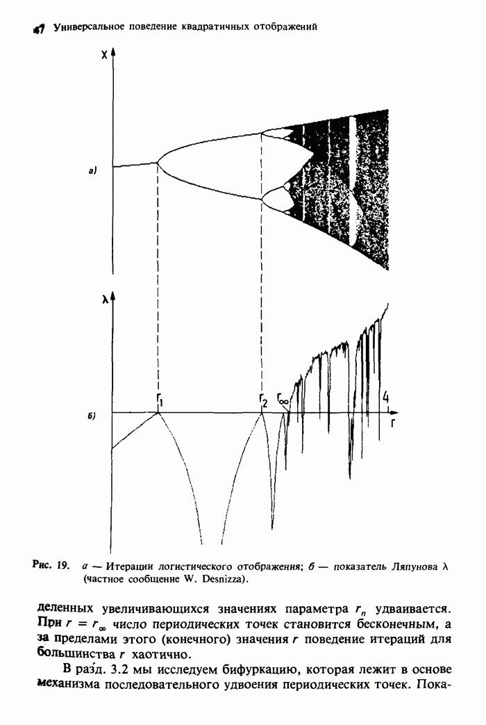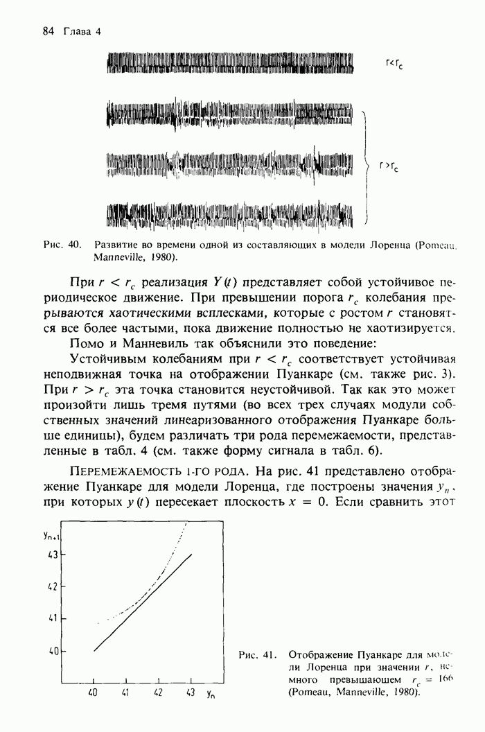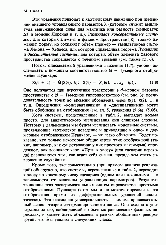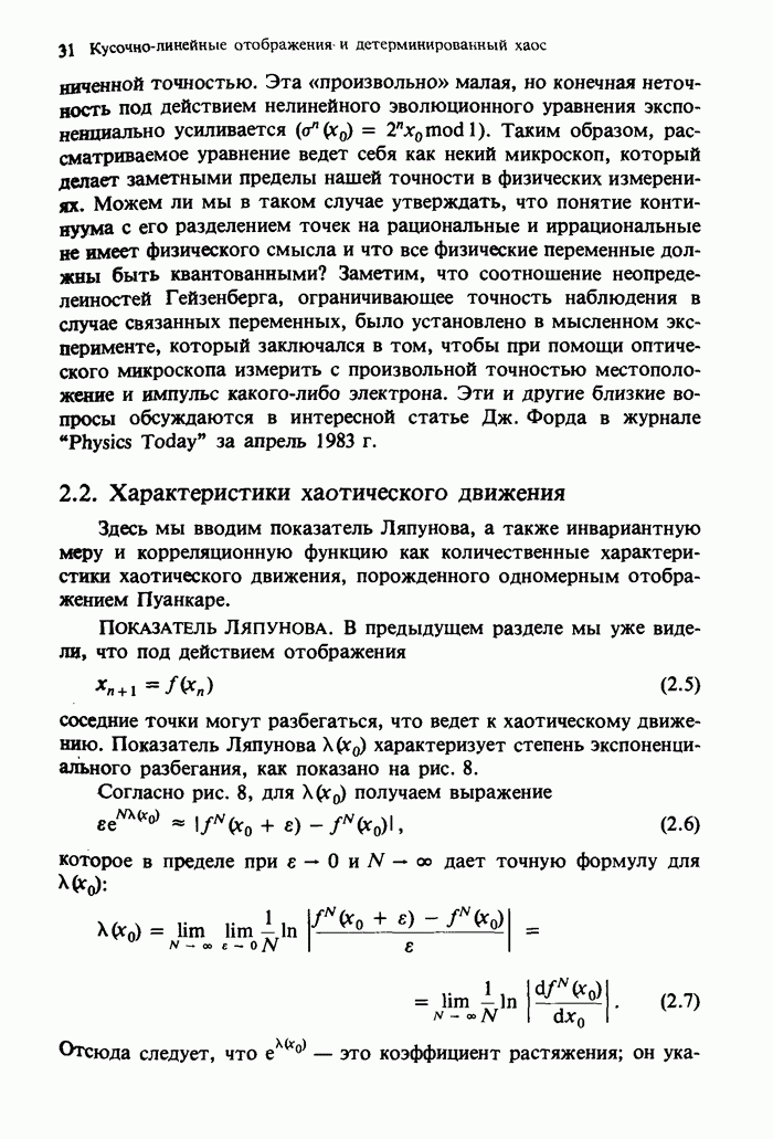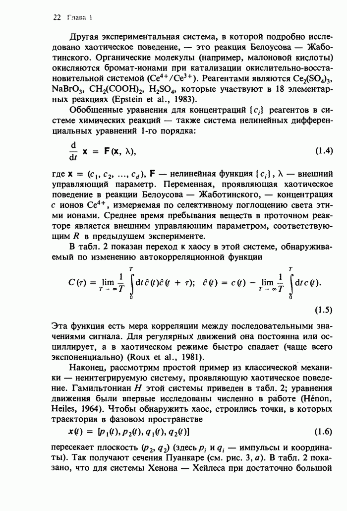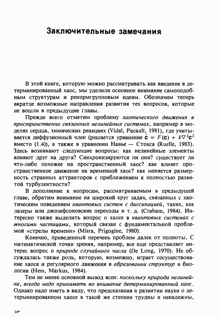 Предисловие редакторов переводаКнига Гейнца Шустера, профессора Института теоретической физики при Франкфуртском университете, чрезвычайно привлекательна для ознакомления с таким необычным для широкой аудитории предметом, как динамический хаос (или случайное поведение полностью детерминированных систем). Книга невелика по объему, достаточно информативна, изобретательно иллюстрирована и, наверное, займет достойное место среди уже имеющейся литературы по хаосу. Мы уверены, что сильные стороны книги читатель оценит сам. Здесь же нам представляется уместным хотя бы обозначить те ключевые идеи, которые позволили существенно продвинуться в понимании и описании сложного поведения детермированных сред по сравнению с тем состоянием, что отражено в книге. При этом будем иметь в виду, что Шустер обсуждает лишь «маломерный» динамический хаос — самый простой из того, что встречается в природе и технике и поддается описанию с помощью детерминированных моделей. Одной из наиболее ярких и важных проблем, непосредственно связанных с «многомерным» хаосом, является, конечно, турбулентность — нерегулярное поведение нелинейных сред или полей. Заметим сразу, что обсуждаемую в книге хаотическую динамику небольшого числа заданных в пространстве мод (или структур) можно отождествить с реальной динамикой нелинейного поля (скорости или давления в гидродинамическом течении, электромагнитного поля в плазме и т. п.) лишь в узком интервале значений параметров. Более точно, при относительно малом превышении порога неустойчивости, или, как часто говорят, при малой надкритичности. С ростом надкритичности, например числа Рейнольдса, число степеней свободы среды (или поля), эффективно вовлекаемых в хаотическое движение, в общем случае увеличивается, корреляции между ними разрушаются и хаос становится все более сложным. Этому соответствует увеличение размерности странного аттрактора, вложенного в фазовое пространство течения. Один из наиболее принципиальных вопросов здесь — связь числа вовлекаемых в хаотическую динамику поля коллективных возбуждений (мод) и размерности аттрактора с картиной пространственного распределения поля. Как показали недавние физические и компьютерные эксперименты [1—4], по мере увеличения размерности аттрактора пространственная картина поля (или гидродинамического течения) все более усложняется. Например, если говорить о термоконвекции в горизонтальном слое, то по мере увеличения числа Рэлея регулярная решетка конвективных структур — ячеек Бенара — «плавится», появляются дефекты, несоизмеримая модуляция и, наконец, пространственно-временной хаос, который и есть собственно турбулентность. Если маломерный хаос характеризуется сложным временным, но весьма простым пространственным поведением, отвечающим регулярной картине поля, то в турбулентном режиме сложным будет и временное, и пространственное поведение. Очень важен совсем недавно осознанный факт, что, подобно тому как случайность во времени может быть не связана с действием внешних шумов, случайное распределение поля в пространстве может быть следствием лишь детерминированных законов, управляющих изменением переменных вдоль координат, и весьма слабо зависеть, например, от случайных неоднородностей. Сейчас уже в некоторой степени ясны и пути (сц