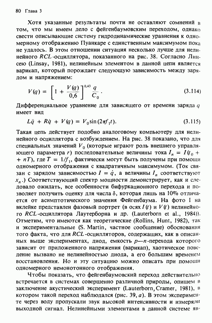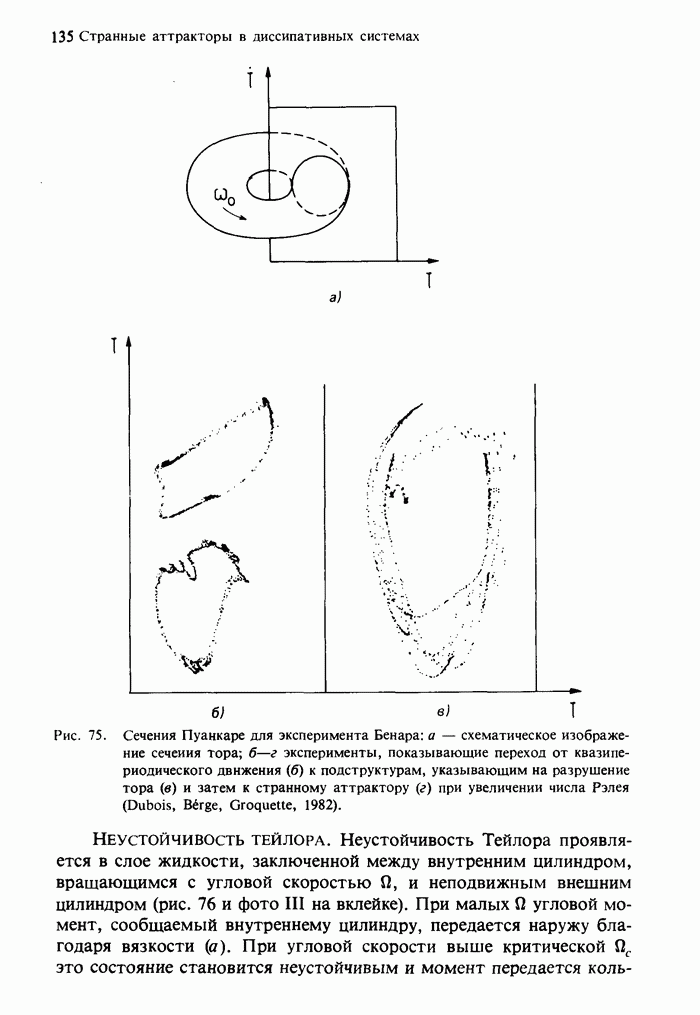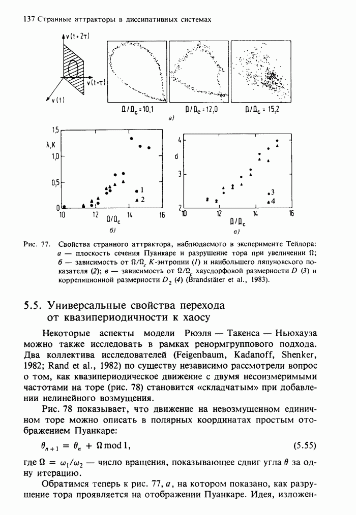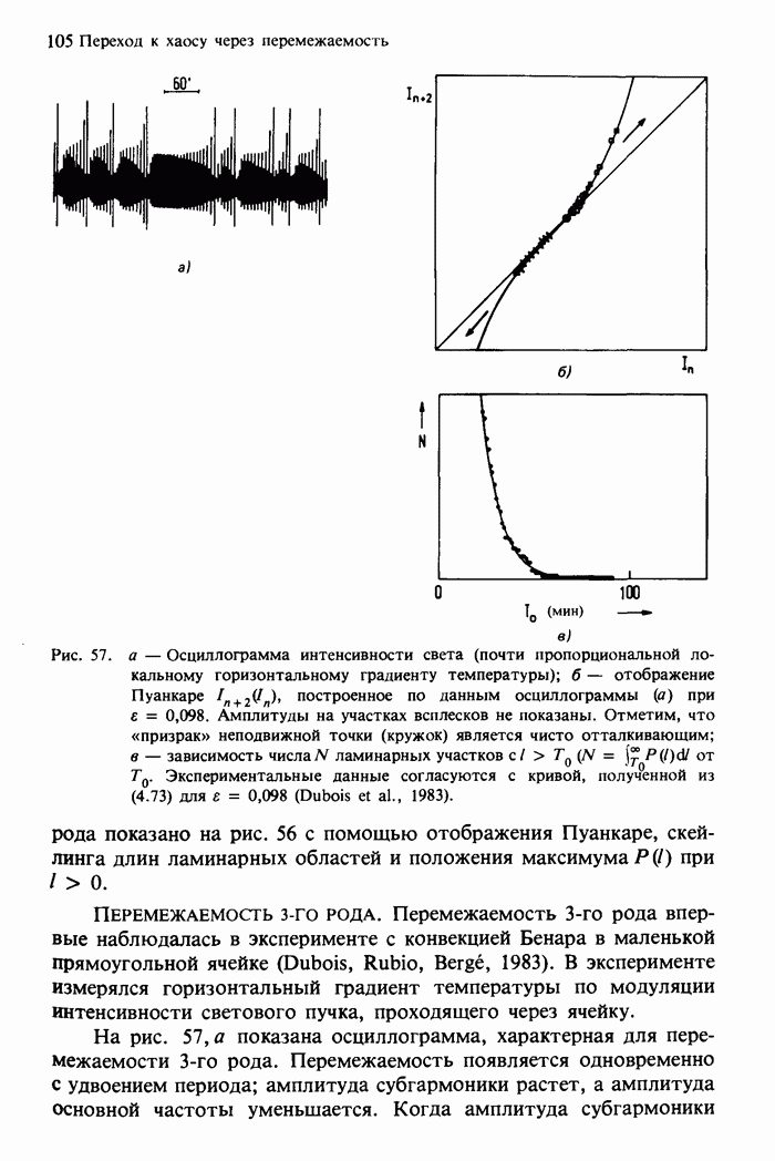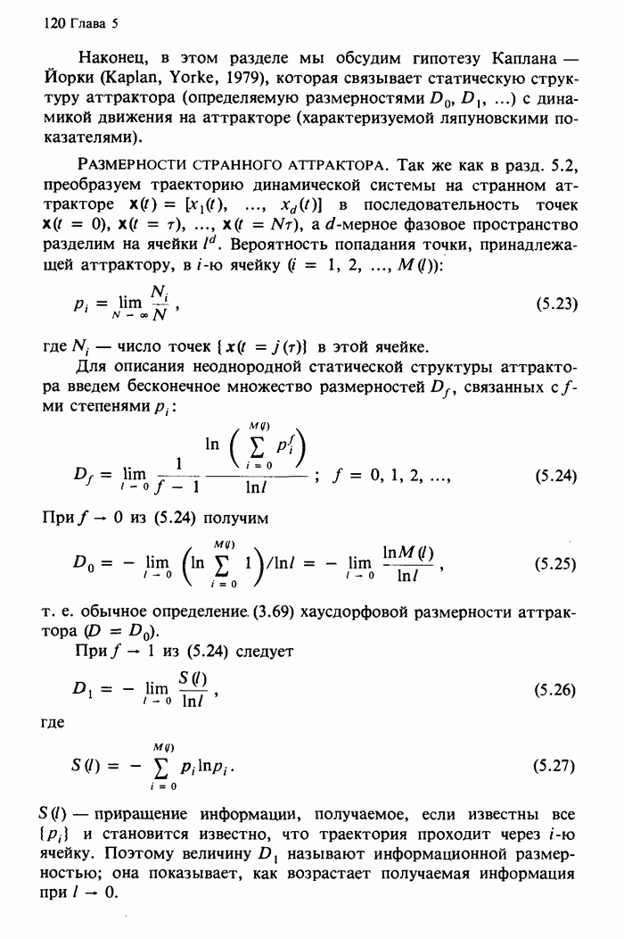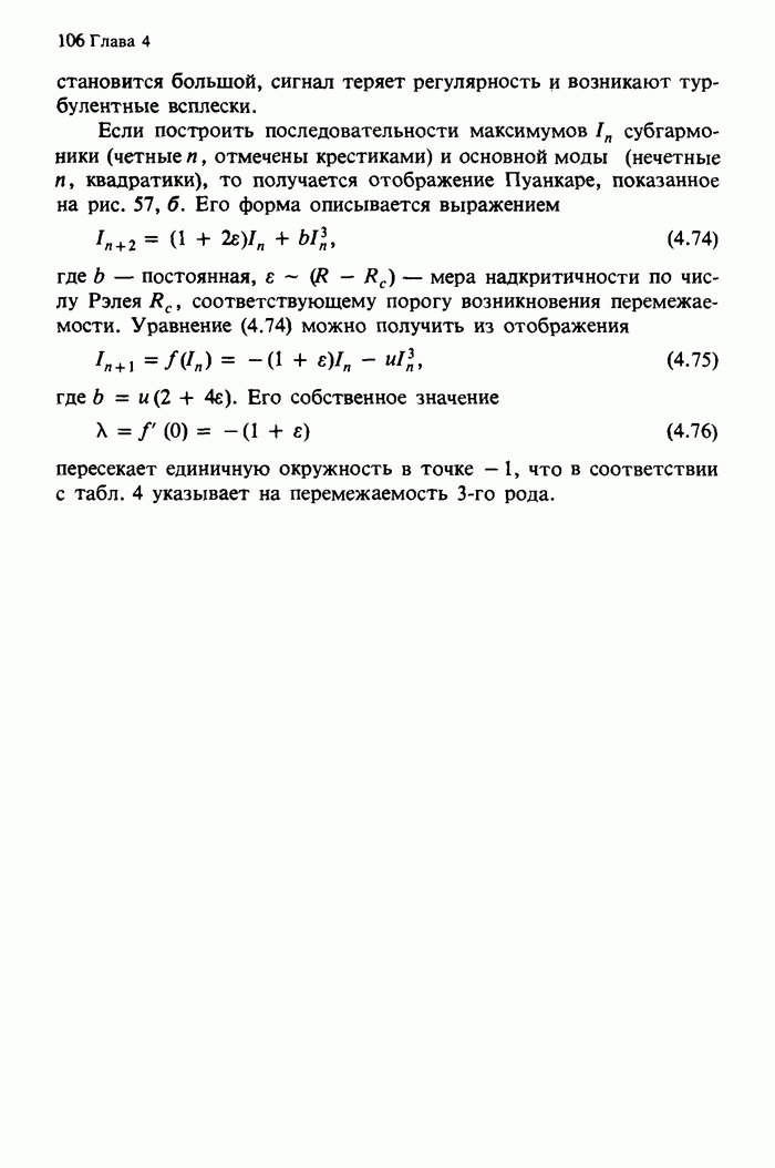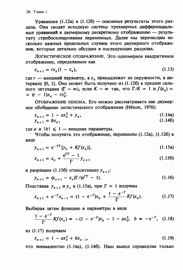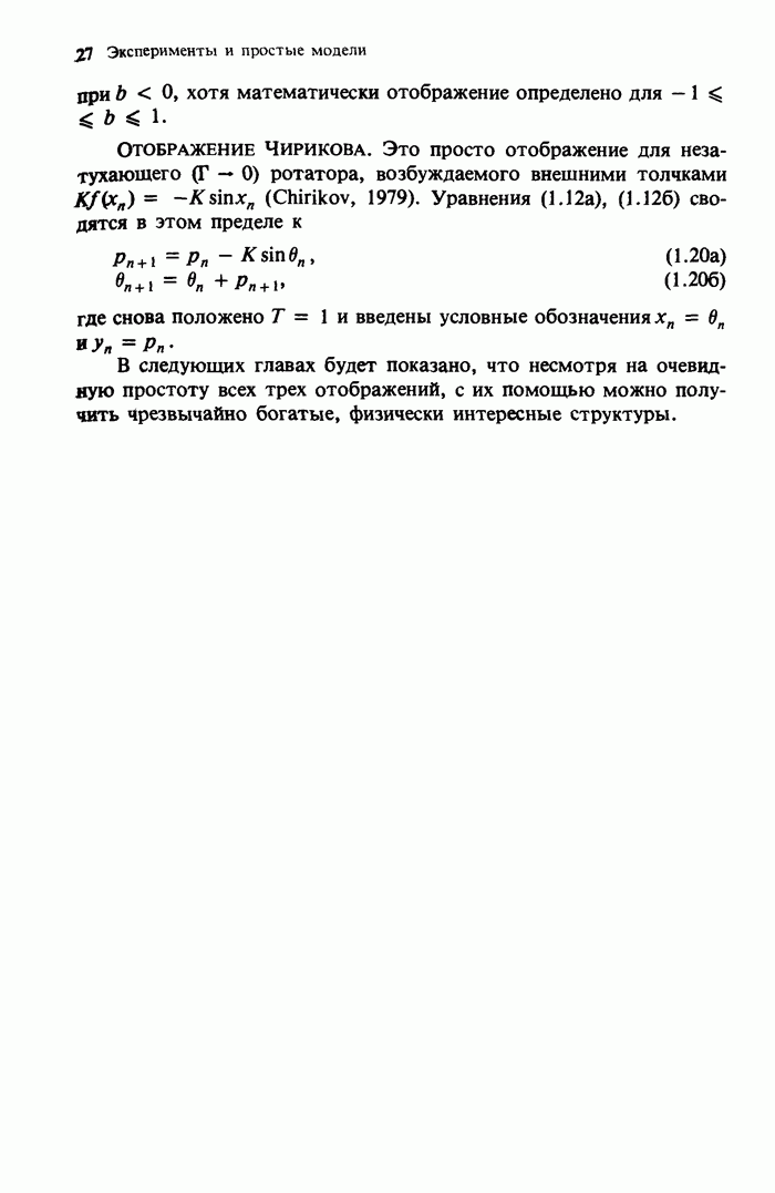 Предисловие редакторов переводаКнига Гейнца Шустера, профессора Института теоретической физики при Франкфуртском университете, чрезвычайно привлекательна для ознакомления с таким необычным для широкой аудитории предметом, как динамический хаос (или случайное поведение полностью детерминированных систем). Книга невелика по объему, достаточно информативна, изобретательно иллюстрирована и, наверное, займет достойное место среди уже имеющейся литературы по хаосу. Мы уверены, что сильные стороны книги читатель оценит сам. Здесь же нам представляется уместным хотя бы обозначить те ключевые идеи, которые позволили существенно продвинуться в понимании и описании сложного поведения детермированных сред по сравнению с тем состоянием, что отражено в книге. При этом будем иметь в виду, что Шустер обсуждает лишь «маломерный» динамический хаос — самый простой из того, что встречается в природе и технике и поддается описанию с помощью детерминированных моделей. Одной из наиболее ярких и важных проблем, непосредственно связанных с «многомерным» хаосом, является, конечно, турбулентность — нерегулярное поведение нелинейных сред или полей. Заметим сразу, что обсуждаемую в книге хаотическую динамику небольшого числа заданных в пространстве мод (или структур) можно отождествить с реальной динамикой нелинейного поля (скорости или давления в гидродинамическом течении, электромагнитного поля в плазме и т. п.) лишь в узком интервале значений параметров. Более точно, при относительно малом превышении порога неустойчивости, или, как часто говорят, при малой надкритичности. С ростом надкритичности, например числа Рейнольдса, число степеней свободы среды (или поля), эффективно вовлекаемых в хаотическое движение, в общем случае увеличивается, корреляции между ними разрушаются и хаос становится все более сложным. Этому соответствует увеличение размерности странного аттрактора, вложенного в фазовое пространство течения. Один из наиболее принципиальных вопросов здесь — связь числа вовлекаемых в хаотическую динамику поля коллективных возбуждений (мод) и размерности аттрактора с картиной пространственного распределения поля. Как показали недавние физические и компьютерные эксперименты [1—4], по мере увеличения размерности аттрактора пространственная картина поля (или гидродинамического течения) все более усложняется. Например, если говорить о термоконвекции в горизонтальном слое, то по мере увеличения числа Рэлея регулярная решетка конвективных структур — ячеек Бенара — «плавится», появляются дефекты, несоизмеримая модуляция и, наконец, пространственно-временной хаос, который и есть собственно турбулентность. Если маломерный хаос характеризуется сложным временным, но весьма простым пространственным поведением, отвечающим регулярной картине поля, то в турбулентном режиме сложным будет и временное, и пространственное поведение. Очень важен совсем недавно осознанный факт, что, подобно тому как случайность во времени может быть не связана с действием внешних шумов, случайное распределение поля в пространстве может быть следствием лишь детерминированных законов, управляющих изменением переменных вдоль координат, и весьма слабо зависеть, например, от случайных неоднородностей. Сейчас уже в некоторой степени ясны и пути (сц