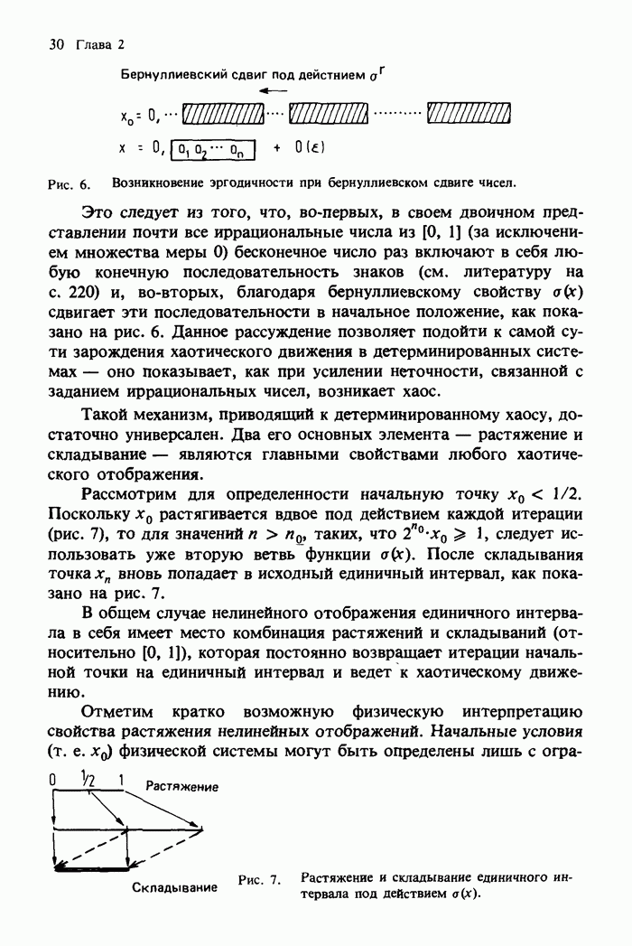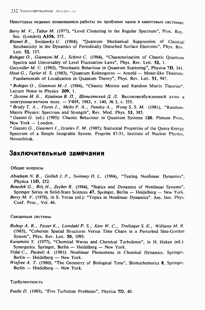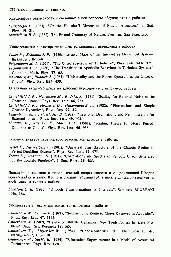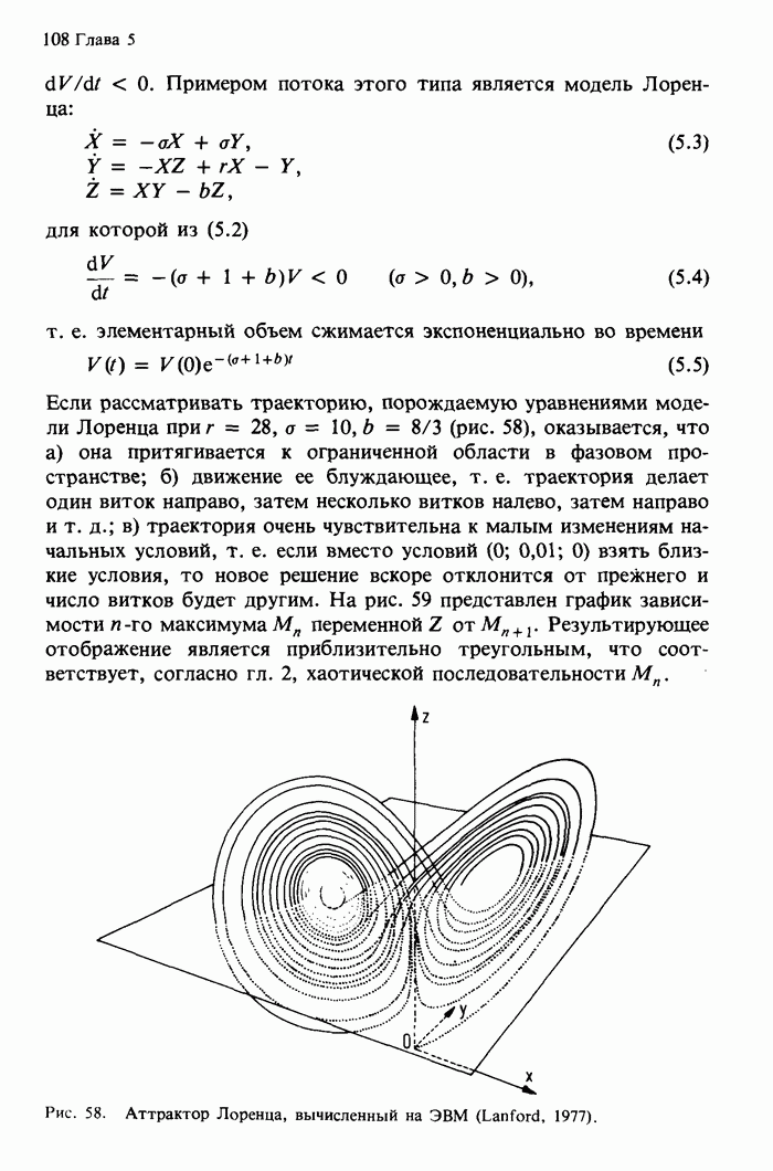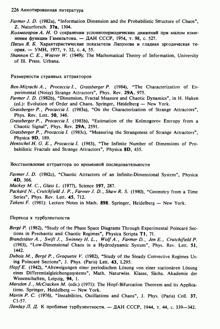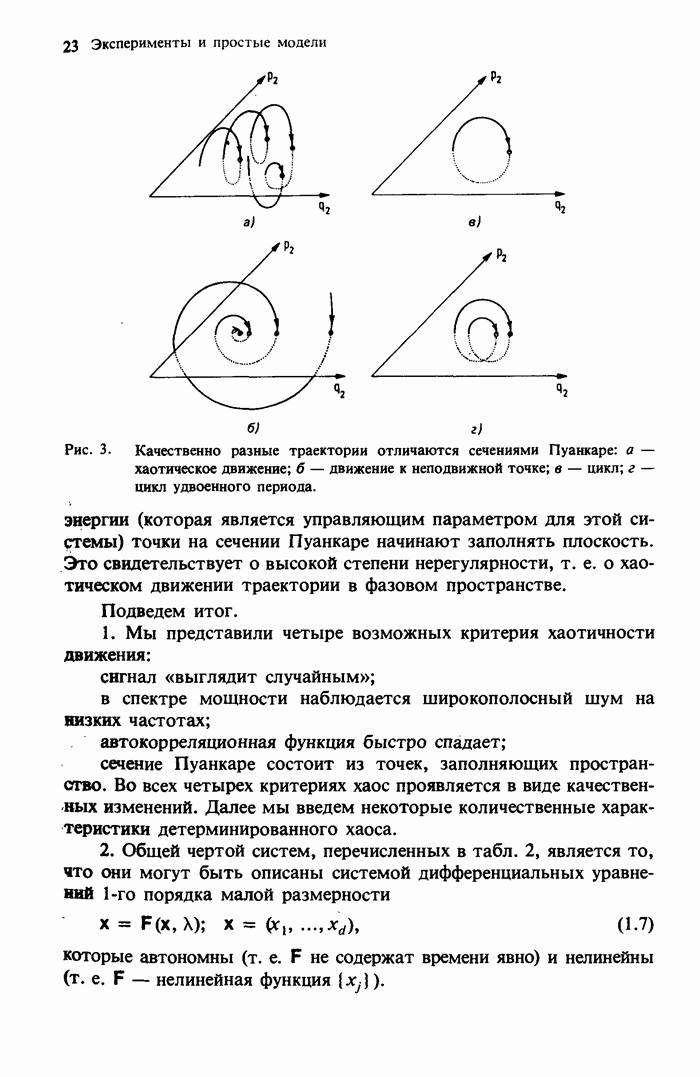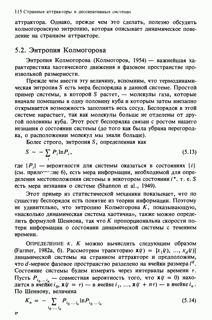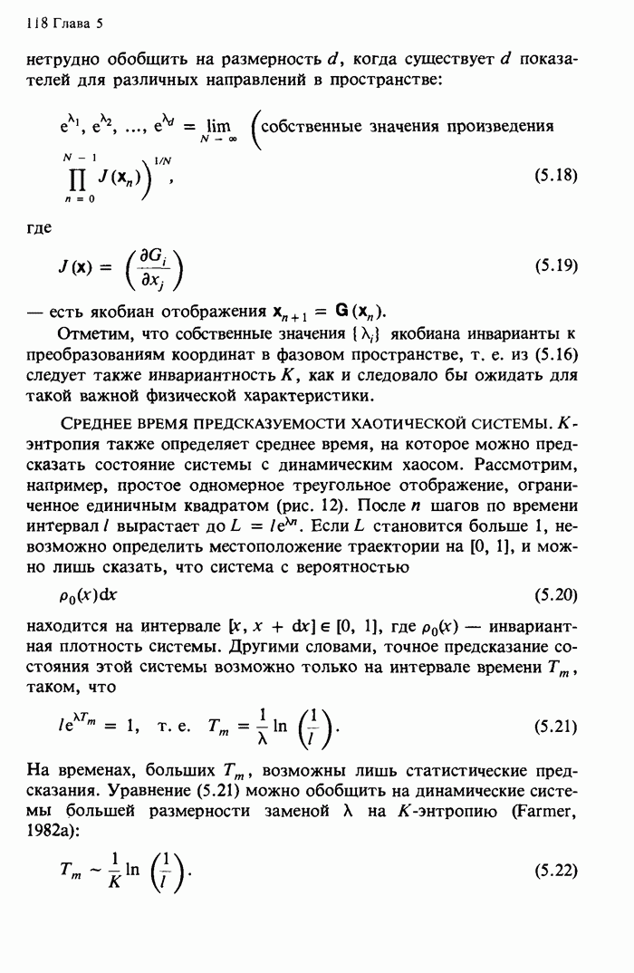 Предисловие редакторов переводаКнига Гейнца Шустера, профессора Института теоретической физики при Франкфуртском университете, чрезвычайно привлекательна для ознакомления с таким необычным для широкой аудитории предметом, как динамический хаос (или случайное поведение полностью детерминированных систем). Книга невелика по объему, достаточно информативна, изобретательно иллюстрирована и, наверное, займет достойное место среди уже имеющейся литературы по хаосу. Мы уверены, что сильные стороны книги читатель оценит сам. Здесь же нам представляется уместным хотя бы обозначить те ключевые идеи, которые позволили существенно продвинуться в понимании и описании сложного поведения детермированных сред по сравнению с тем состоянием, что отражено в книге. При этом будем иметь в виду, что Шустер обсуждает лишь «маломерный» динамический хаос — самый простой из того, что встречается в природе и технике и поддается описанию с помощью детерминированных моделей. Одной из наиболее ярких и важных проблем, непосредственно связанных с «многомерным» хаосом, является, конечно, турбулентность — нерегулярное поведение нелинейных сред или полей. Заметим сразу, что обсуждаемую в книге хаотическую динамику небольшого числа заданных в пространстве мод (или структур) можно отождествить с реальной динамикой нелинейного поля (скорости или давления в гидродинамическом течении, электромагнитного поля в плазме и т. п.) лишь в узком интервале значений параметров. Более точно, при относительно малом превышении порога неустойчивости, или, как часто говорят, при малой надкритичности. С ростом надкритичности, например числа Рейнольдса, число степеней свободы среды (или поля), эффективно вовлекаемых в хаотическое движение, в общем случае увеличивается, корреляции между ними разрушаются и хаос становится все более сложным. Этому соответствует увеличение размерности странного аттрактора, вложенного в фазовое пространство течения. Один из наиболее принципиальных вопросов здесь — связь числа вовлекаемых в хаотическую динамику поля коллективных возбуждений (мод) и размерности аттрактора с картиной пространственного распределения поля. Как показали недавние физические и компьютерные эксперименты [1—4], по мере увеличения размерности аттрактора пространственная картина поля (или гидродинамического течения) все более усложняется. Например, если говорить о термоконвекции в горизонтальном слое, то по мере увеличения числа Рэлея регулярная решетка конвективных структур — ячеек Бенара — «плавится», появляются дефекты, несоизмеримая модуляция и, наконец, пространственно-временной хаос, который и есть собственно турбулентность. Если маломерный хаос характеризуется сложным временным, но весьма простым пространственным поведением, отвечающим регулярной картине поля, то в турбулентном режиме сложным будет и временное, и пространственное поведение. Очень важен совсем недавно осознанный факт, что, подобно тому как случайность во времени может быть не связана с действием внешних шумов, случайное распределение поля в пространстве может быть следствием лишь детерминированных законов, управляющих изменением переменных вдоль координат, и весьма слабо зависеть, например, от случайных неоднородностей. Сейчас уже в некоторой степени ясны и пути (сц