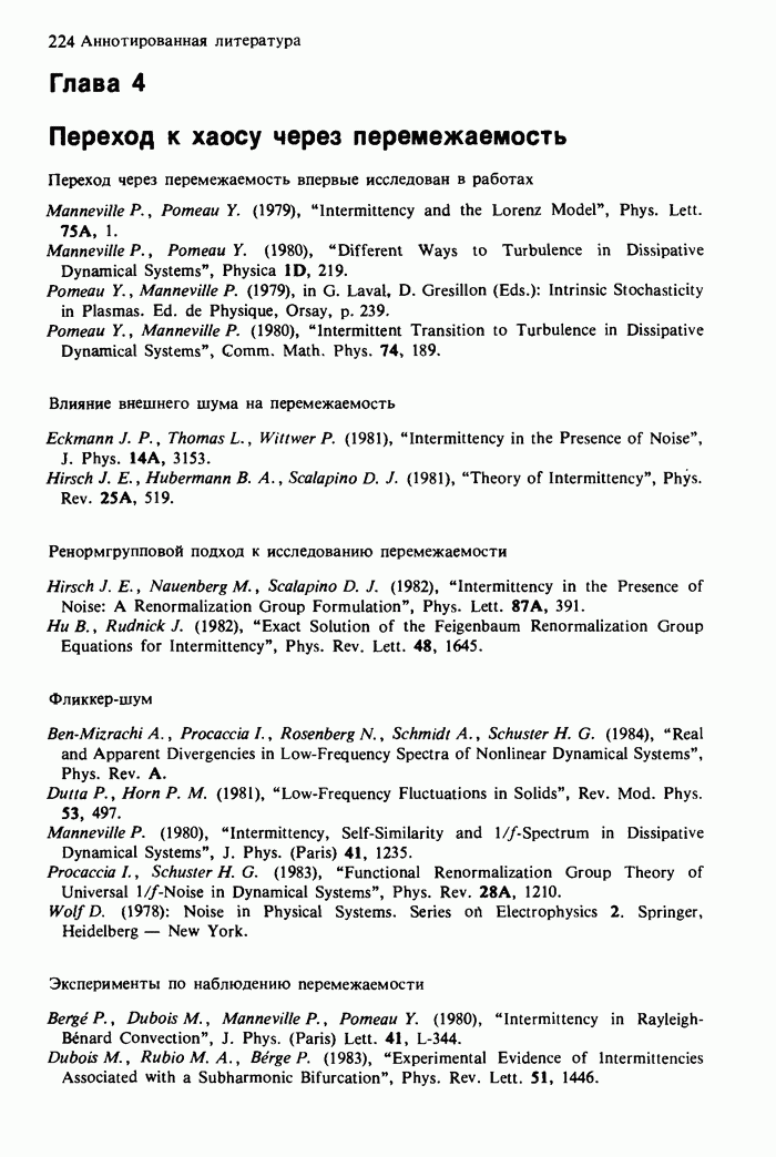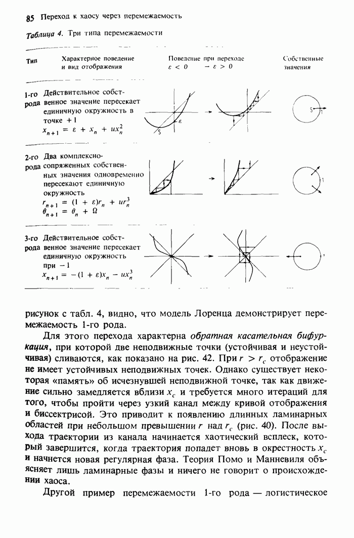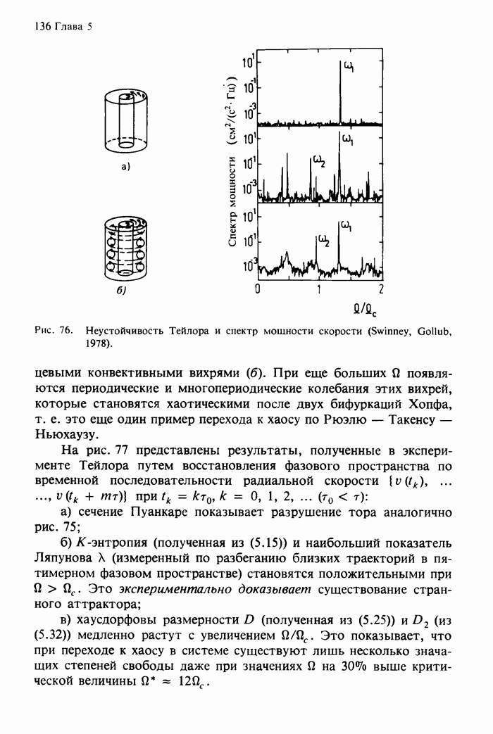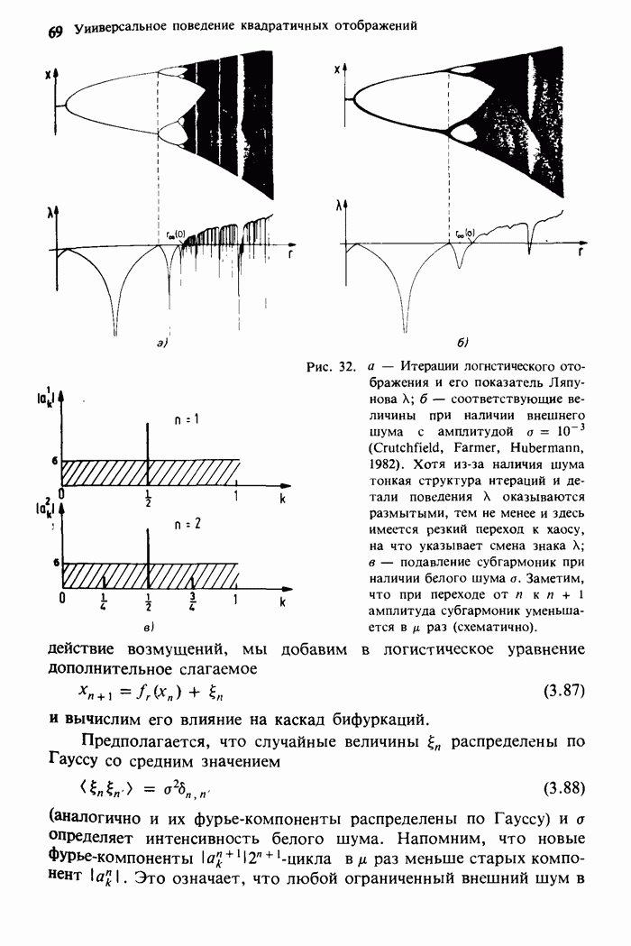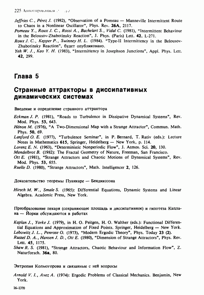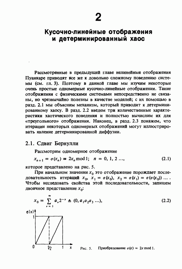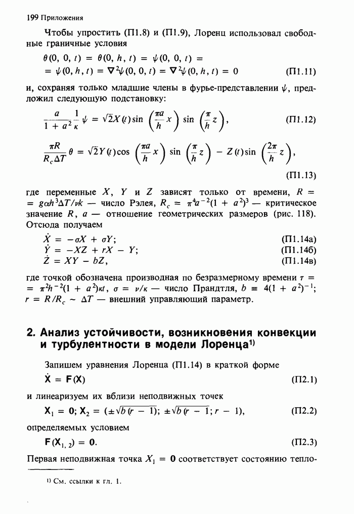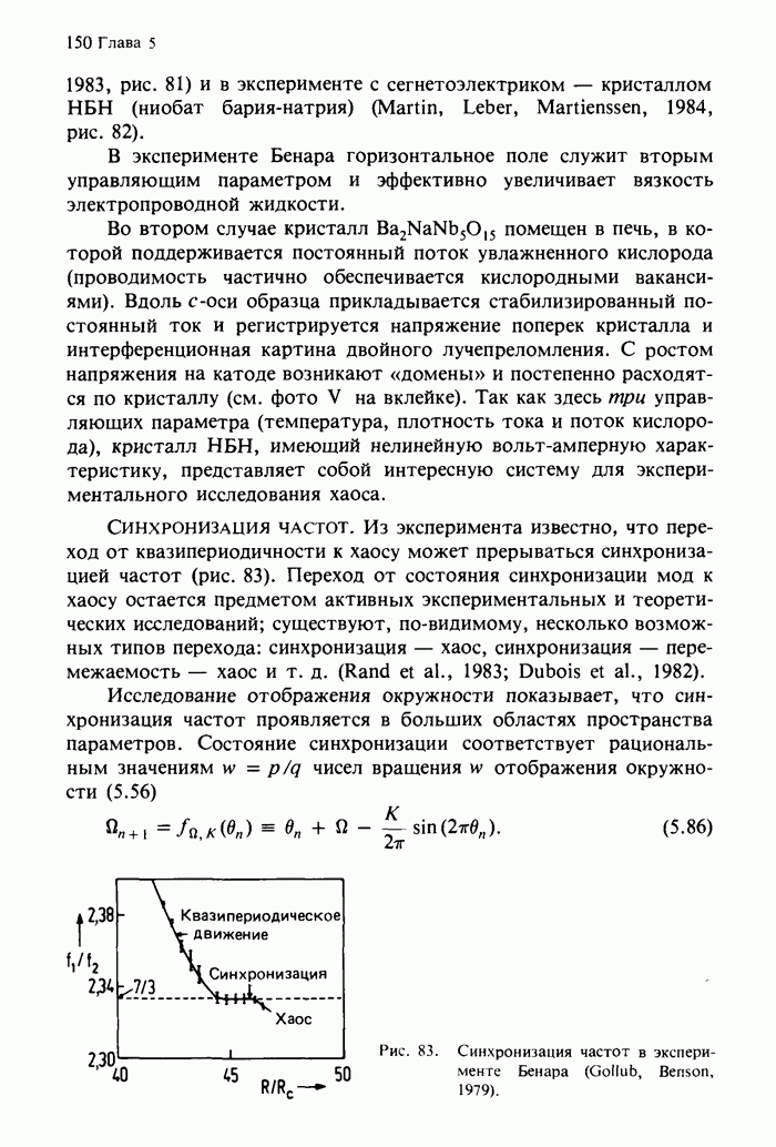 Предисловие редакторов переводаКнига Гейнца Шустера, профессора Института теоретической физики при Франкфуртском университете, чрезвычайно привлекательна для ознакомления с таким необычным для широкой аудитории предметом, как динамический хаос (или случайное поведение полностью детерминированных систем). Книга невелика по объему, достаточно информативна, изобретательно иллюстрирована и, наверное, займет достойное место среди уже имеющейся литературы по хаосу. Мы уверены, что сильные стороны книги читатель оценит сам. Здесь же нам представляется уместным хотя бы обозначить те ключевые идеи, которые позволили существенно продвинуться в понимании и описании сложного поведения детермированных сред по сравнению с тем состоянием, что отражено в книге. При этом будем иметь в виду, что Шустер обсуждает лишь «маломерный» динамический хаос — самый простой из того, что встречается в природе и технике и поддается описанию с помощью детерминированных моделей. Одной из наиболее ярких и важных проблем, непосредственно связанных с «многомерным» хаосом, является, конечно, турбулентность — нерегулярное поведение нелинейных сред или полей. Заметим сразу, что обсуждаемую в книге хаотическую динамику небольшого числа заданных в пространстве мод (или структур) можно отождествить с реальной динамикой нелинейного поля (скорости или давления в гидродинамическом течении, электромагнитного поля в плазме и т. п.) лишь в узком интервале значений параметров. Более точно, при относительно малом превышении порога неустойчивости, или, как часто говорят, при малой надкритичности. С ростом надкритичности, например числа Рейнольдса, число степеней свободы среды (или поля), эффективно вовлекаемых в хаотическое движение, в общем случае увеличивается, корреляции между ними разрушаются и хаос становится все более сложным. Этому соответствует увеличение размерности странного аттрактора, вложенного в фазовое пространство течения. Один из наиболее принципиальных вопросов здесь — связь числа вовлекаемых в хаотическую динамику поля коллективных возбуждений (мод) и размерности аттрактора с картиной пространственного распределения поля. Как показали недавние физические и компьютерные эксперименты [1—4], по мере увеличения размерности аттрактора пространственная картина поля (или гидродинамического течения) все более усложняется. Например, если говорить о термоконвекции в горизонтальном слое, то по мере увеличения числа Рэлея регулярная решетка конвективных структур — ячеек Бенара — «плавится», появляются дефекты, несоизмеримая модуляция и, наконец, пространственно-временной хаос, который и есть собственно турбулентность. Если маломерный хаос характеризуется сложным временным, но весьма простым пространственным поведением, отвечающим регулярной картине поля, то в турбулентном режиме сложным будет и временное, и пространственное поведение. Очень важен совсем недавно осознанный факт, что, подобно тому как случайность во времени может быть не связана с действием внешних шумов, случайное распределение поля в пространстве может быть следствием лишь детерминированных законов, управляющих изменением переменных вдоль координат, и весьма слабо зависеть, например, от случайных неоднородностей. Сейчас уже в некоторой степени ясны и пути (сц