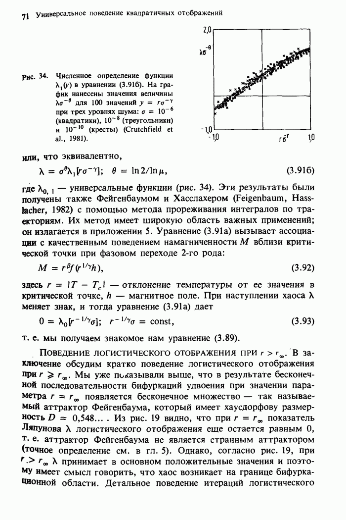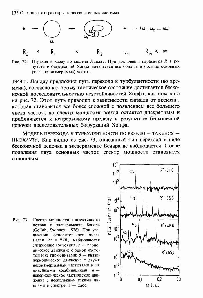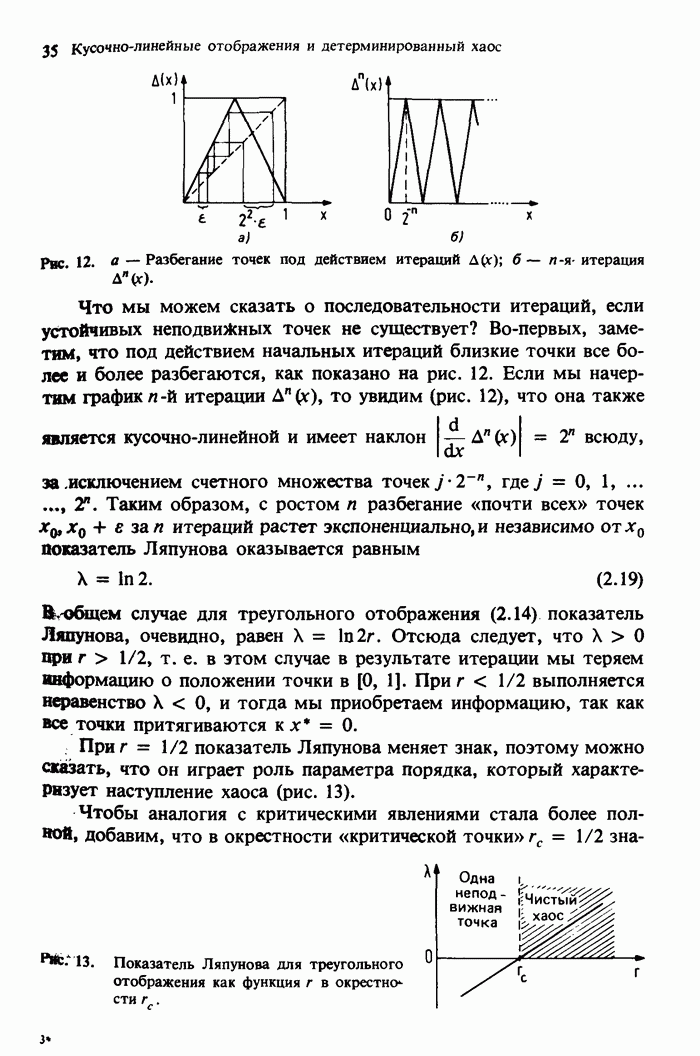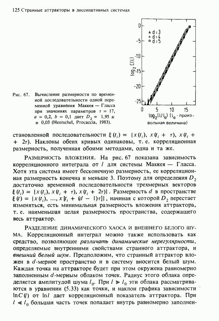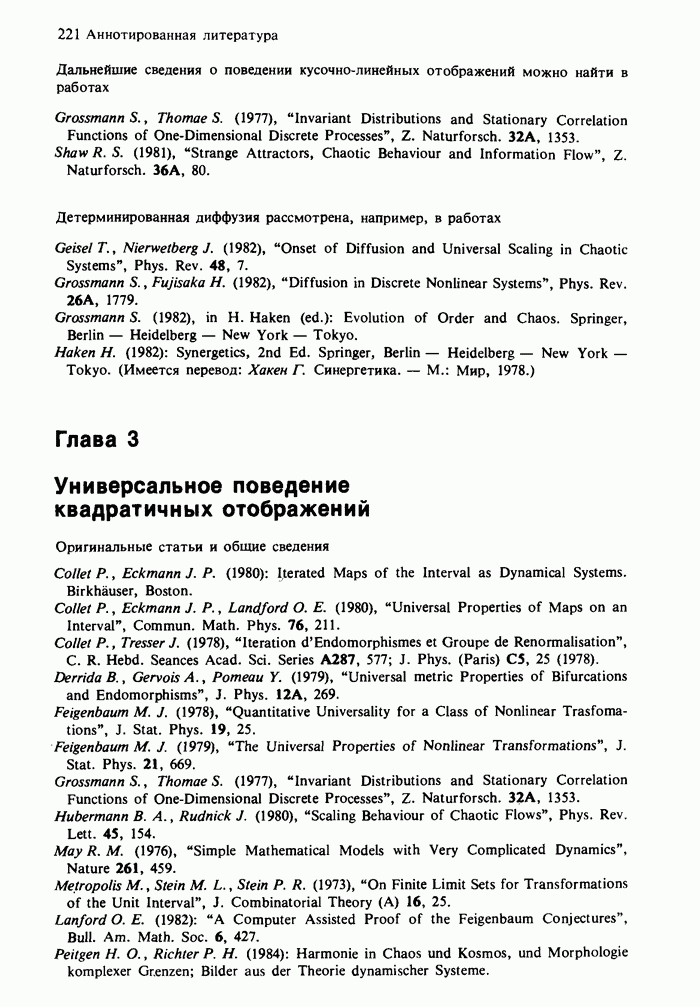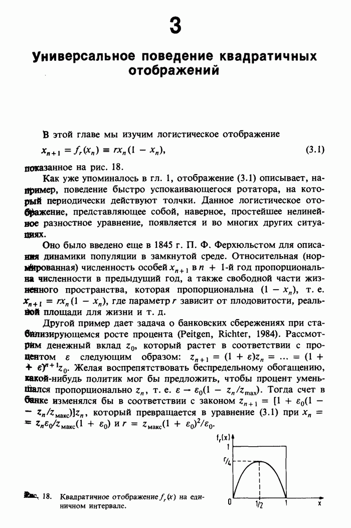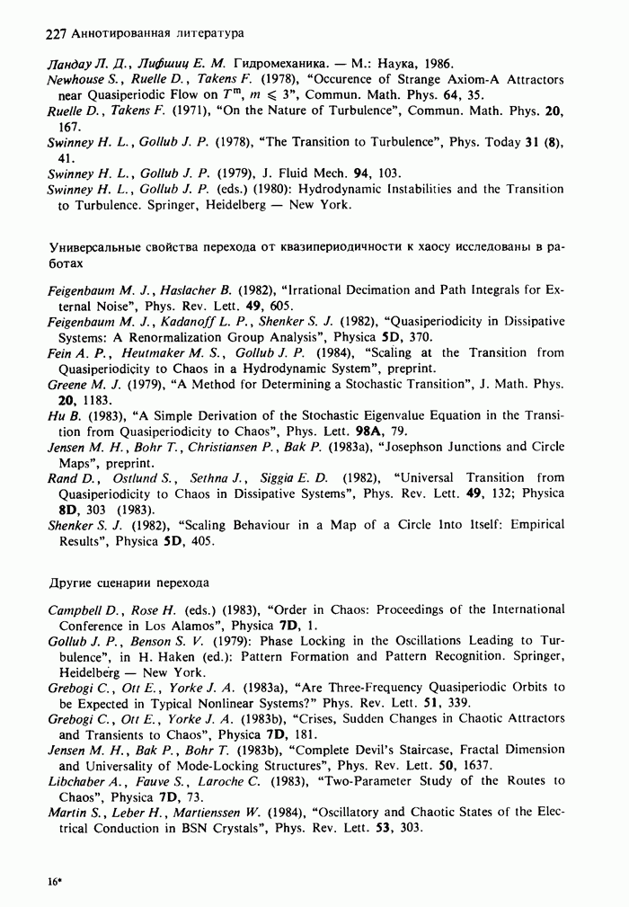 Предисловие редакторов переводаКнига Гейнца Шустера, профессора Института теоретической физики при Франкфуртском университете, чрезвычайно привлекательна для ознакомления с таким необычным для широкой аудитории предметом, как динамический хаос (или случайное поведение полностью детерминированных систем). Книга невелика по объему, достаточно информативна, изобретательно иллюстрирована и, наверное, займет достойное место среди уже имеющейся литературы по хаосу. Мы уверены, что сильные стороны книги читатель оценит сам. Здесь же нам представляется уместным хотя бы обозначить те ключевые идеи, которые позволили существенно продвинуться в понимании и описании сложного поведения детермированных сред по сравнению с тем состоянием, что отражено в книге. При этом будем иметь в виду, что Шустер обсуждает лишь «маломерный» динамический хаос — самый простой из того, что встречается в природе и технике и поддается описанию с помощью детерминированных моделей. Одной из наиболее ярких и важных проблем, непосредственно связанных с «многомерным» хаосом, является, конечно, турбулентность — нерегулярное поведение нелинейных сред или полей. Заметим сразу, что обсуждаемую в книге хаотическую динамику небольшого числа заданных в пространстве мод (или структур) можно отождествить с реальной динамикой нелинейного поля (скорости или давления в гидродинамическом течении, электромагнитного поля в плазме и т. п.) лишь в узком интервале значений параметров. Более точно, при относительно малом превышении порога неустойчивости, или, как часто говорят, при малой надкритичности. С ростом надкритичности, например числа Рейнольдса, число степеней свободы среды (или поля), эффективно вовлекаемых в хаотическое движение, в общем случае увеличивается, корреляции между ними разрушаются и хаос становится все более сложным. Этому соответствует увеличение размерности странного аттрактора, вложенного в фазовое пространство течения. Один из наиболее принципиальных вопросов здесь — связь числа вовлекаемых в хаотическую динамику поля коллективных возбуждений (мод) и размерности аттрактора с картиной пространственного распределения поля. Как показали недавние физические и компьютерные эксперименты [1—4], по мере увеличения размерности аттрактора пространственная картина поля (или гидродинамического течения) все более усложняется. Например, если говорить о термоконвекции в горизонтальном слое, то по мере увеличения числа Рэлея регулярная решетка конвективных структур — ячеек Бенара — «плавится», появляются дефекты, несоизмеримая модуляция и, наконец, пространственно-временной хаос, который и есть собственно турбулентность. Если маломерный хаос характеризуется сложным временным, но весьма простым пространственным поведением, отвечающим регулярной картине поля, то в турбулентном режиме сложным будет и временное, и пространственное поведение. Очень важен совсем недавно осознанный факт, что, подобно тому как случайность во времени может быть не связана с действием внешних шумов, случайное распределение поля в пространстве может быть следствием лишь детерминированных законов, управляющих изменением переменных вдоль координат, и весьма слабо зависеть, например, от случайных неоднородностей. Сейчас уже в некоторой степени ясны и пути (сц