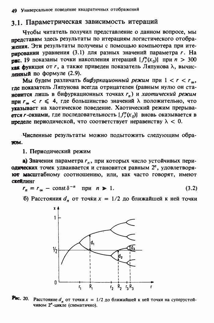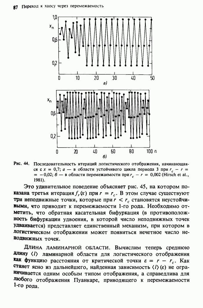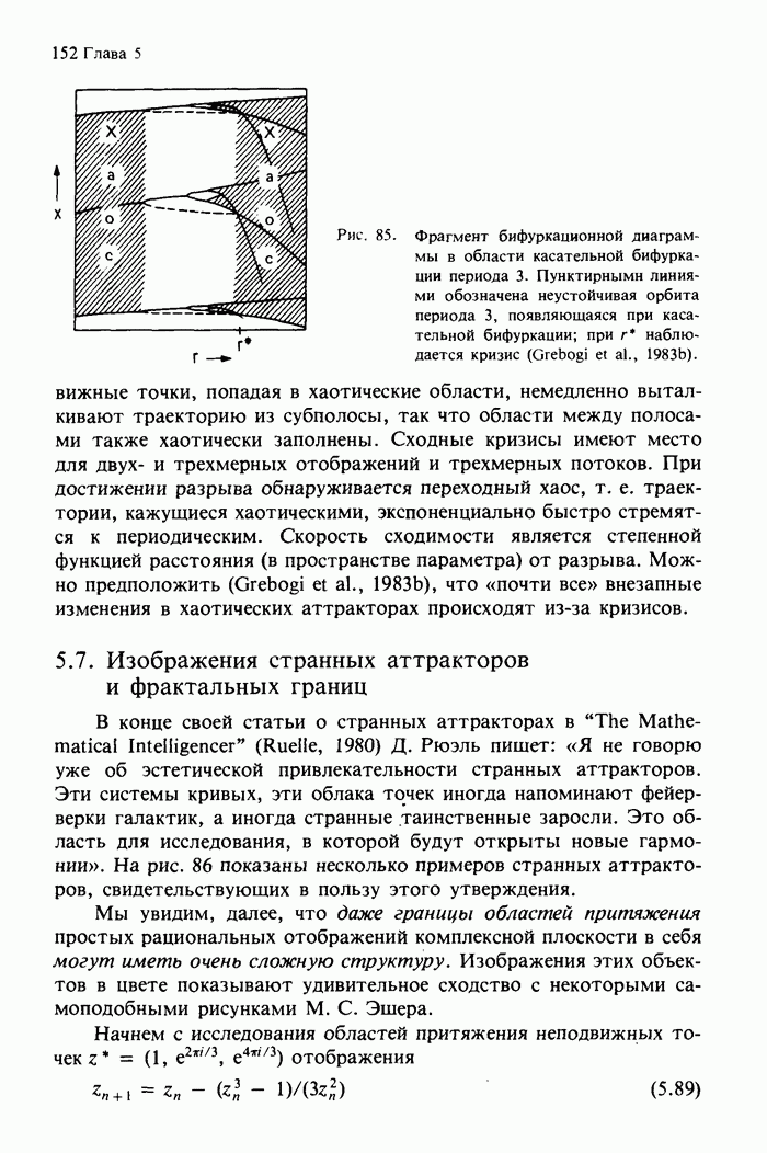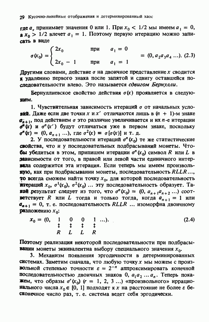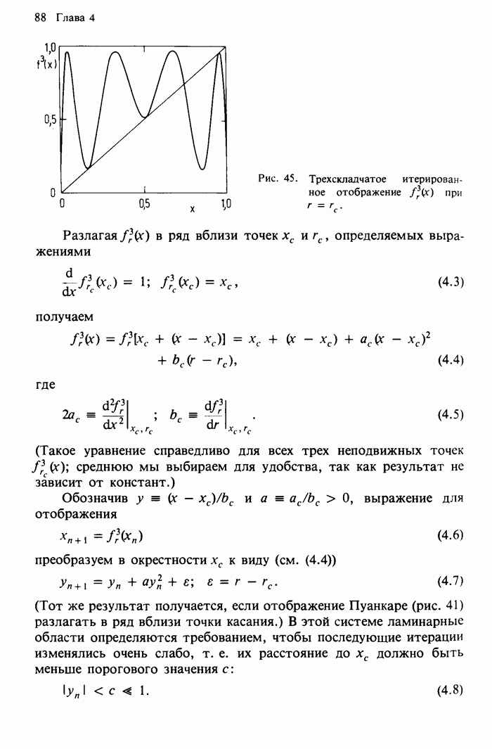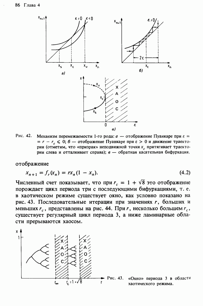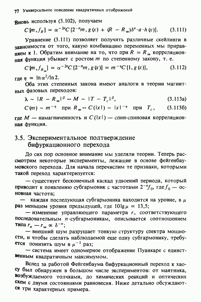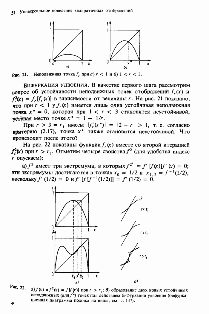 Предисловие редакторов переводаКнига Гейнца Шустера, профессора Института теоретической физики при Франкфуртском университете, чрезвычайно привлекательна для ознакомления с таким необычным для широкой аудитории предметом, как динамический хаос (или случайное поведение полностью детерминированных систем). Книга невелика по объему, достаточно информативна, изобретательно иллюстрирована и, наверное, займет достойное место среди уже имеющейся литературы по хаосу. Мы уверены, что сильные стороны книги читатель оценит сам. Здесь же нам представляется уместным хотя бы обозначить те ключевые идеи, которые позволили существенно продвинуться в понимании и описании сложного поведения детермированных сред по сравнению с тем состоянием, что отражено в книге. При этом будем иметь в виду, что Шустер обсуждает лишь «маломерный» динамический хаос — самый простой из того, что встречается в природе и технике и поддается описанию с помощью детерминированных моделей. Одной из наиболее ярких и важных проблем, непосредственно связанных с «многомерным» хаосом, является, конечно, турбулентность — нерегулярное поведение нелинейных сред или полей. Заметим сразу, что обсуждаемую в книге хаотическую динамику небольшого числа заданных в пространстве мод (или структур) можно отождествить с реальной динамикой нелинейного поля (скорости или давления в гидродинамическом течении, электромагнитного поля в плазме и т. п.) лишь в узком интервале значений параметров. Более точно, при относительно малом превышении порога неустойчивости, или, как часто говорят, при малой надкритичности. С ростом надкритичности, например числа Рейнольдса, число степеней свободы среды (или поля), эффективно вовлекаемых в хаотическое движение, в общем случае увеличивается, корреляции между ними разрушаются и хаос становится все более сложным. Этому соответствует увеличение размерности странного аттрактора, вложенного в фазовое пространство течения. Один из наиболее принципиальных вопросов здесь — связь числа вовлекаемых в хаотическую динамику поля коллективных возбуждений (мод) и размерности аттрактора с картиной пространственного распределения поля. Как показали недавние физические и компьютерные эксперименты [1—4], по мере увеличения размерности аттрактора пространственная картина поля (или гидродинамического течения) все более усложняется. Например, если говорить о термоконвекции в горизонтальном слое, то по мере увеличения числа Рэлея регулярная решетка конвективных структур — ячеек Бенара — «плавится», появляются дефекты, несоизмеримая модуляция и, наконец, пространственно-временной хаос, который и есть собственно турбулентность. Если маломерный хаос характеризуется сложным временным, но весьма простым пространственным поведением, отвечающим регулярной картине поля, то в турбулентном режиме сложным будет и временное, и пространственное поведение. Очень важен совсем недавно осознанный факт, что, подобно тому как случайность во времени может быть не связана с действием внешних шумов, случайное распределение поля в пространстве может быть следствием лишь детерминированных законов, управляющих изменением переменных вдоль координат, и весьма слабо зависеть, например, от случайных неоднородностей. Сейчас уже в некоторой степени ясны и пути (сц