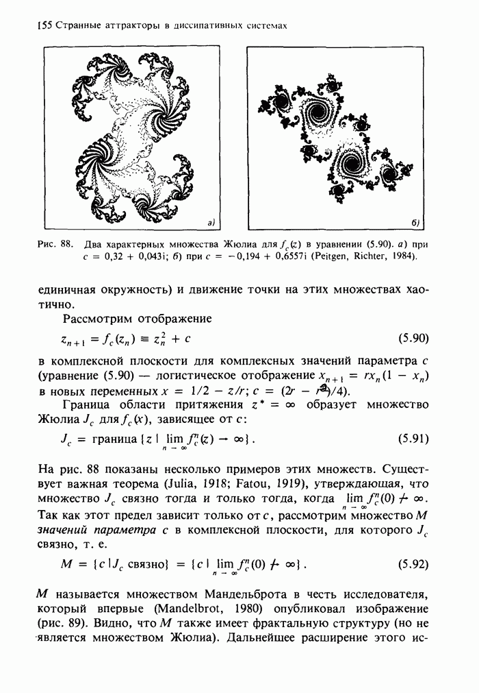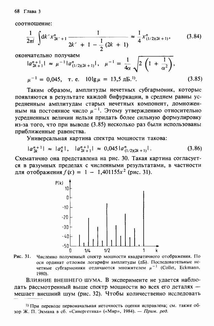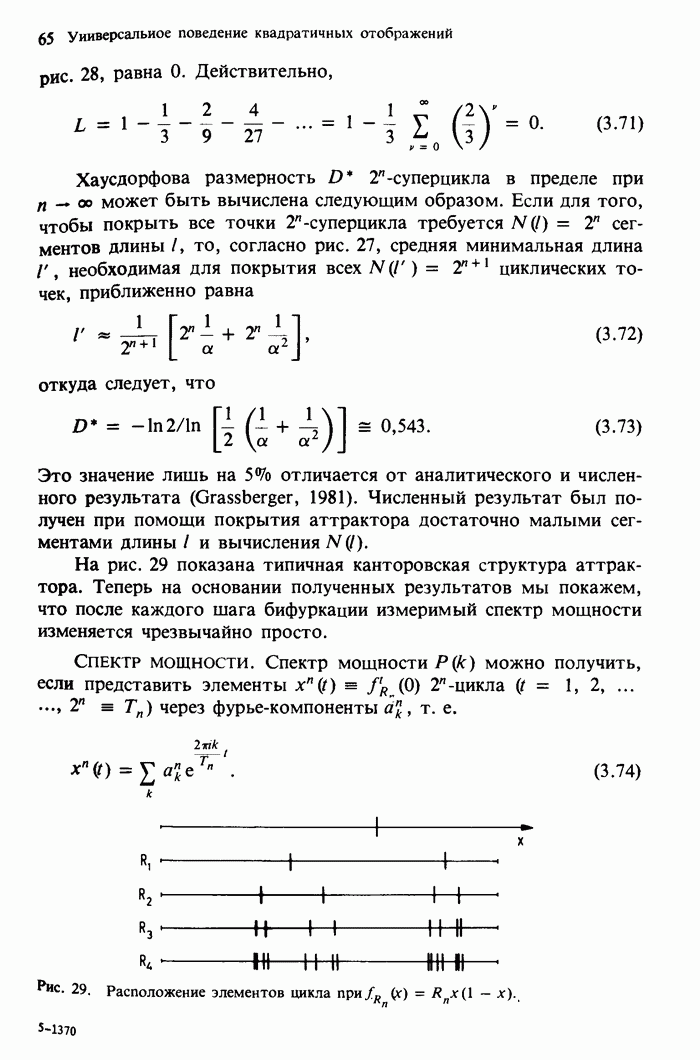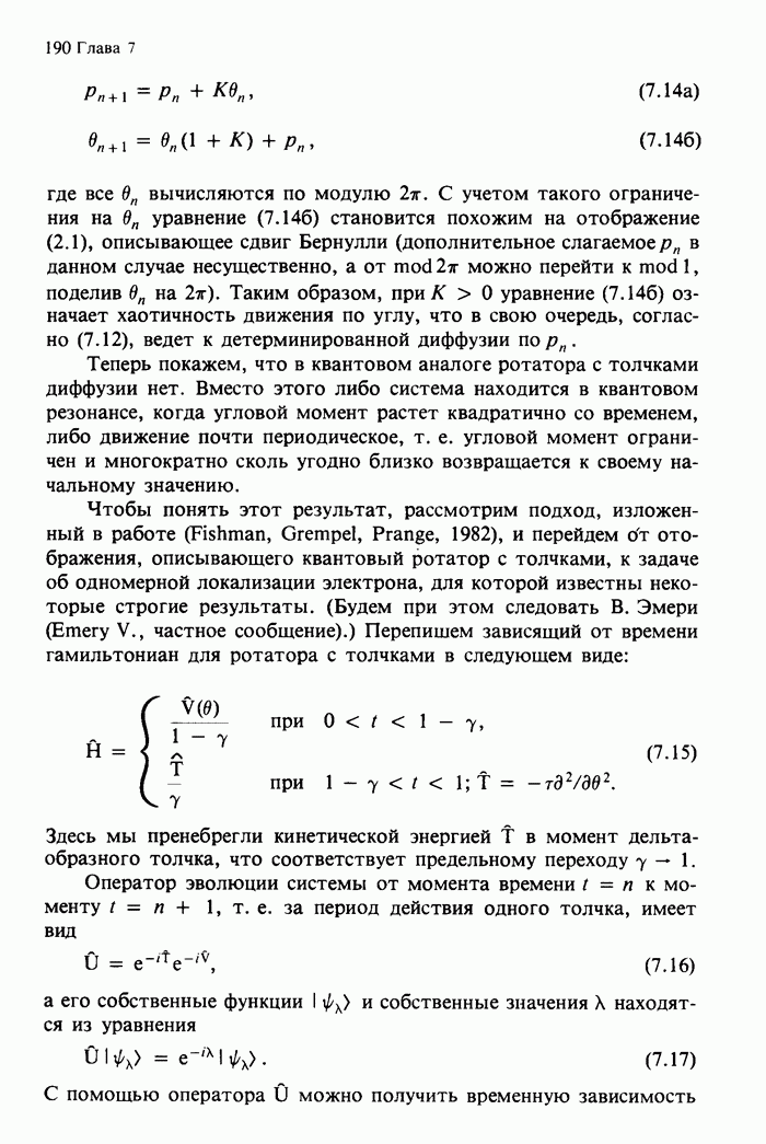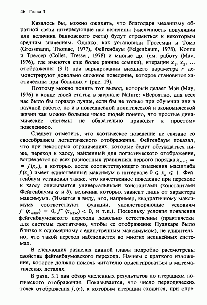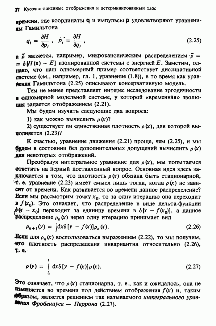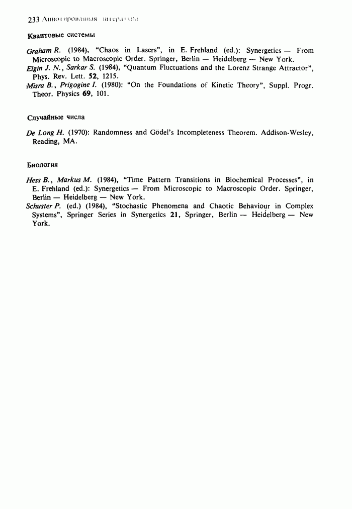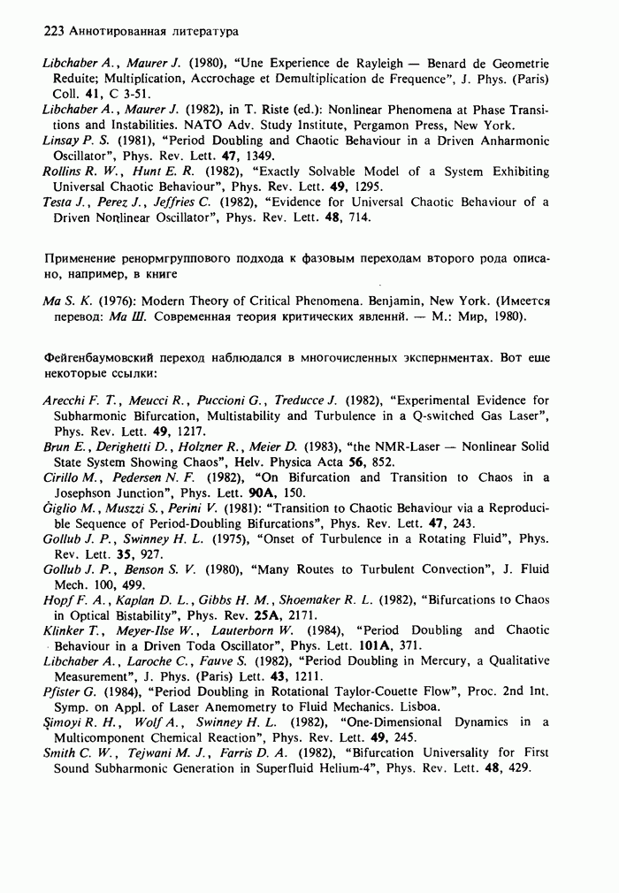 Предисловие редакторов переводаКнига Гейнца Шустера, профессора Института теоретической физики при Франкфуртском университете, чрезвычайно привлекательна для ознакомления с таким необычным для широкой аудитории предметом, как динамический хаос (или случайное поведение полностью детерминированных систем). Книга невелика по объему, достаточно информативна, изобретательно иллюстрирована и, наверное, займет достойное место среди уже имеющейся литературы по хаосу. Мы уверены, что сильные стороны книги читатель оценит сам. Здесь же нам представляется уместным хотя бы обозначить те ключевые идеи, которые позволили существенно продвинуться в понимании и описании сложного поведения детермированных сред по сравнению с тем состоянием, что отражено в книге. При этом будем иметь в виду, что Шустер обсуждает лишь «маломерный» динамический хаос — самый простой из того, что встречается в природе и технике и поддается описанию с помощью детерминированных моделей. Одной из наиболее ярких и важных проблем, непосредственно связанных с «многомерным» хаосом, является, конечно, турбулентность — нерегулярное поведение нелинейных сред или полей. Заметим сразу, что обсуждаемую в книге хаотическую динамику небольшого числа заданных в пространстве мод (или структур) можно отождествить с реальной динамикой нелинейного поля (скорости или давления в гидродинамическом течении, электромагнитного поля в плазме и т. п.) лишь в узком интервале значений параметров. Более точно, при относительно малом превышении порога неустойчивости, или, как часто говорят, при малой надкритичности. С ростом надкритичности, например числа Рейнольдса, число степеней свободы среды (или поля), эффективно вовлекаемых в хаотическое движение, в общем случае увеличивается, корреляции между ними разрушаются и хаос становится все более сложным. Этому соответствует увеличение размерности странного аттрактора, вложенного в фазовое пространство течения. Один из наиболее принципиальных вопросов здесь — связь числа вовлекаемых в хаотическую динамику поля коллективных возбуждений (мод) и размерности аттрактора с картиной пространственного распределения поля. Как показали недавние физические и компьютерные эксперименты [1—4], по мере увеличения размерности аттрактора пространственная картина поля (или гидродинамического течения) все более усложняется. Например, если говорить о термоконвекции в горизонтальном слое, то по мере увеличения числа Рэлея регулярная решетка конвективных структур — ячеек Бенара — «плавится», появляются дефекты, несоизмеримая модуляция и, наконец, пространственно-временной хаос, который и есть собственно турбулентность. Если маломерный хаос характеризуется сложным временным, но весьма простым пространственным поведением, отвечающим регулярной картине поля, то в турбулентном режиме сложным будет и временное, и пространственное поведение. Очень важен совсем недавно осознанный факт, что, подобно тому как случайность во времени может быть не связана с действием внешних шумов, случайное распределение поля в пространстве может быть следствием лишь детерминированных законов, управляющих изменением переменных вдоль координат, и весьма слабо зависеть, например, от случайных неоднородностей. Сейчас уже в некоторой степени ясны и пути (сц