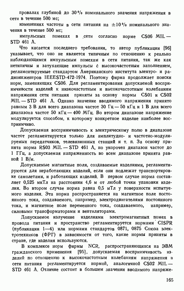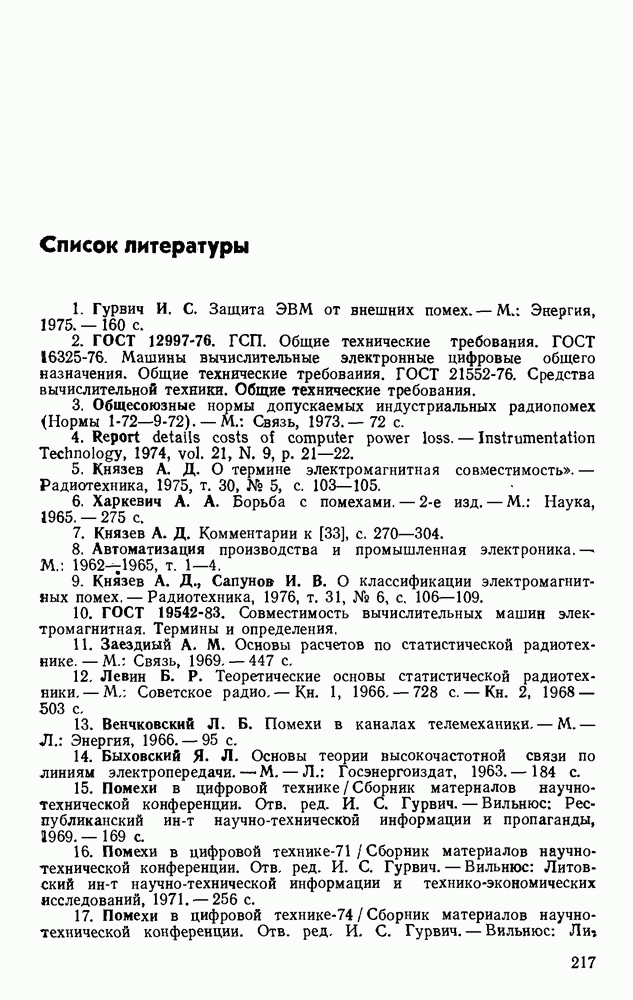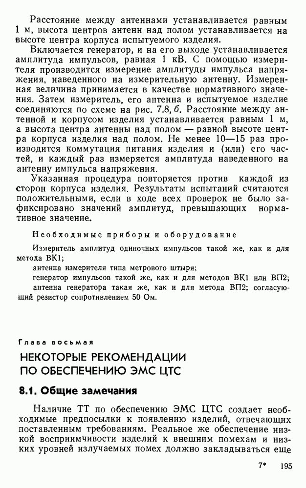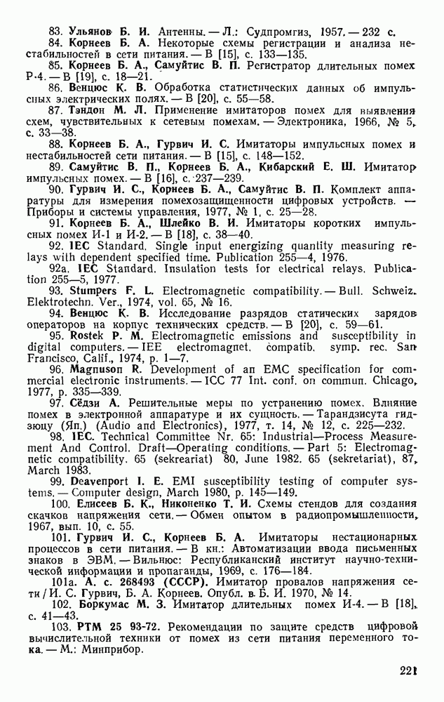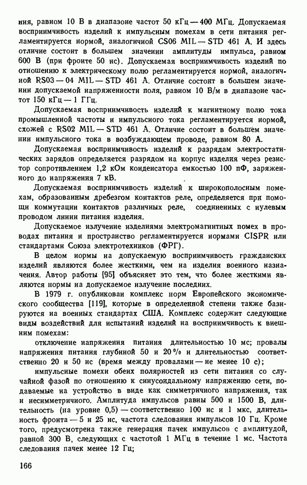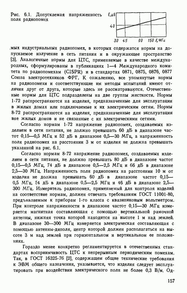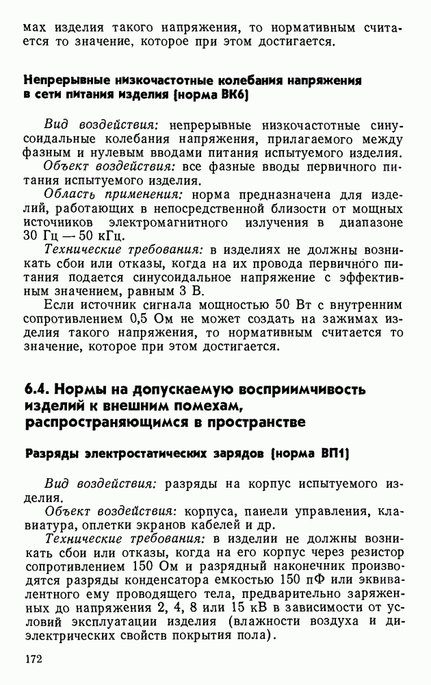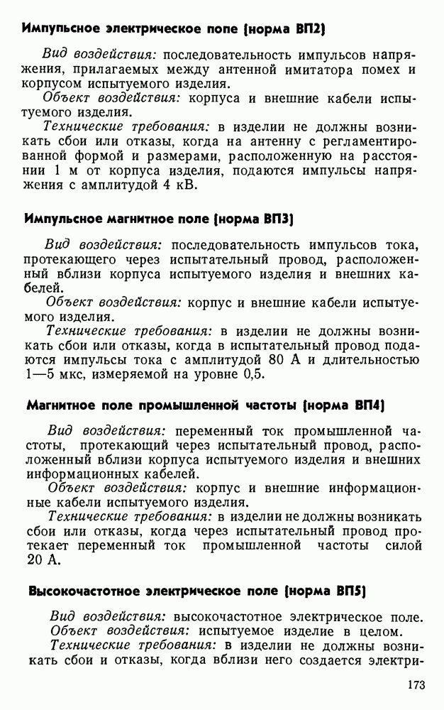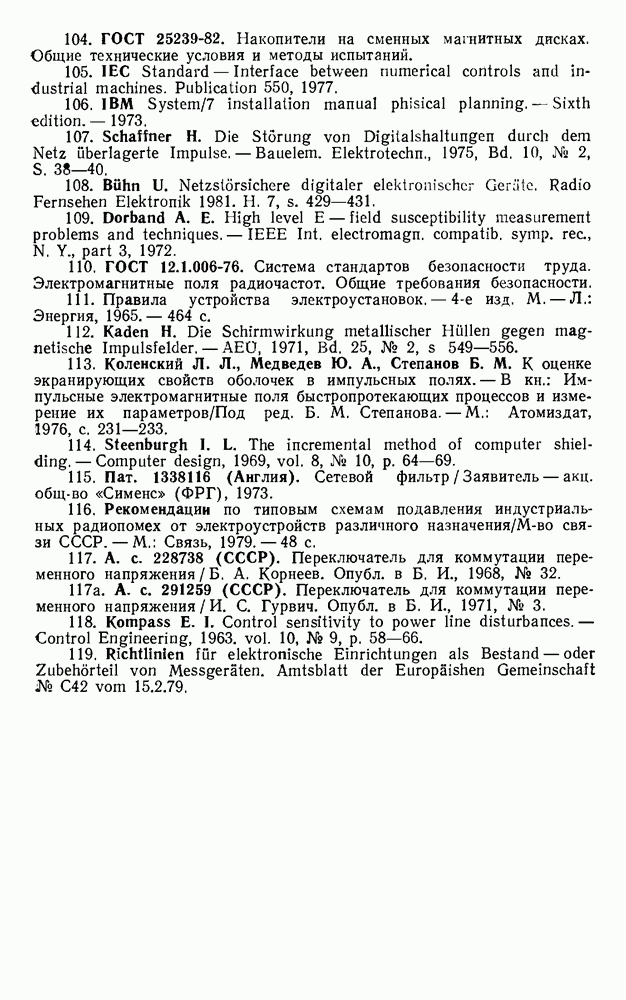 Соответствующие нормы и методы испытаний изложены в «Общесоюзных нормах допускаемых индустриальных радиопомех (Нормы 1-72-9-72)» [3] и соответствующих им ГОСТ. Для изделий, эксплуатируемых вне жилых домов и не связанных с их электрическими сетями, применяются нормы 8-72. Для изделий, эксплуатируемых в жилых домах или подключаемых к их электрическим сетям, применяются нормы 1-72. Для изделий, предназначенных на экспорт, могут применяться иные нормы, соответствующие публикациям CISPR и рекомендациям СЭВ (РС 1352-68, РС 1353-68, РС 1929-69).
